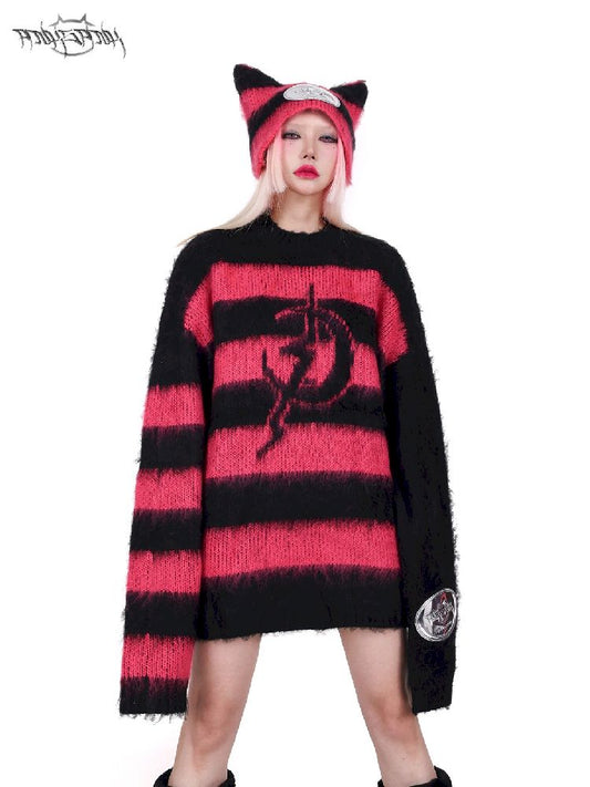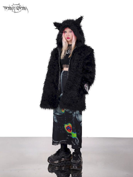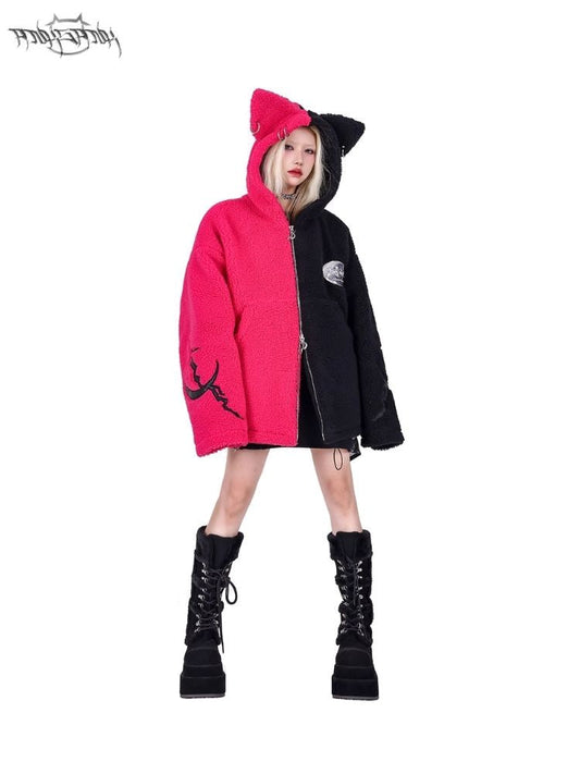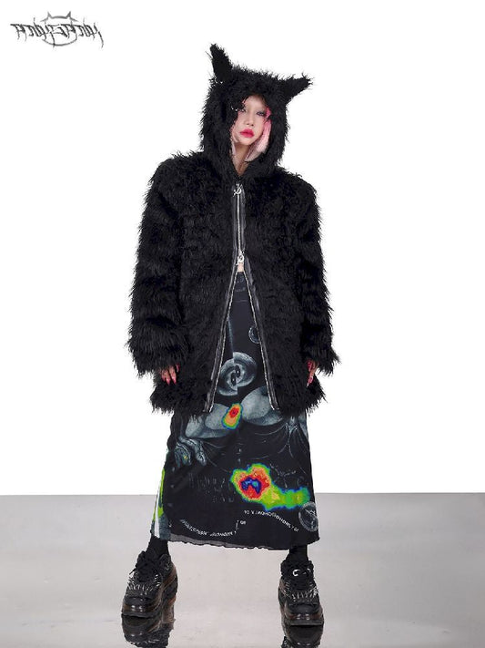 Hairless Cat Print Ears Hooded Rock Punk Sweatshirt