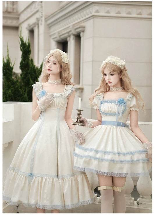 With PUJI - Morning Mist Estate - Twins Classic Lolita OP Dress, Edward Collar