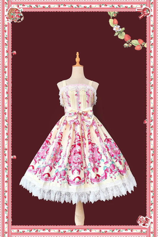 Infanta - Strawberry Culinary Maiden - Sweet Lolita JSK Dress With Strawberry Floral Print