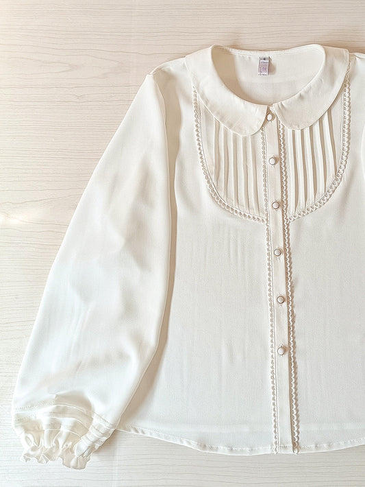 Youlan Lane - Elegant Lolita Chiffon White Long Sleeve Blouse