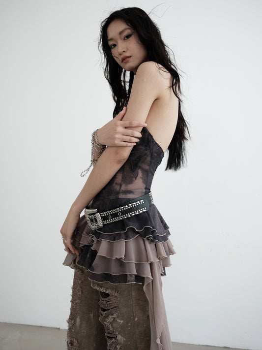 Semi-transparent Knitted Fake Two-piece Layered Hooded Dress