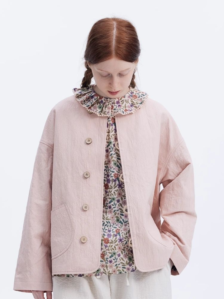 cotton floral lace collar flower print Coat