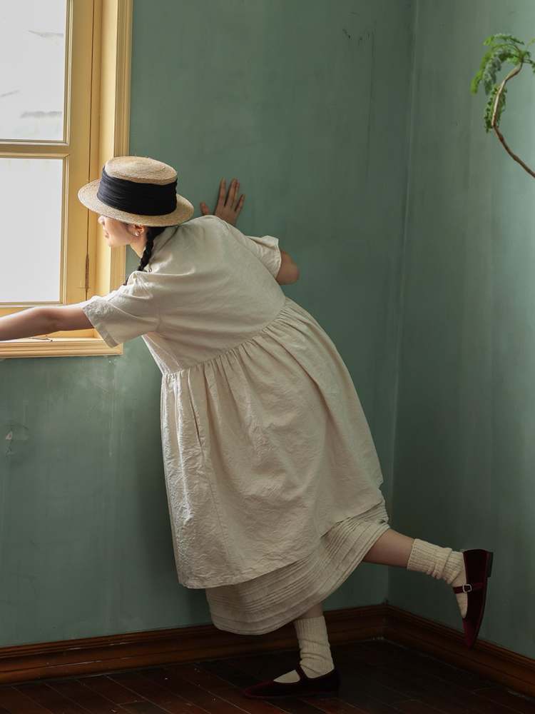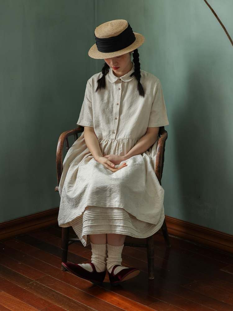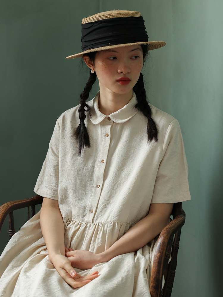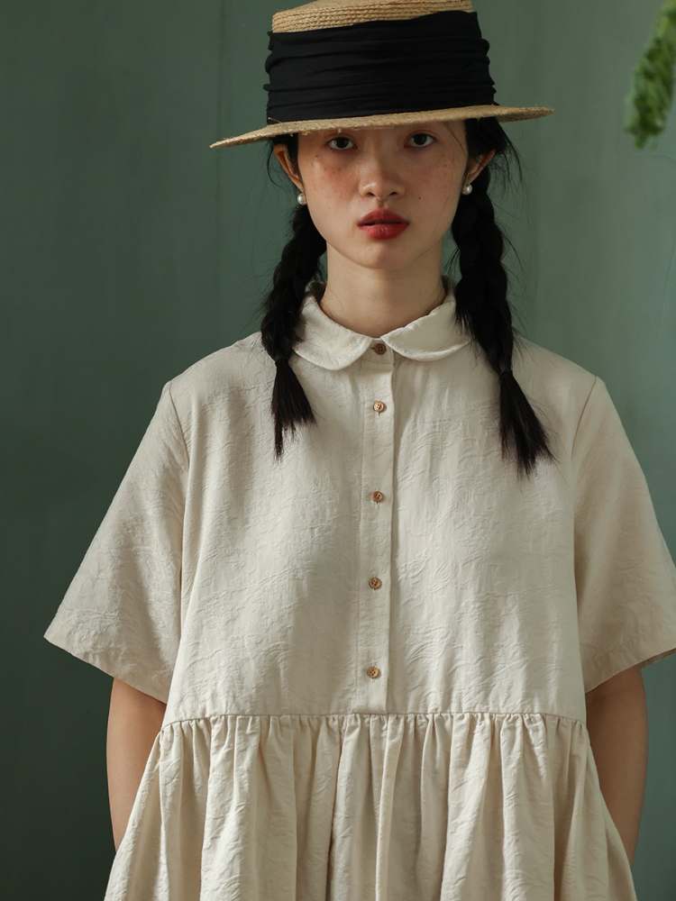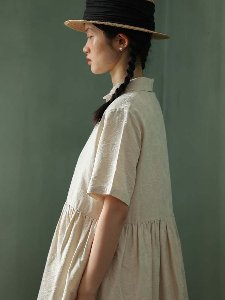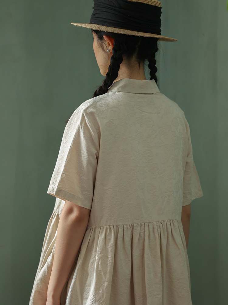 Jacquard Short Sleeve Shirt Dress