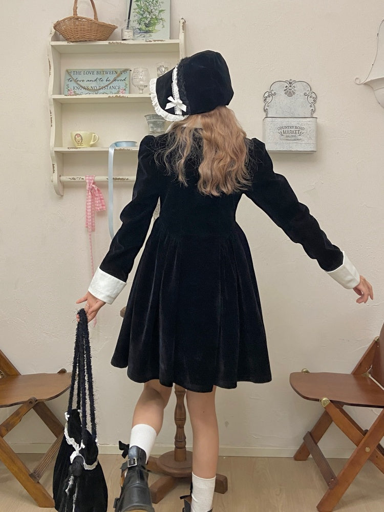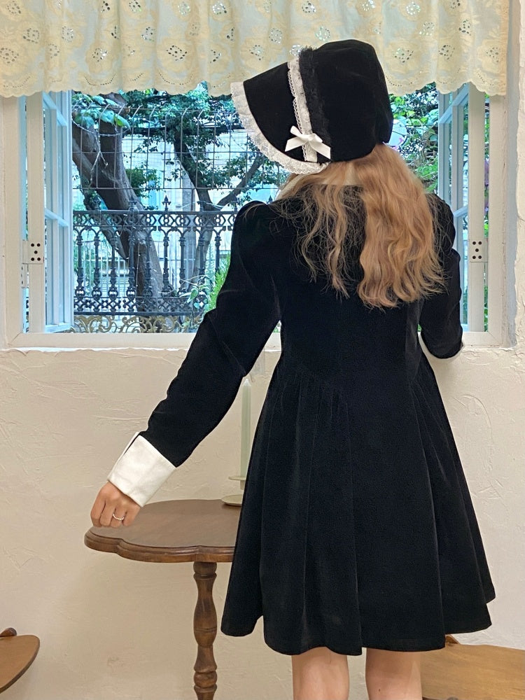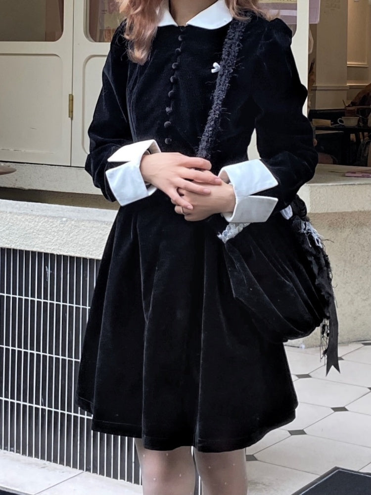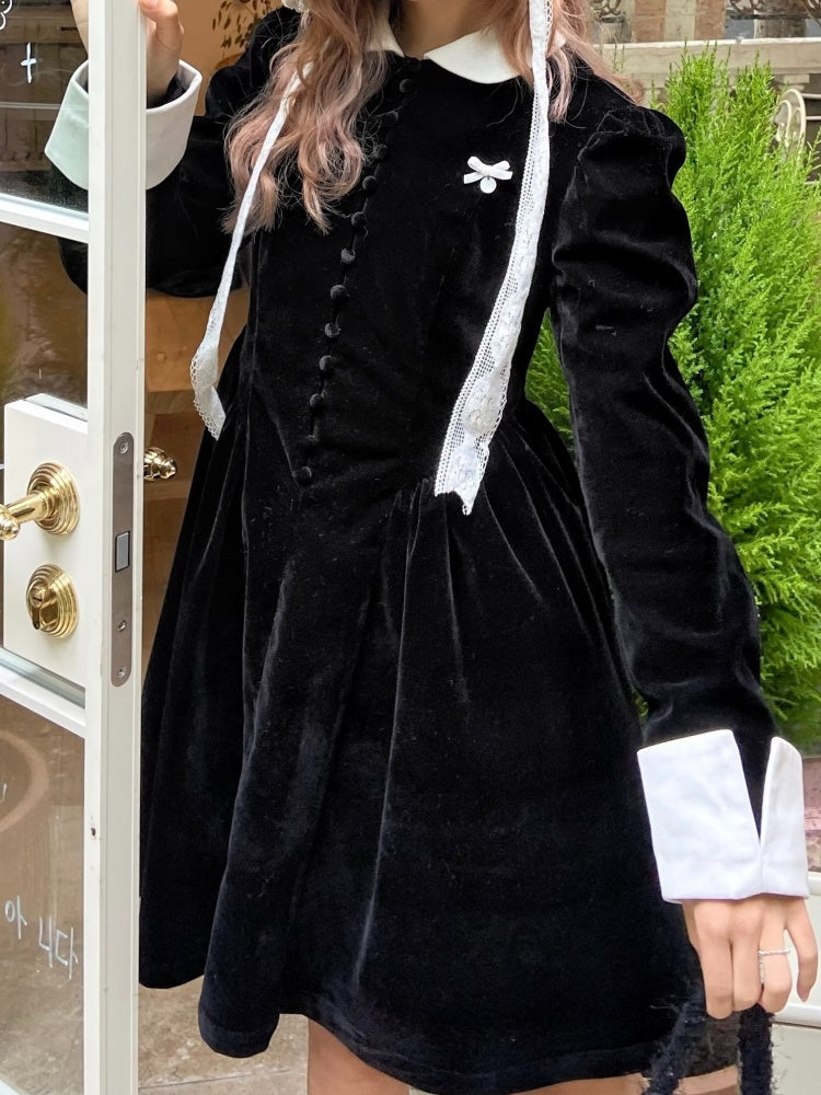 velvet puff sleeve slim little black dress