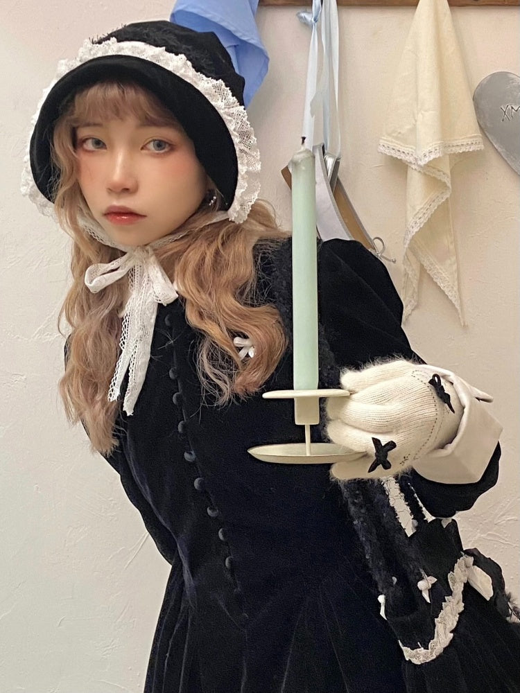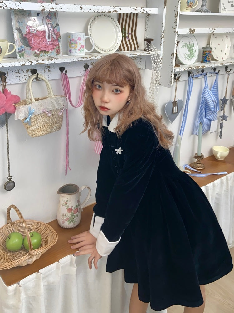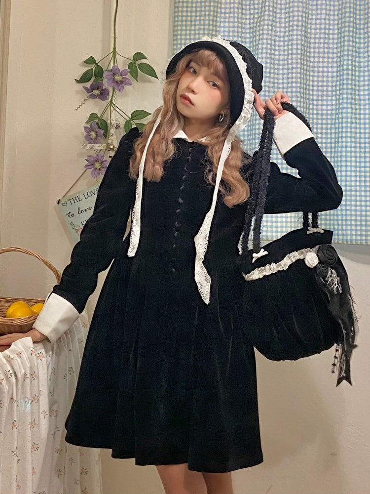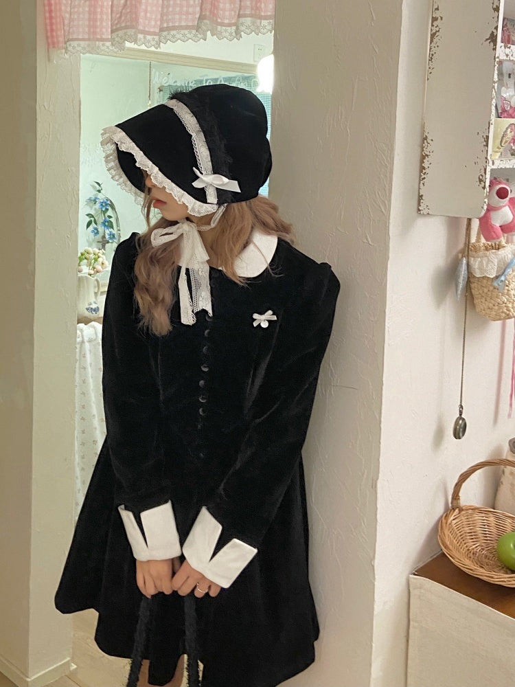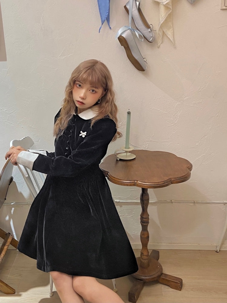 velvet puff sleeve slim little black dress