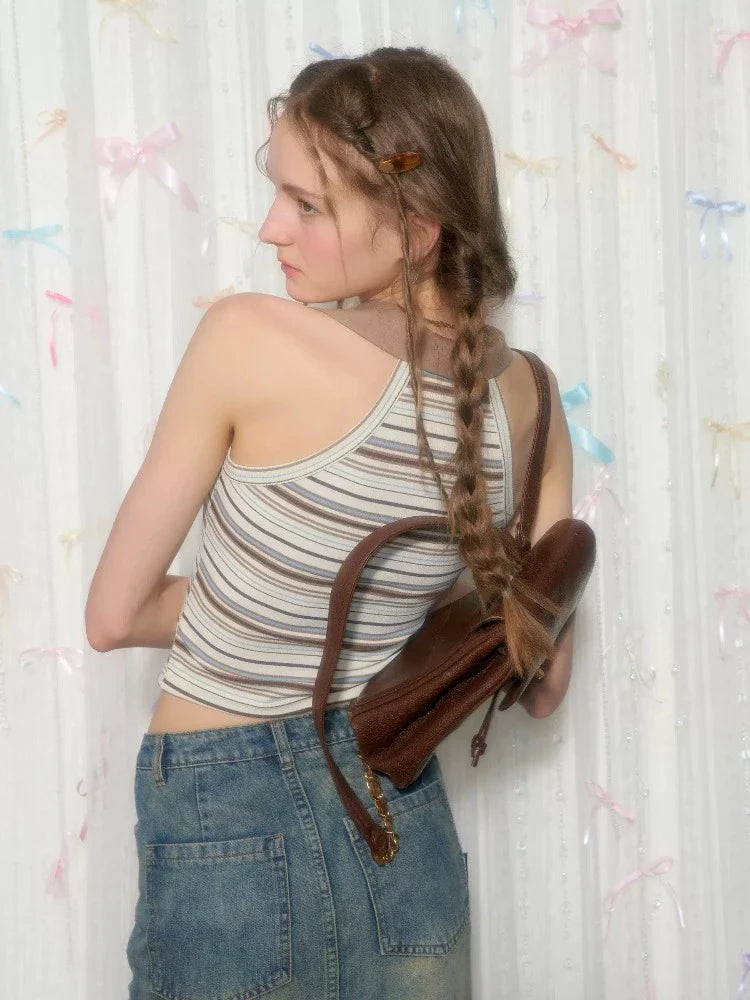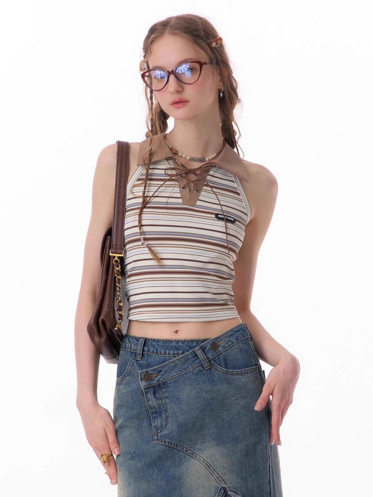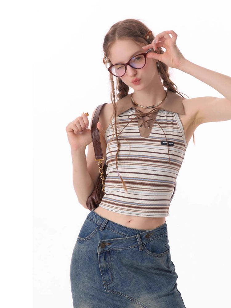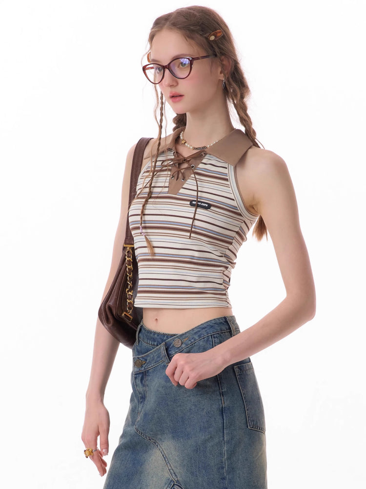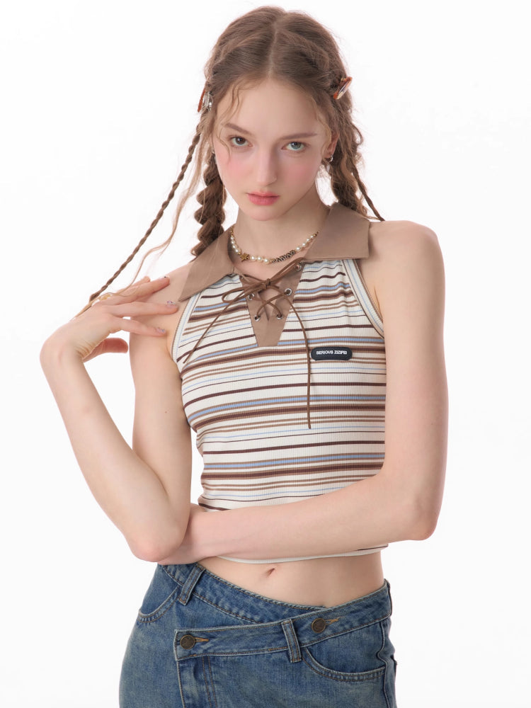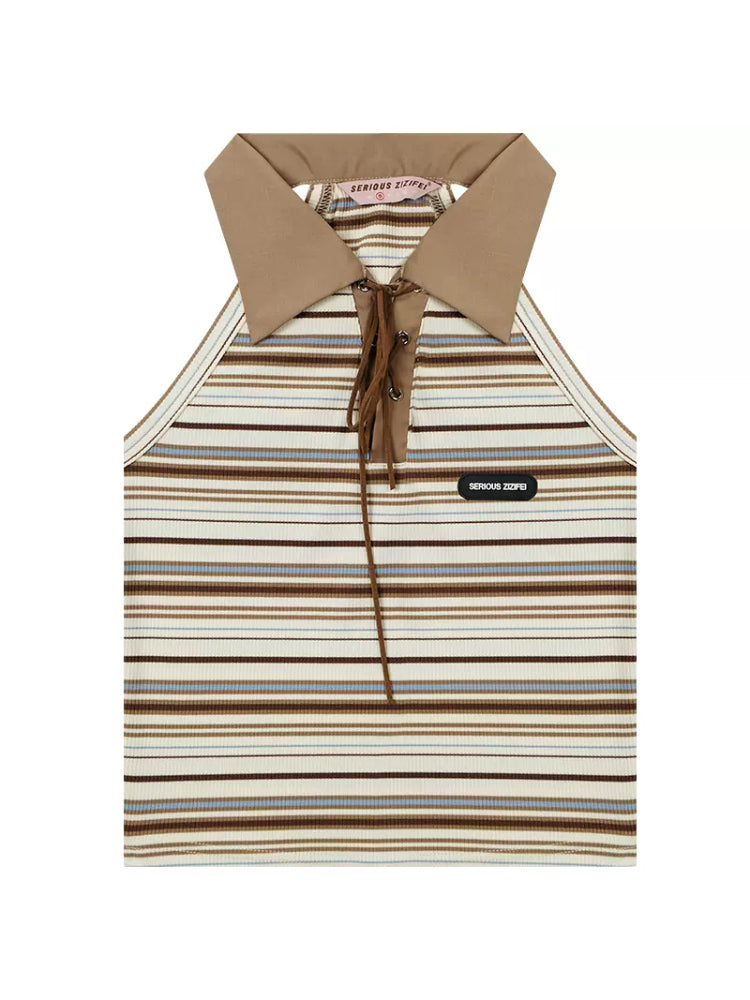 polo collar brown knitted vest