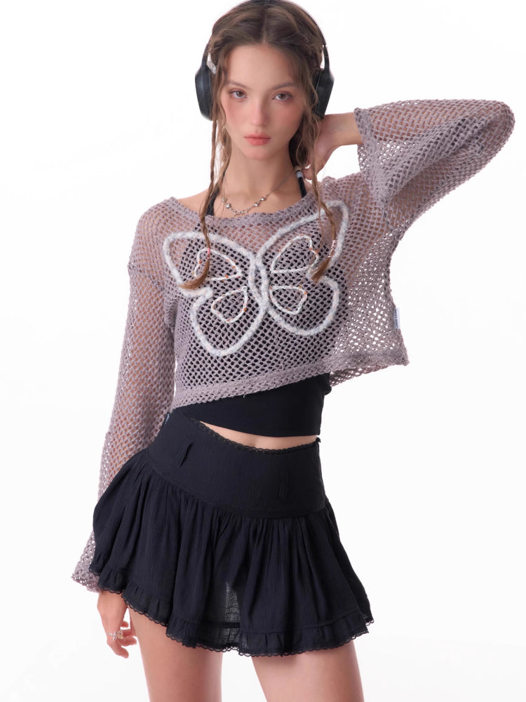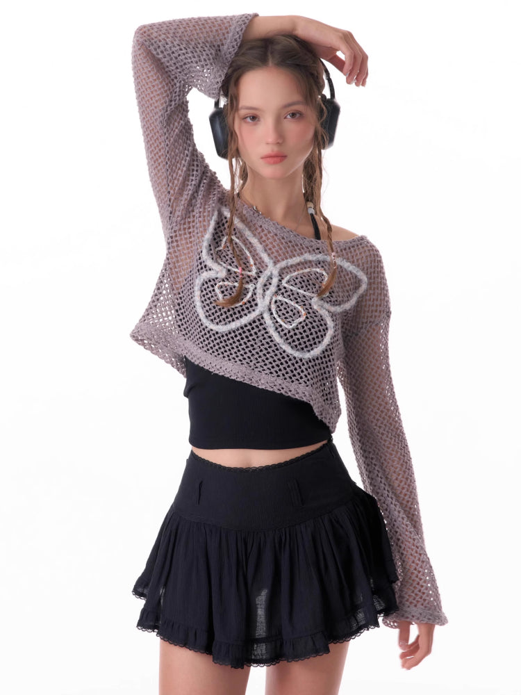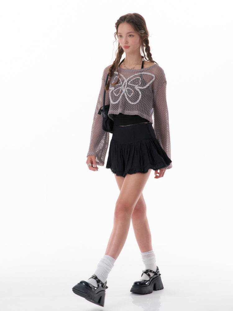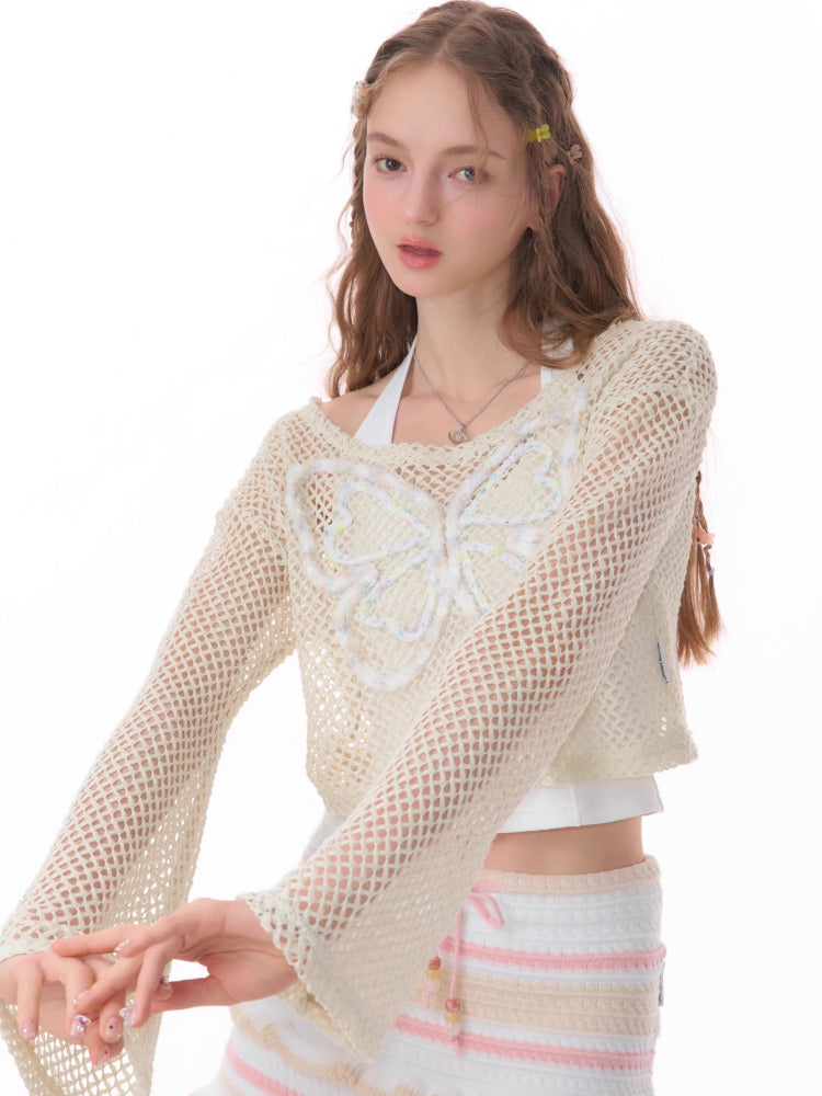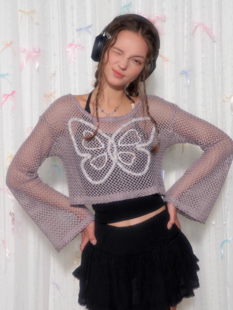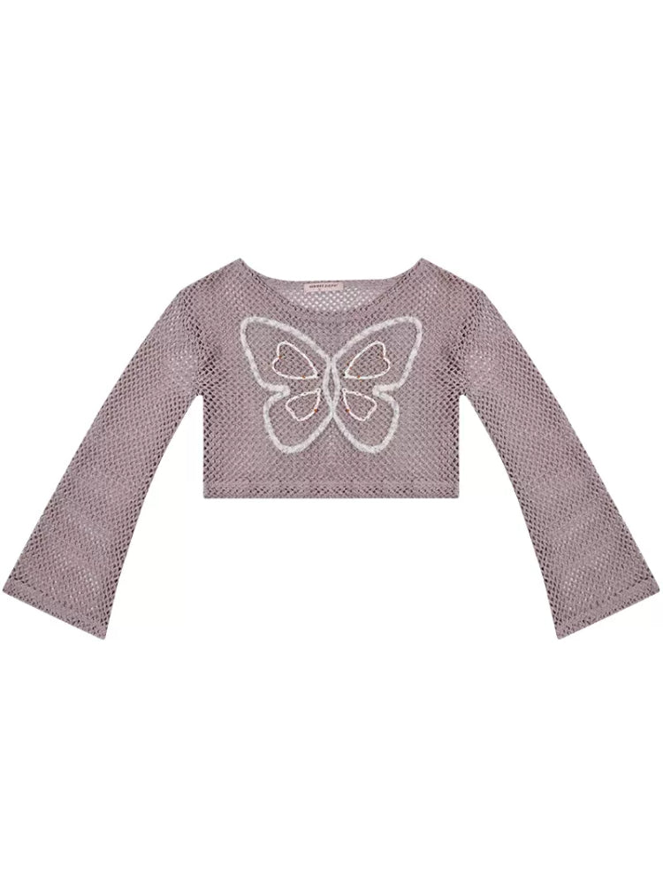 butterfly short long-sleeved top