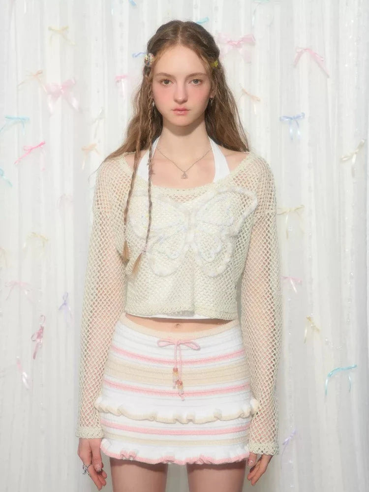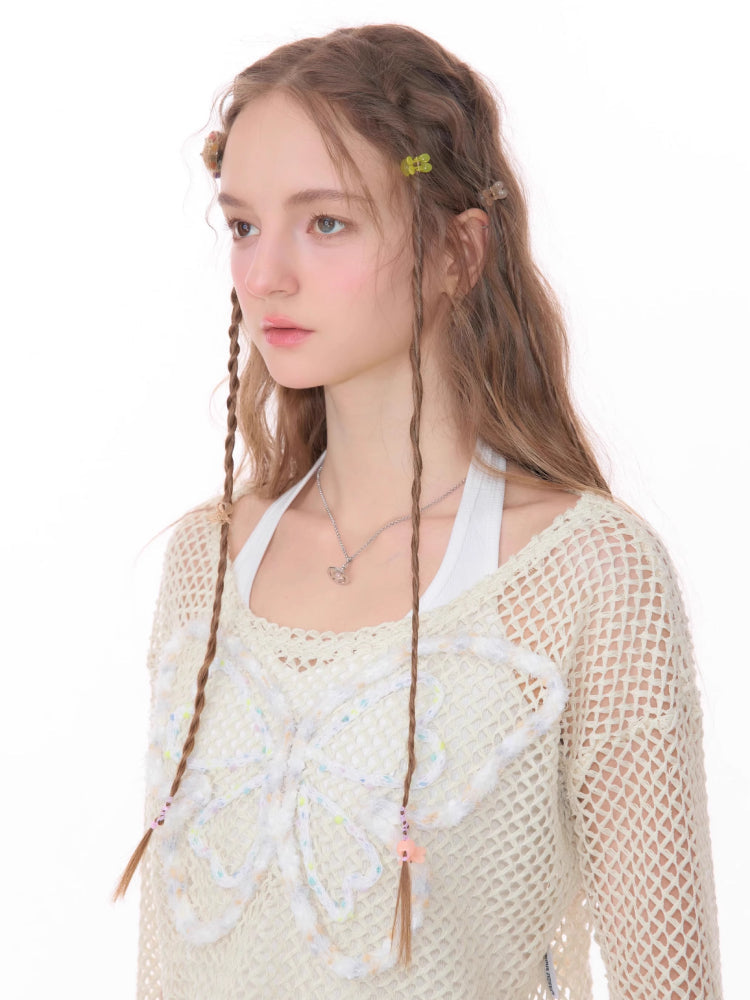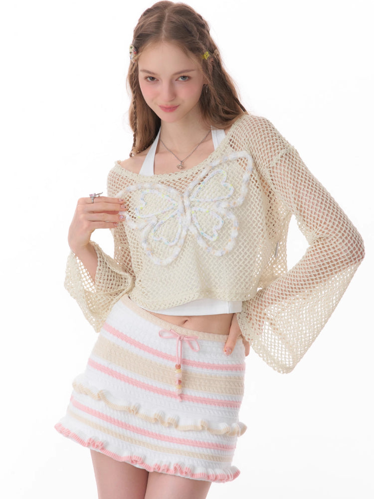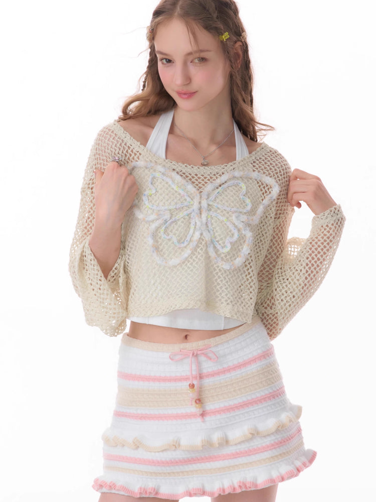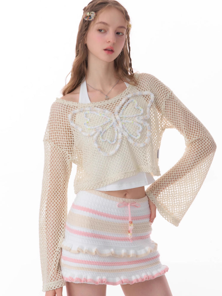 butterfly short long-sleeved top
