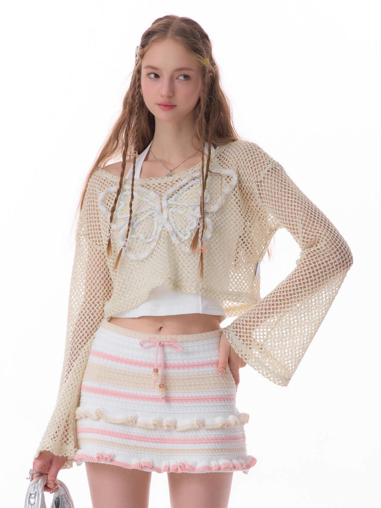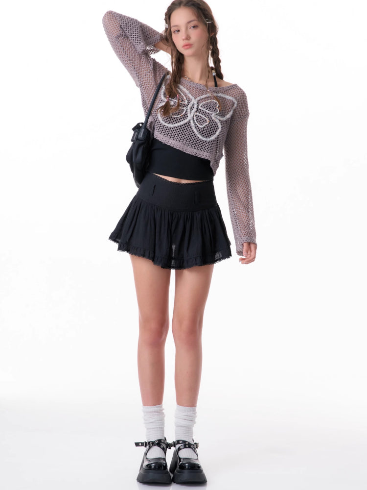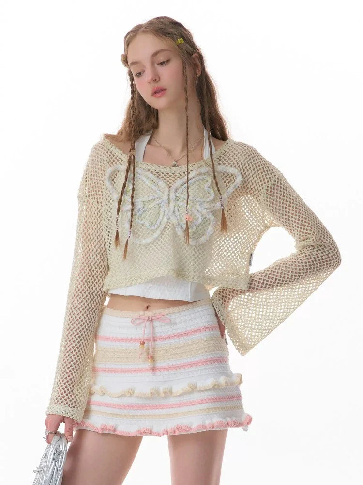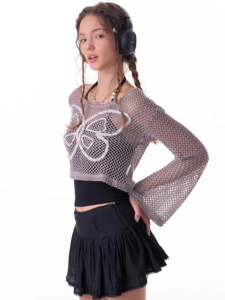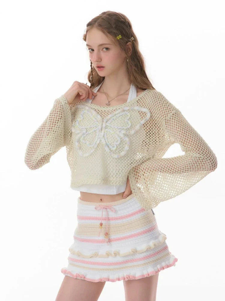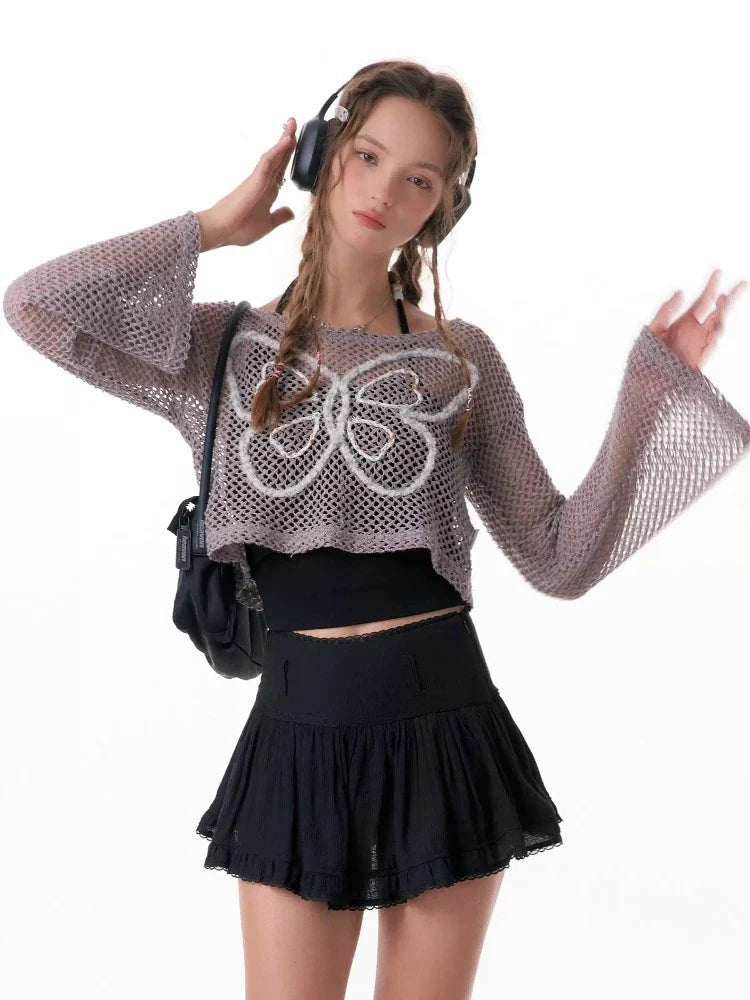 butterfly short long-sleeved top