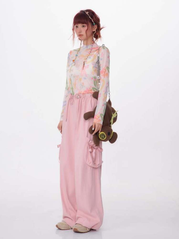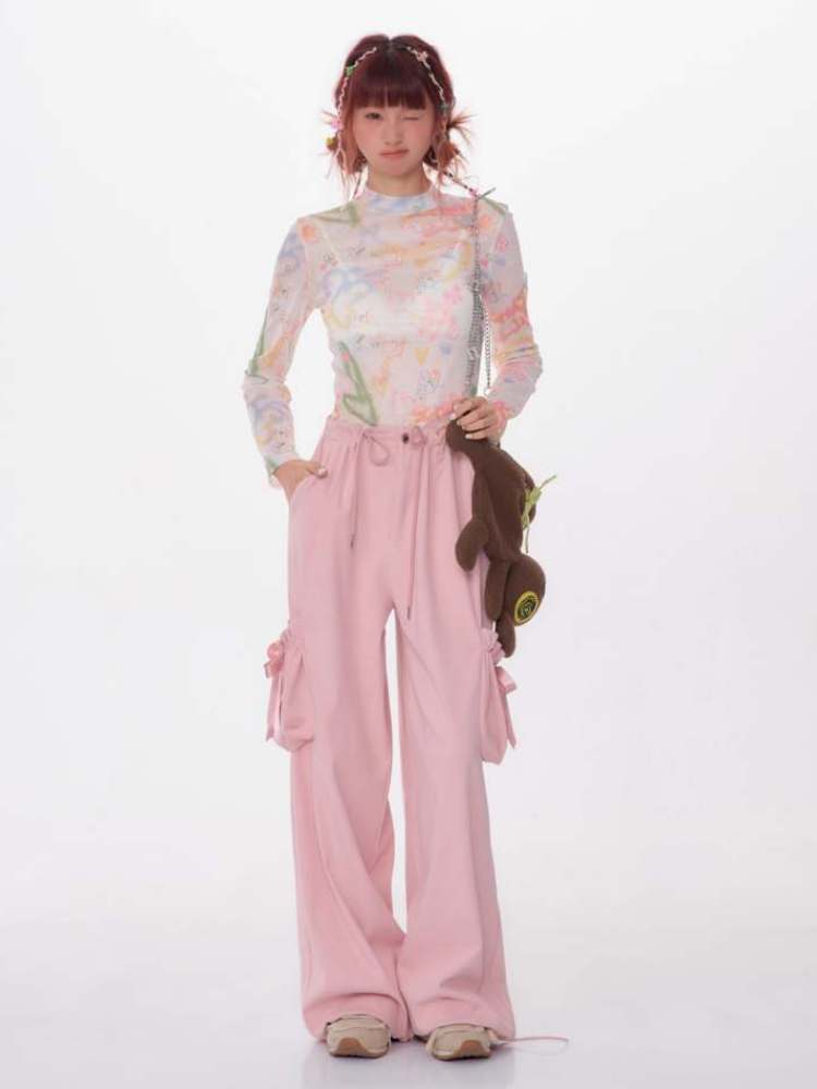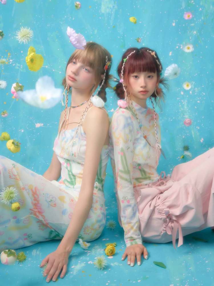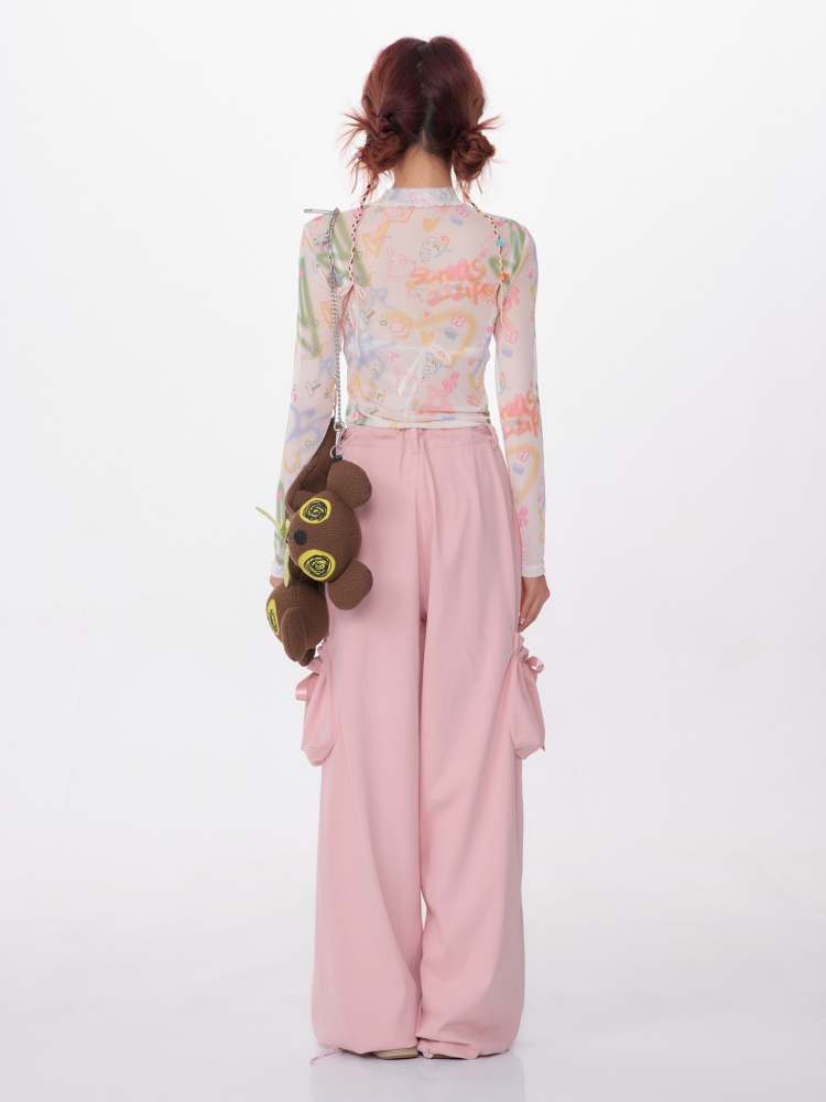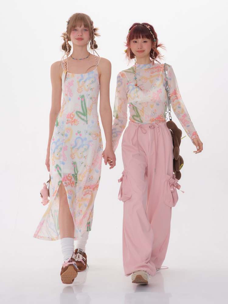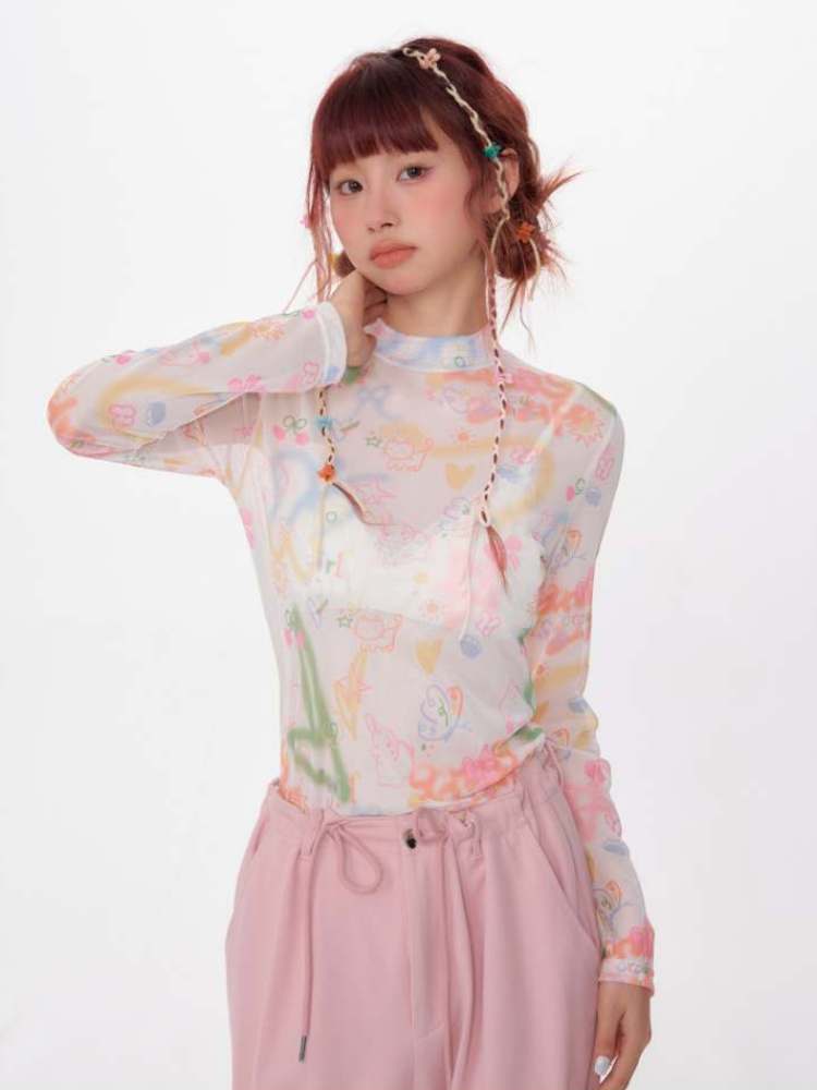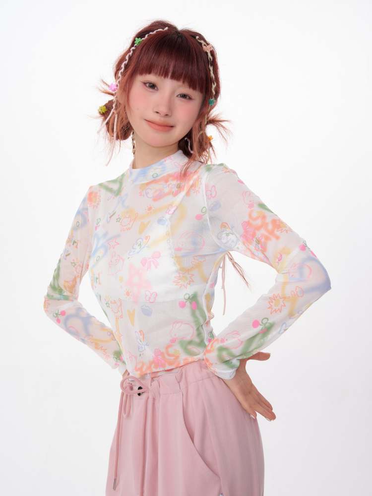 graffiti printed thin long-sleeved T-shirt