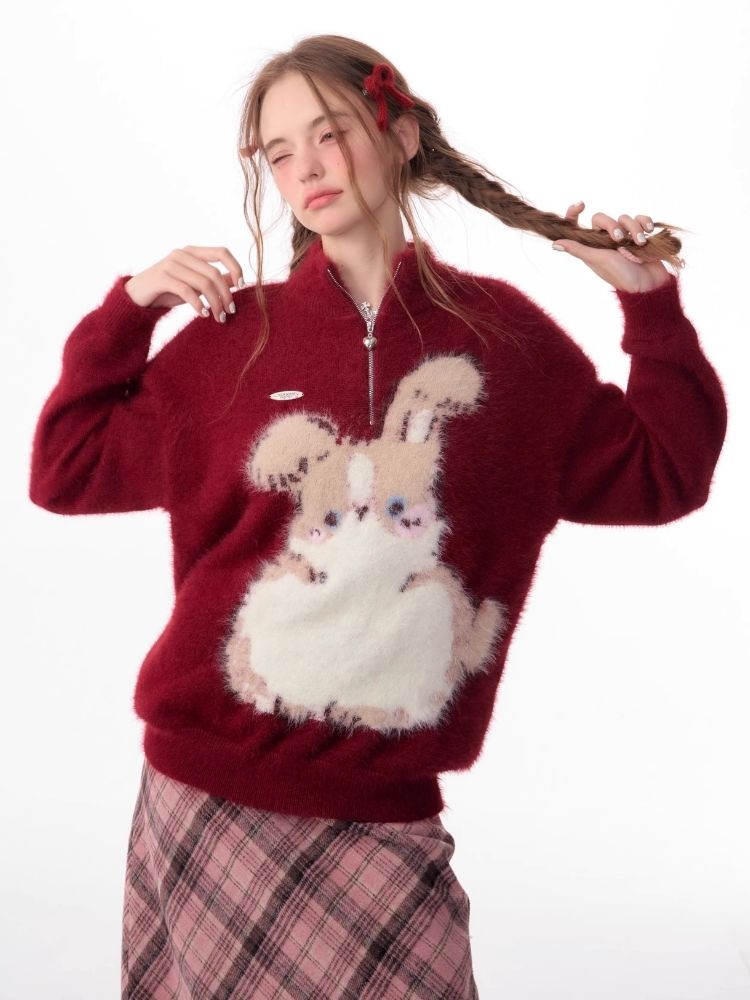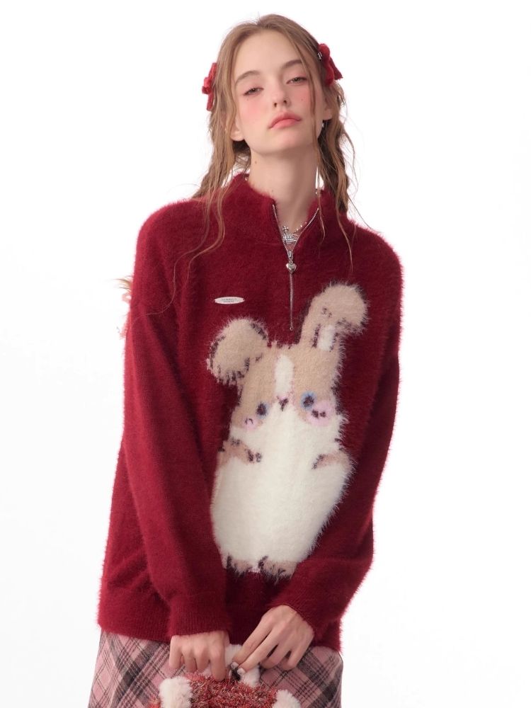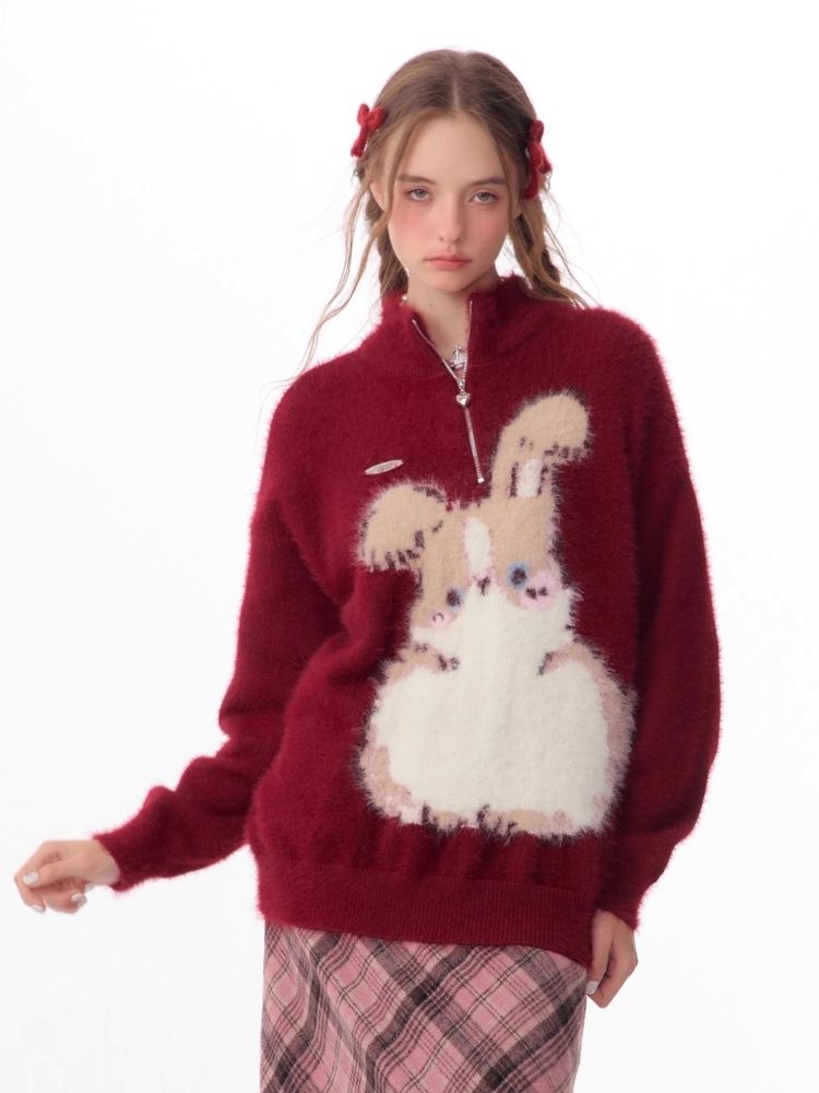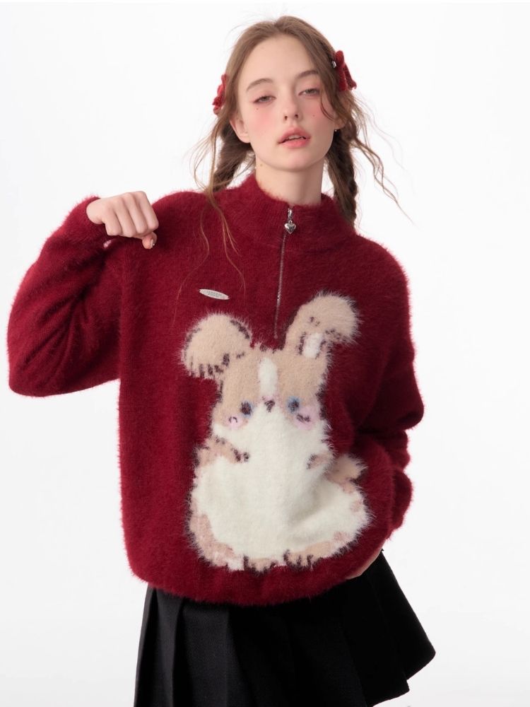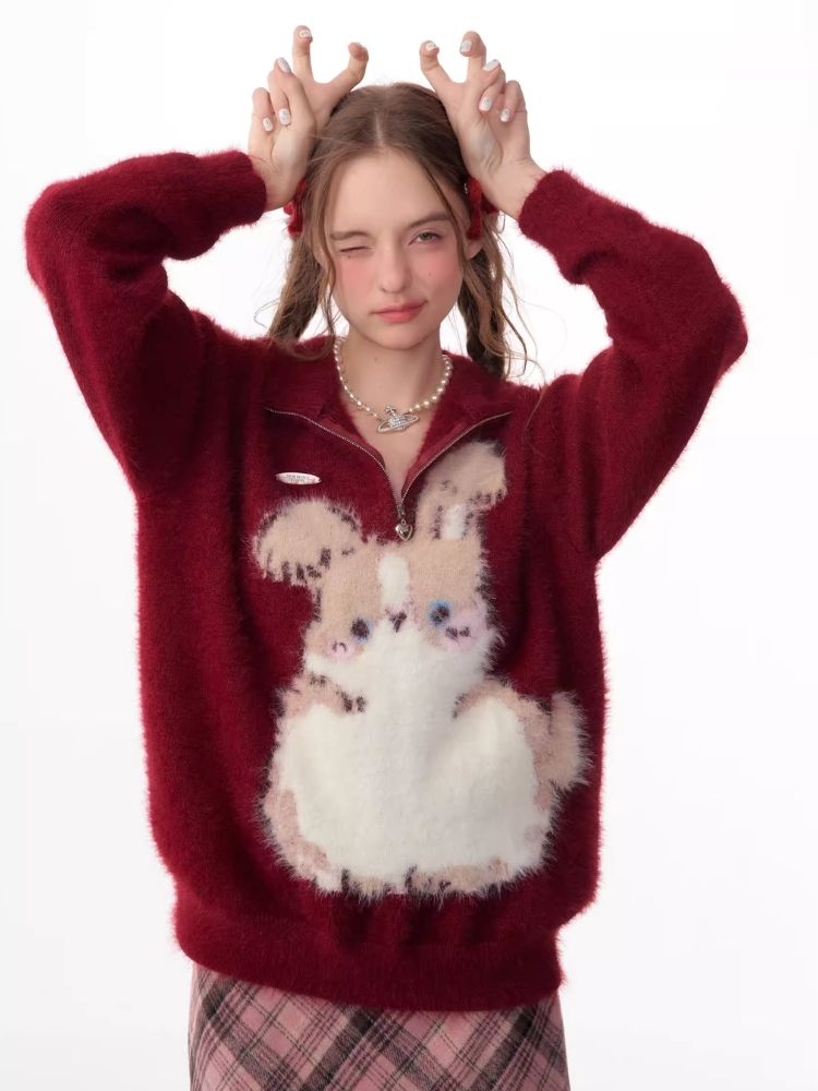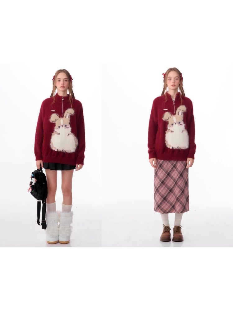 Christmas thickened Rabbit red sweater