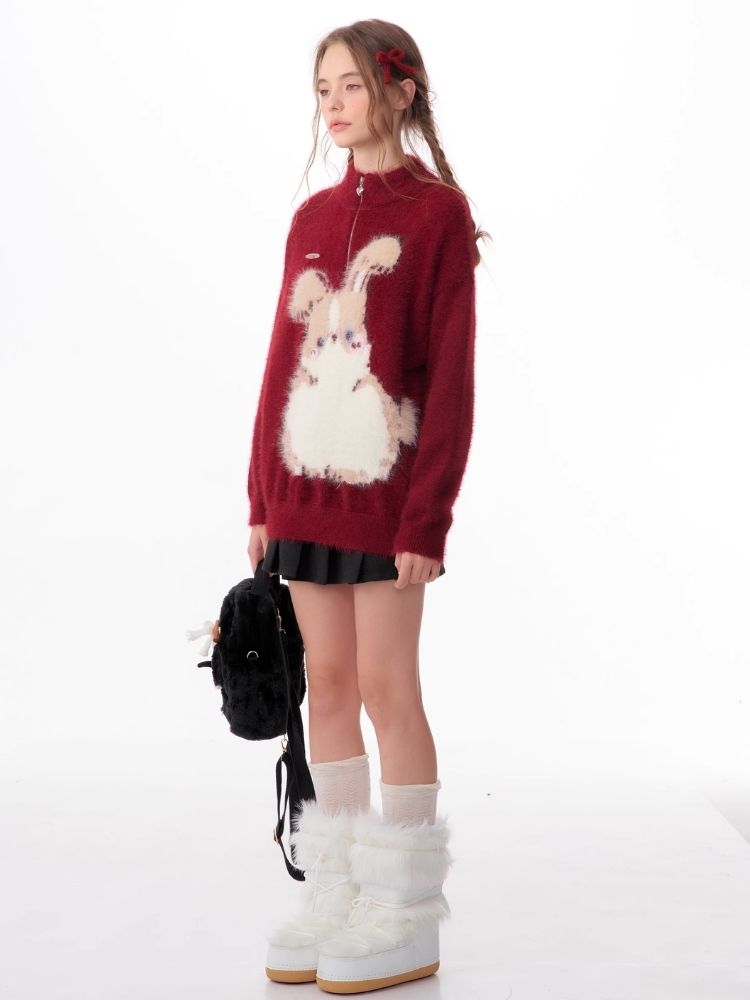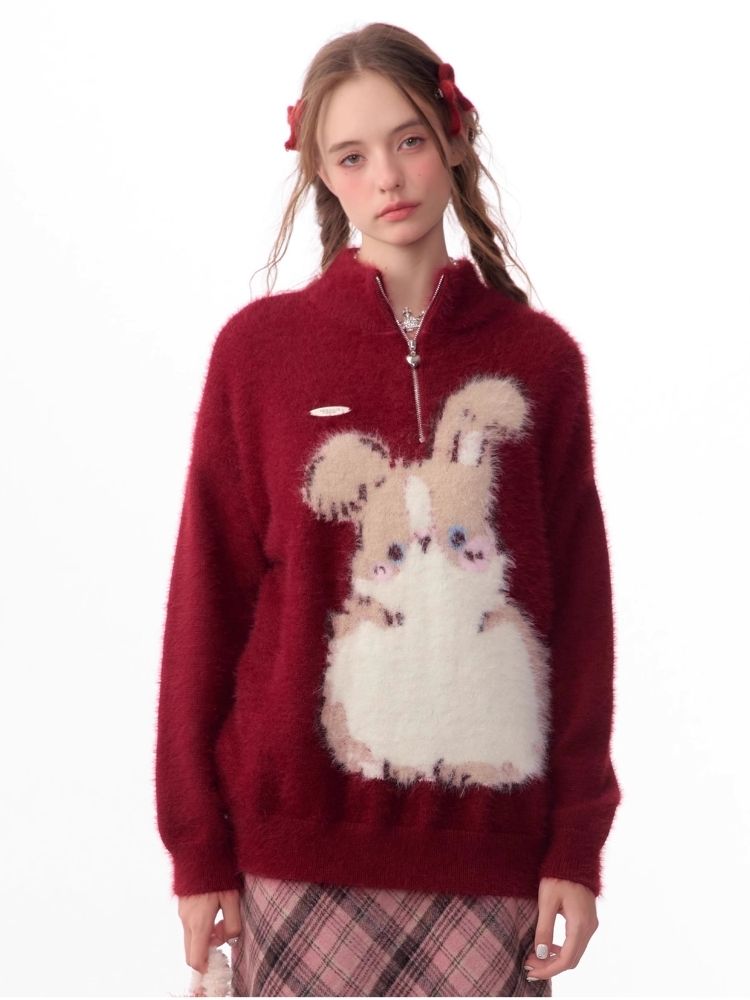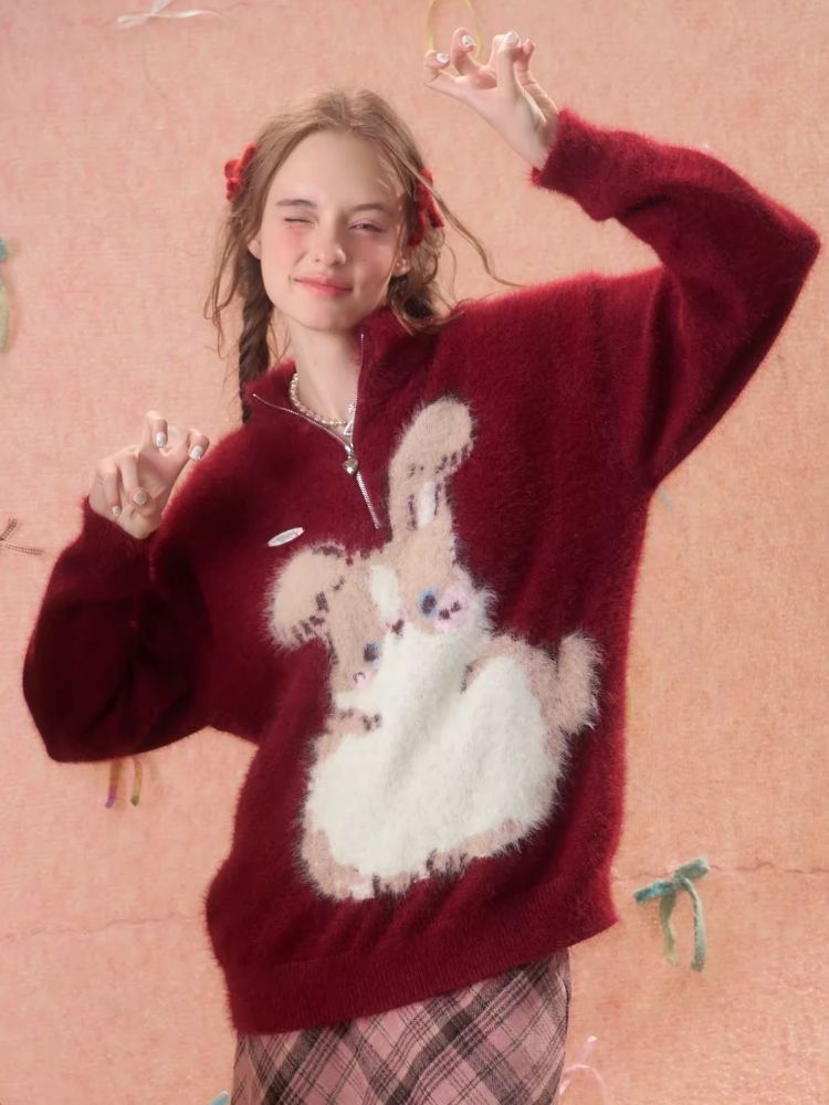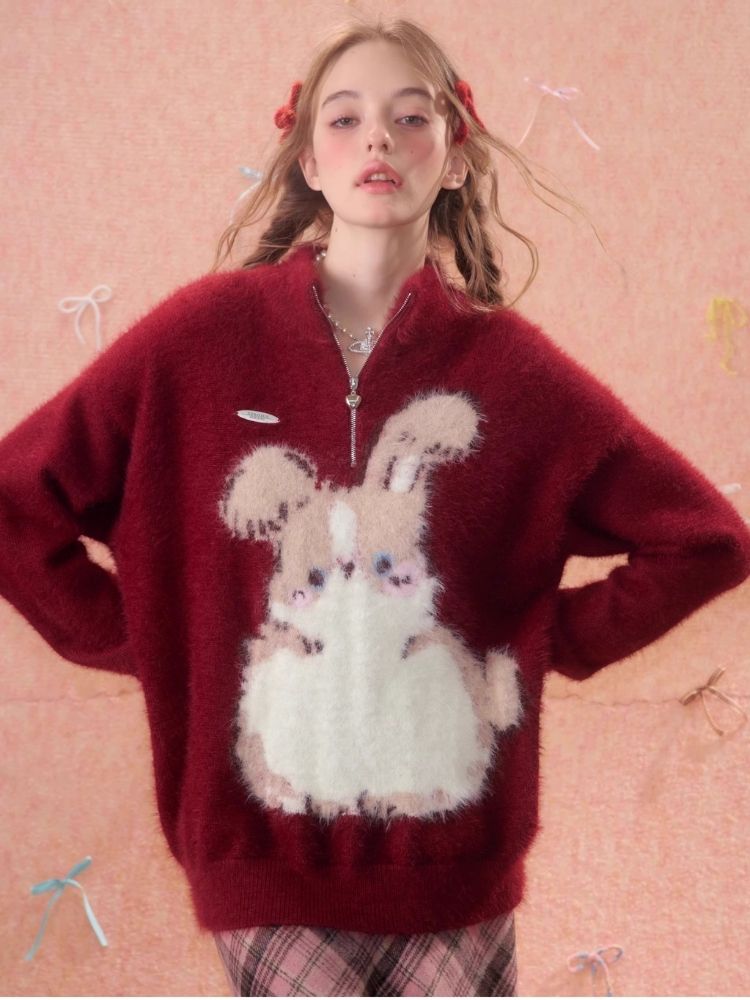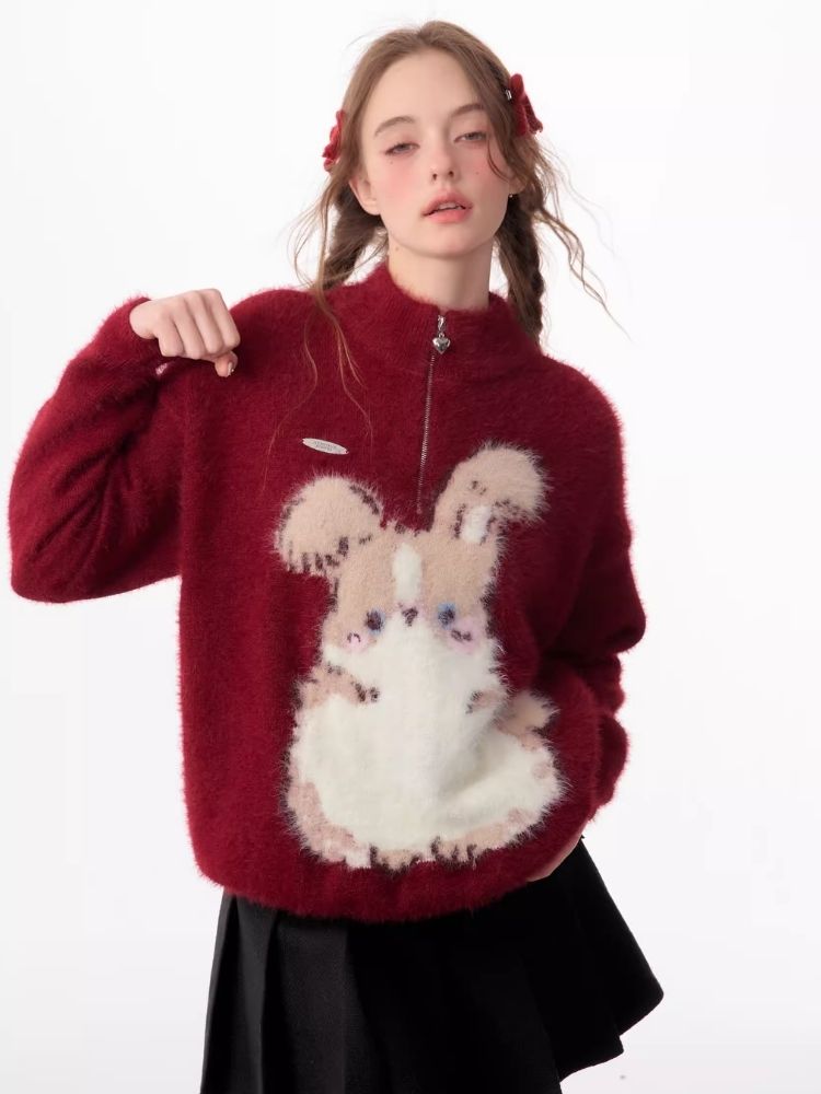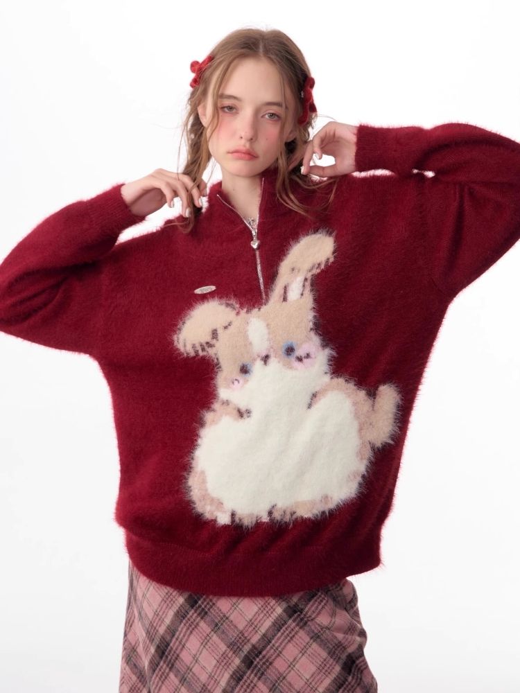 Christmas thickened Rabbit red sweater