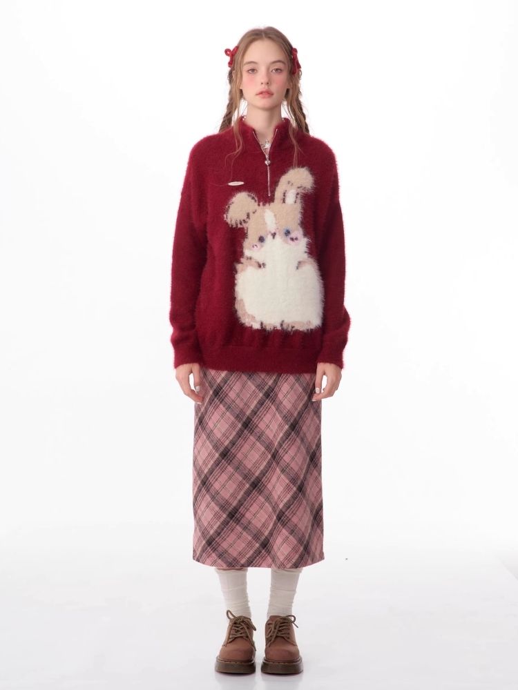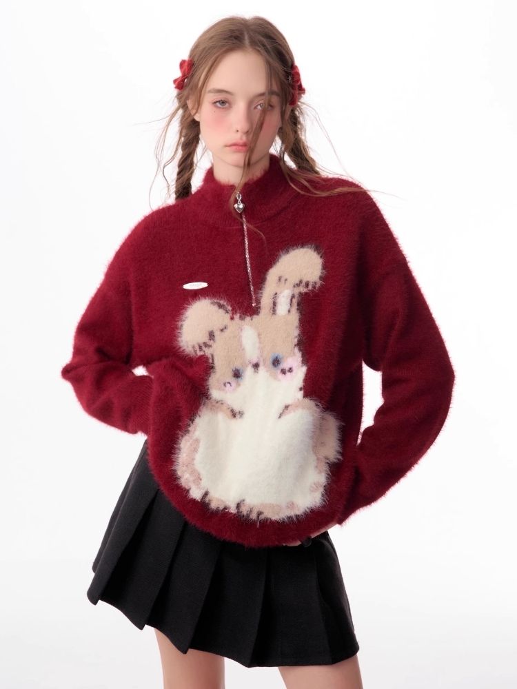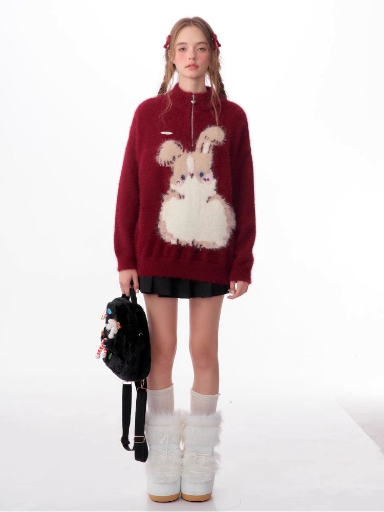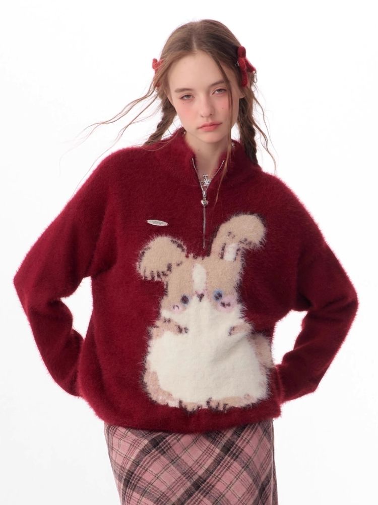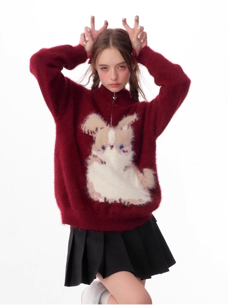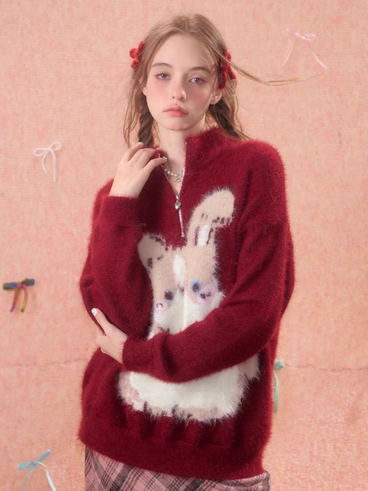 Christmas thickened Rabbit red sweater