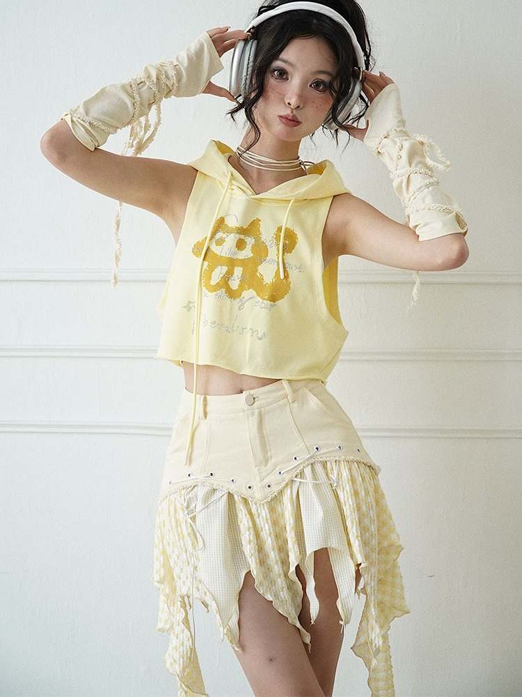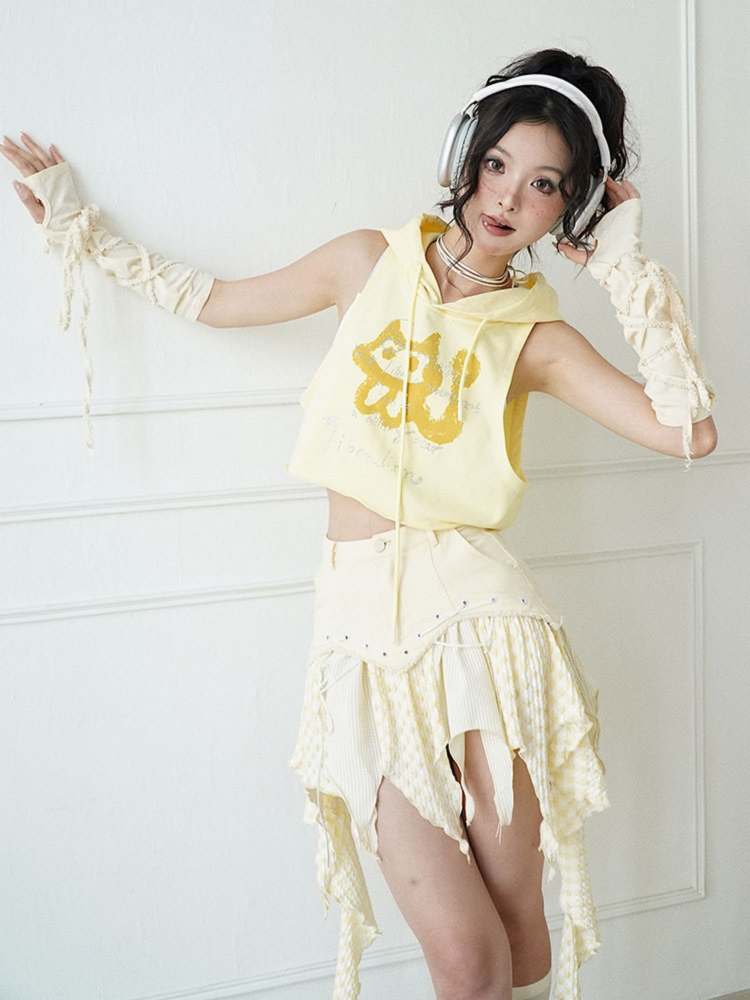 milk yellow irregular skirt