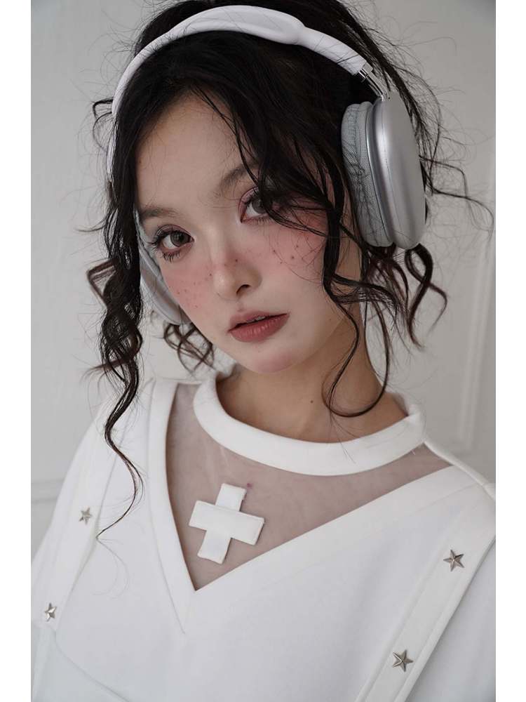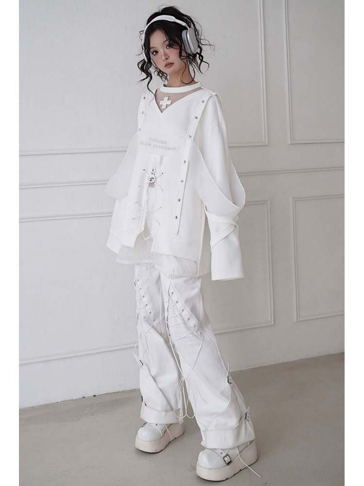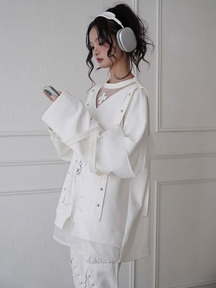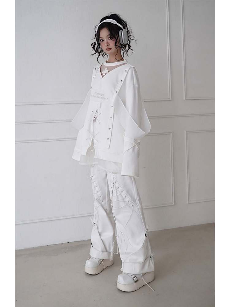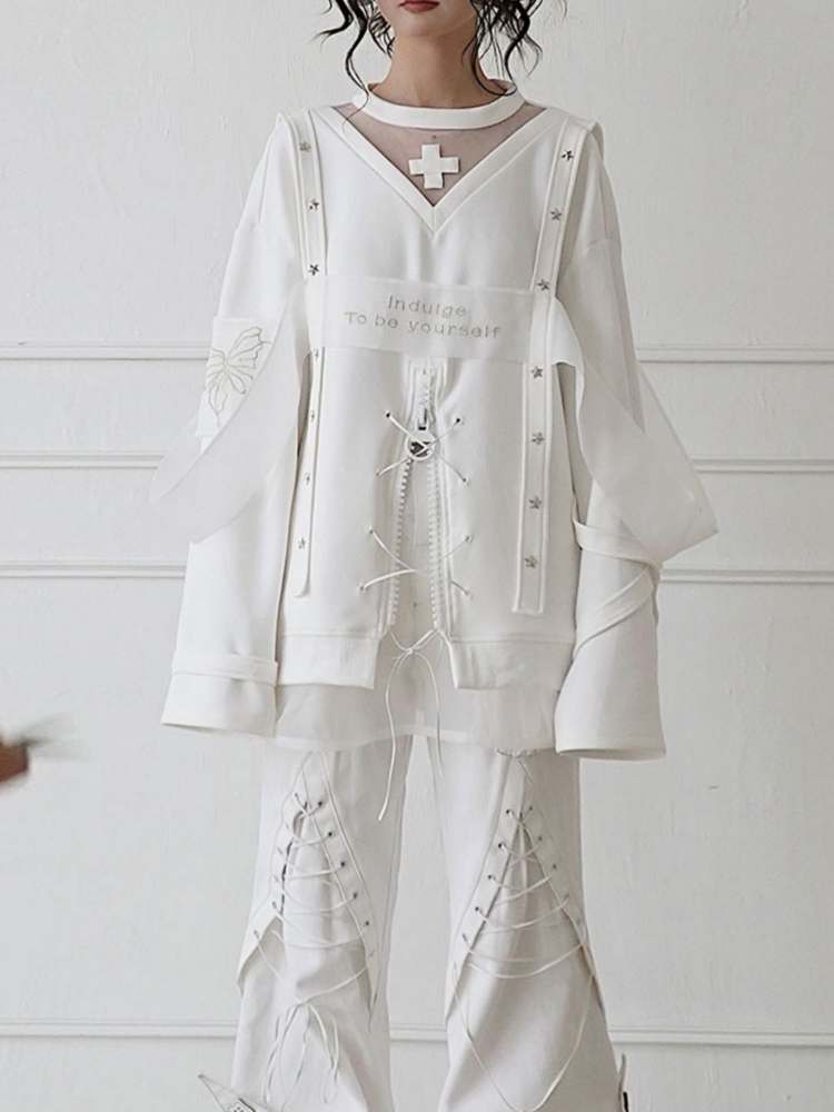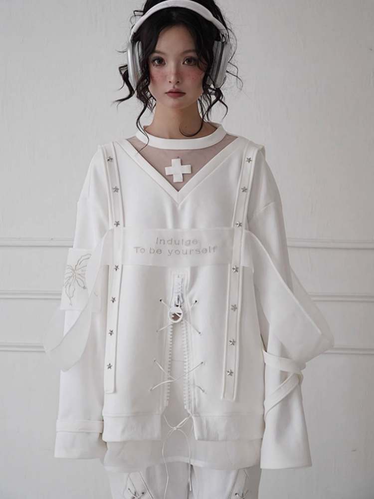 white embroidered fashionable sweatshirt