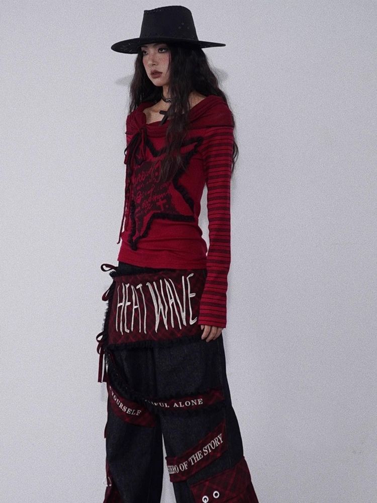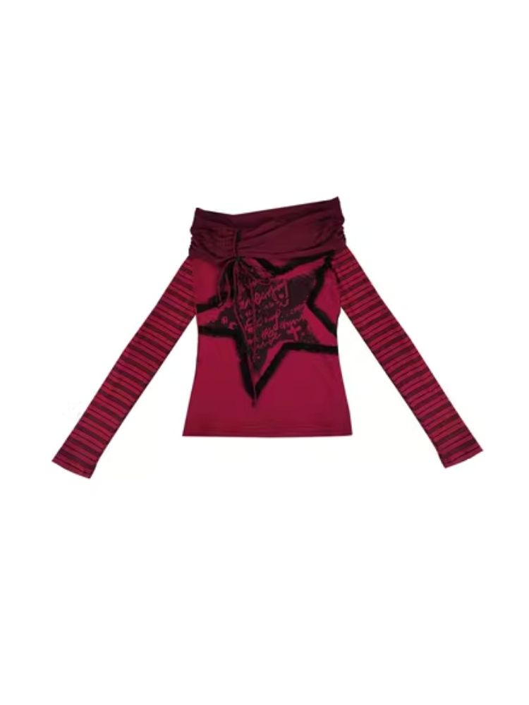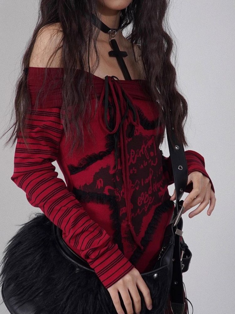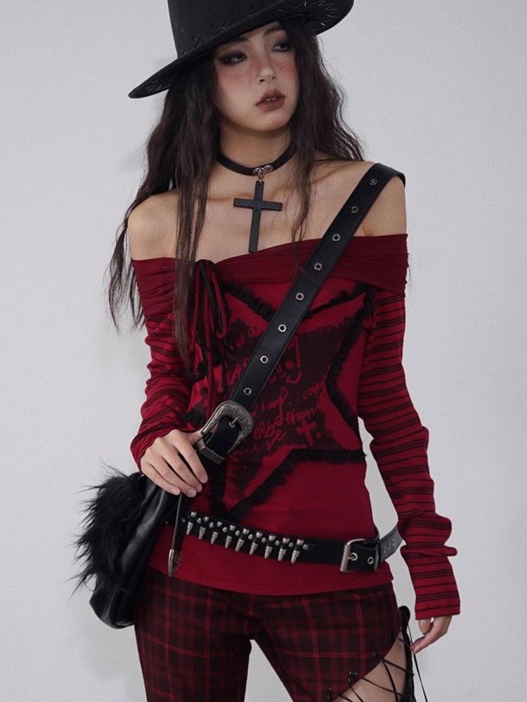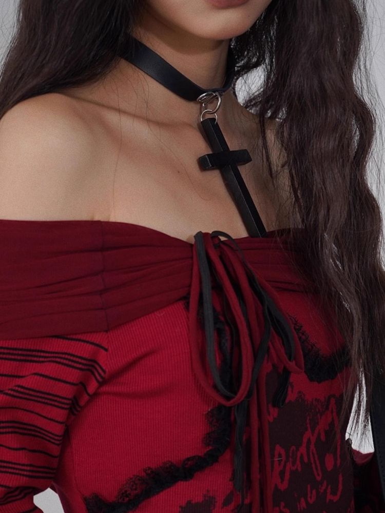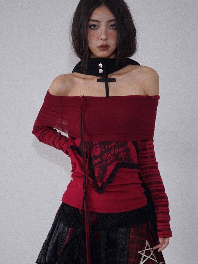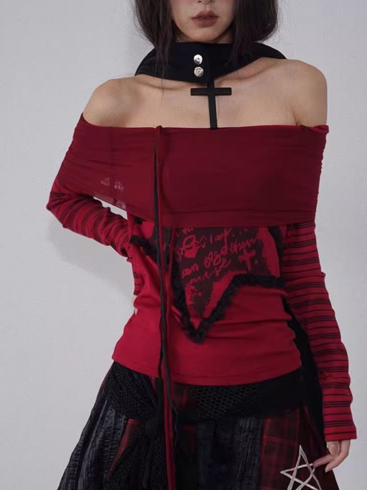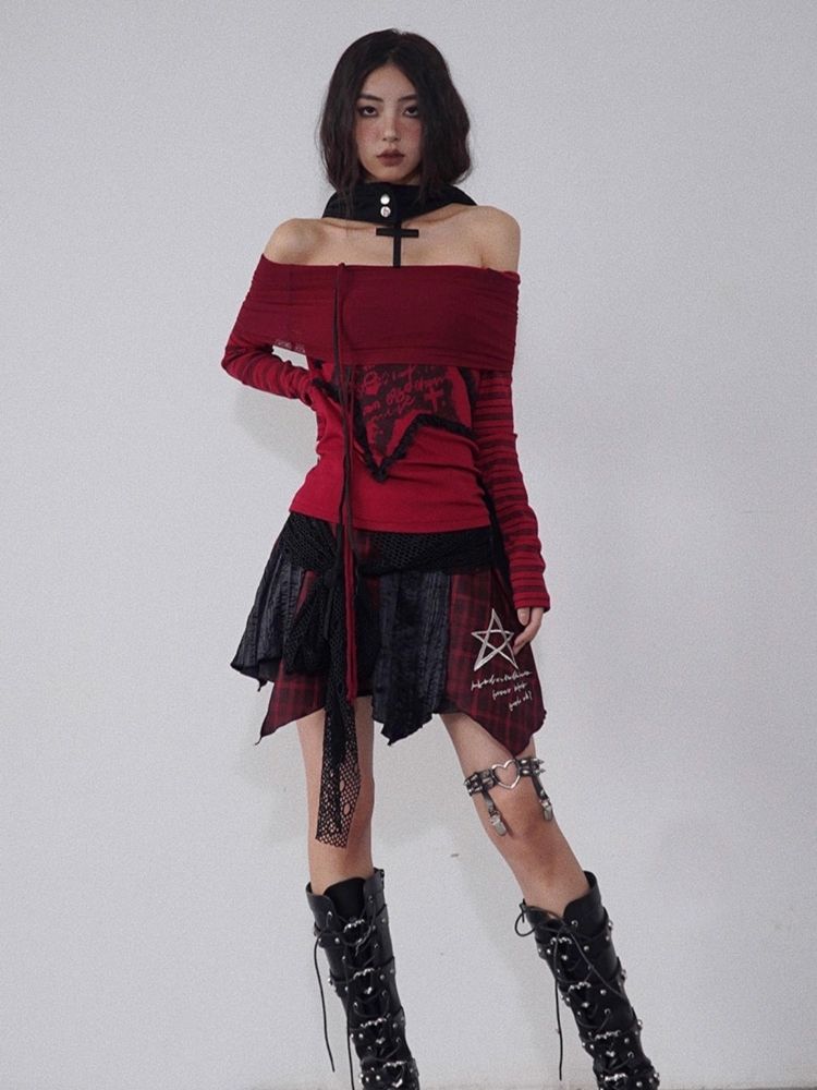 one-shoulder red and black top