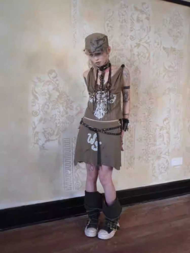 print suede irregular set