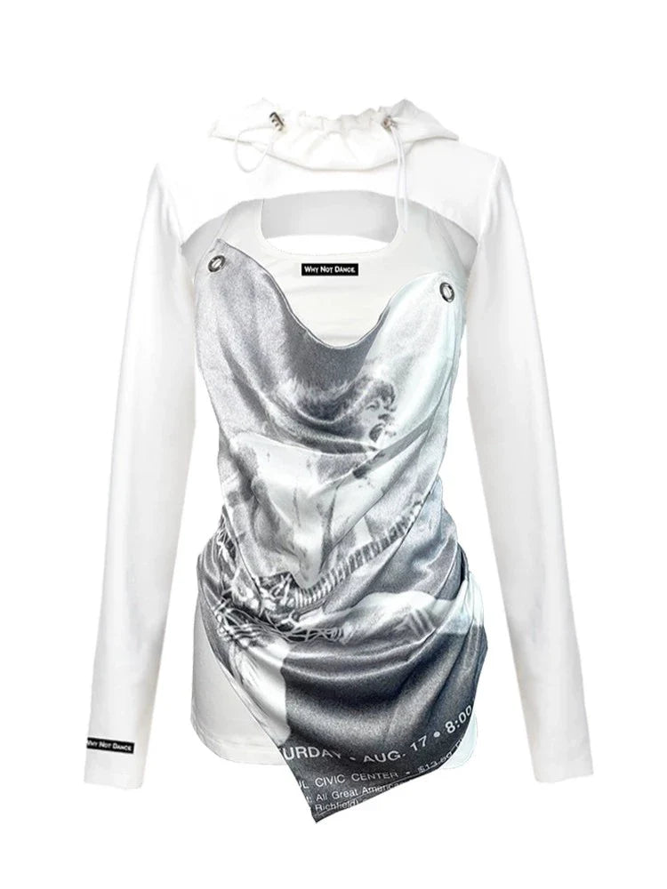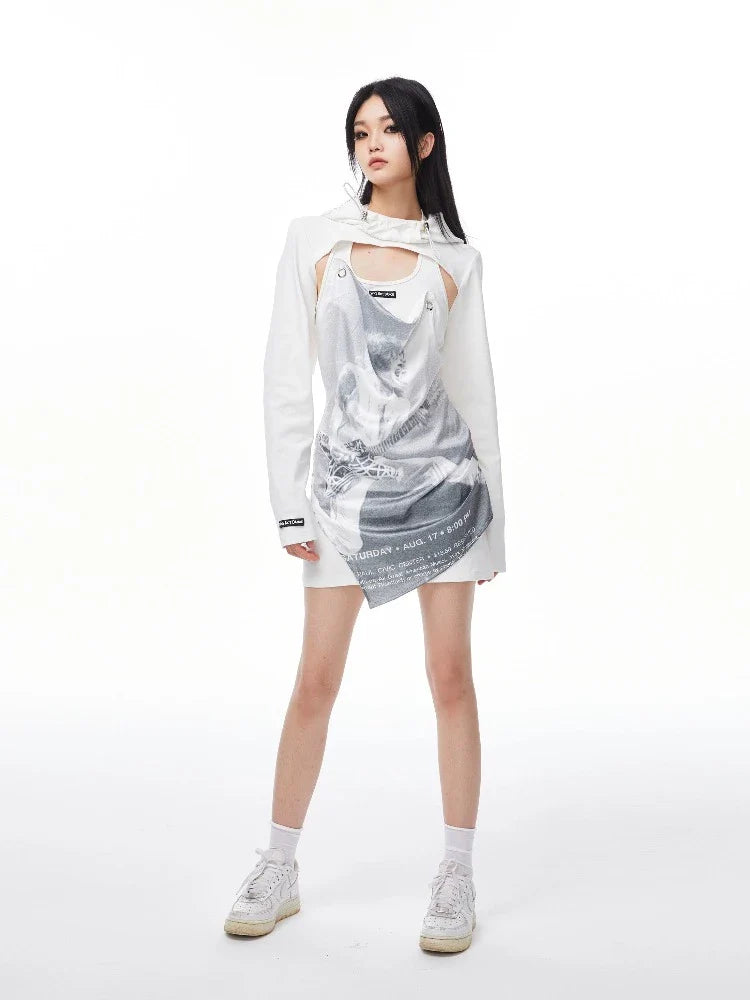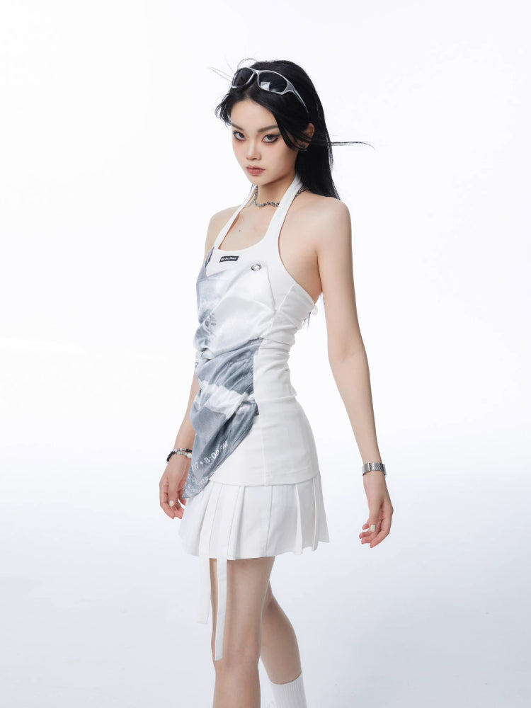 Fake two-piece sleeveless and Pleated Skirt