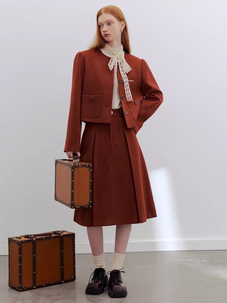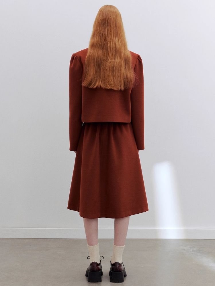long versatile brick red skirt