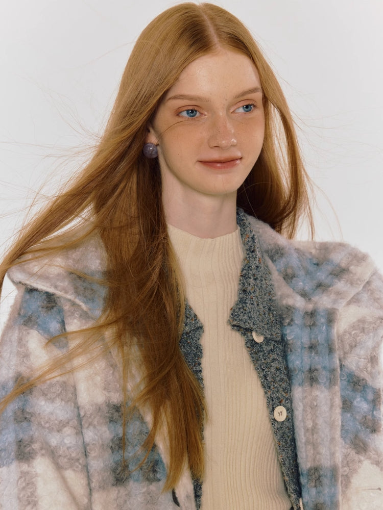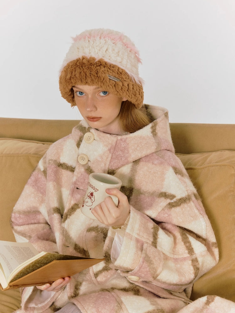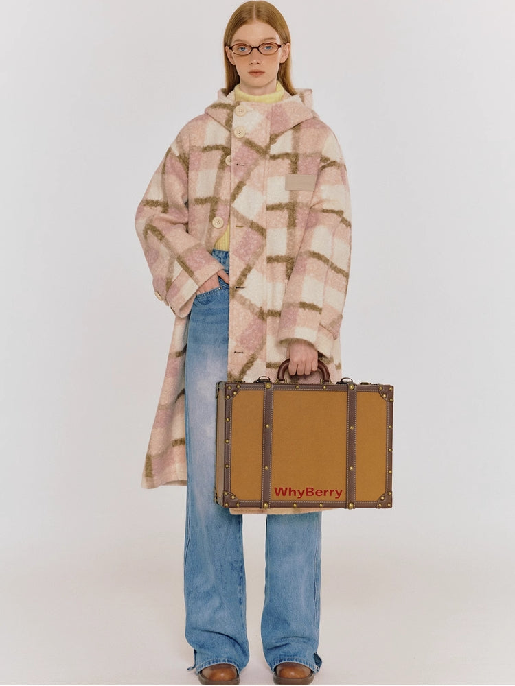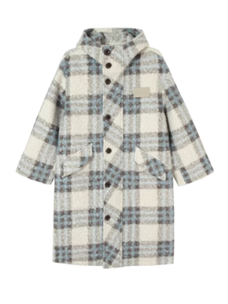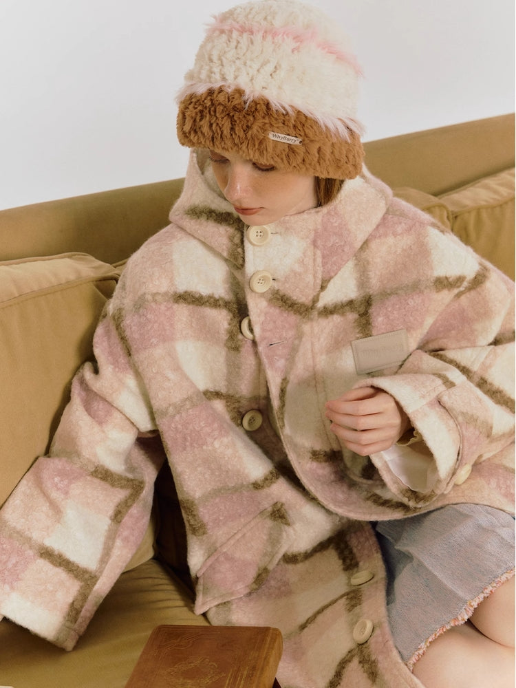plaid warm mid-length coat