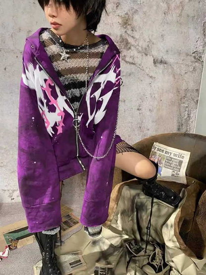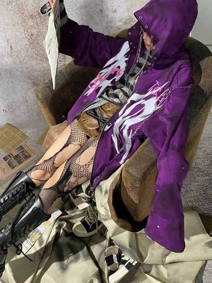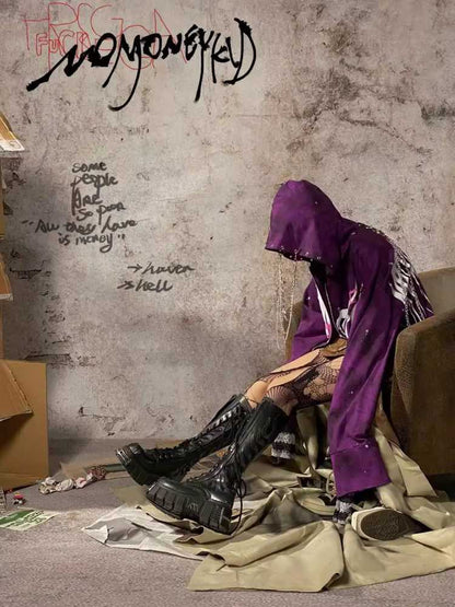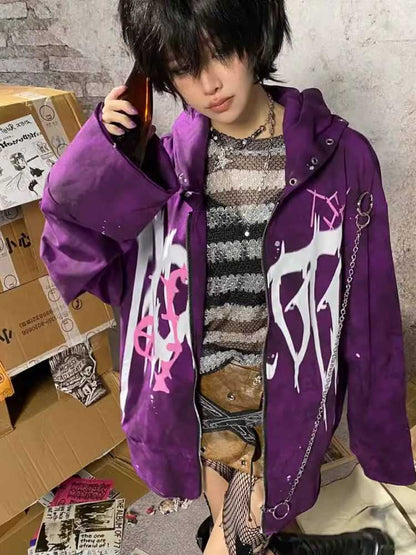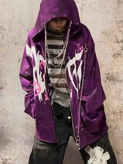 purple graffiti print metal hoodie