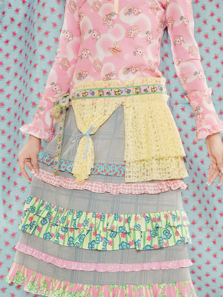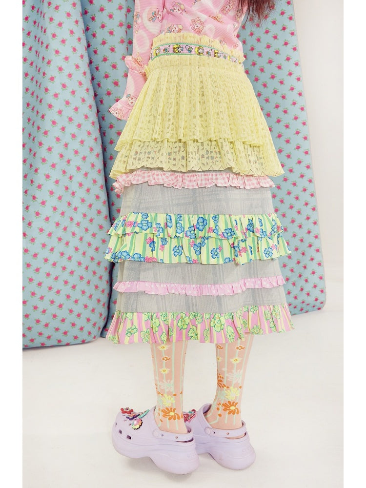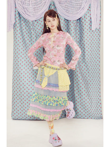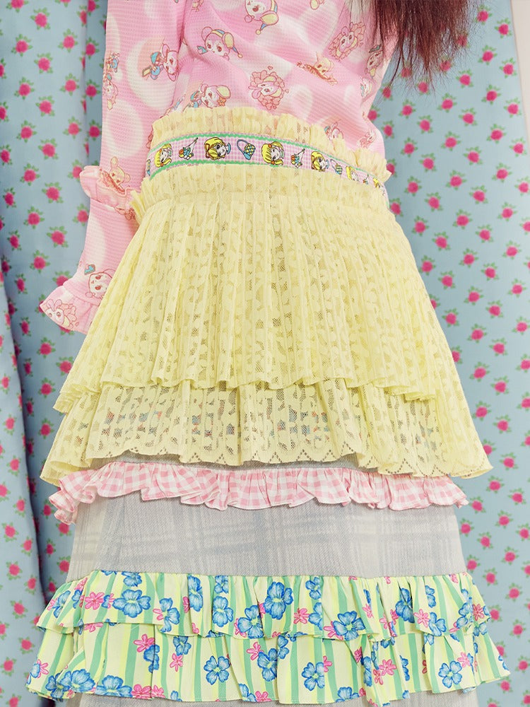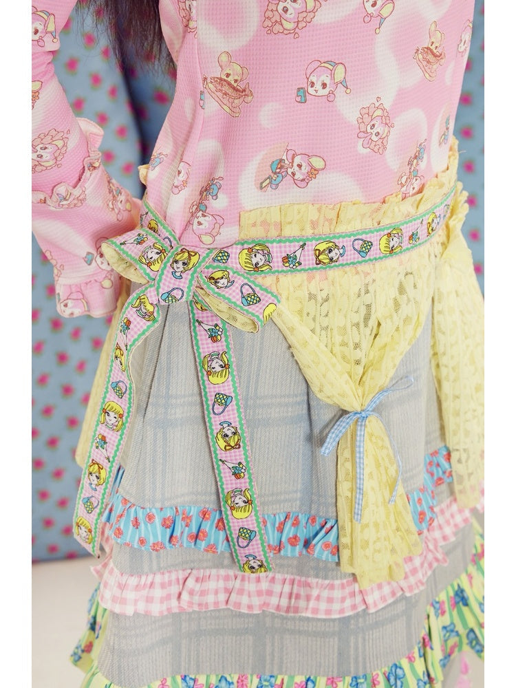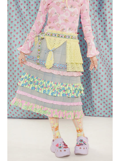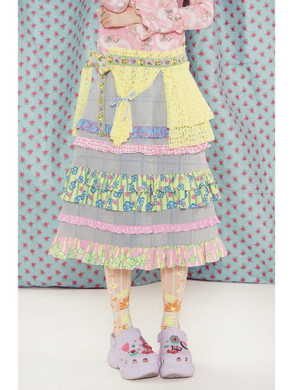 light blue lace plaid denim skirt
