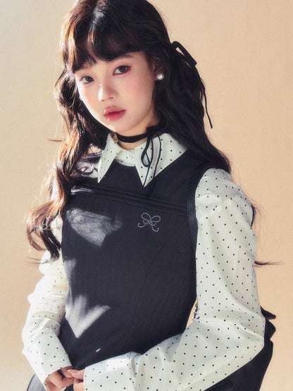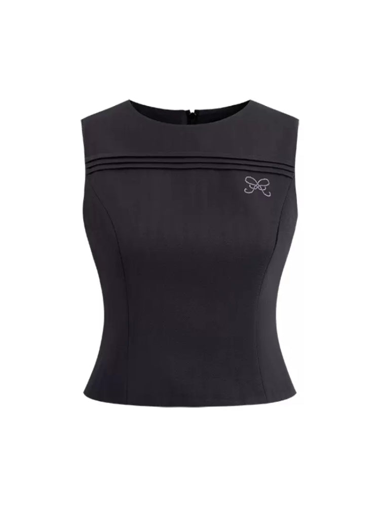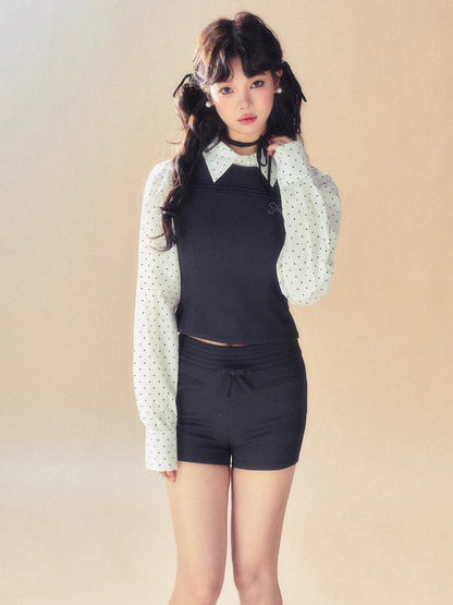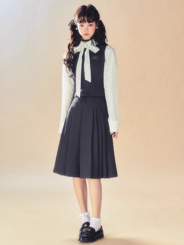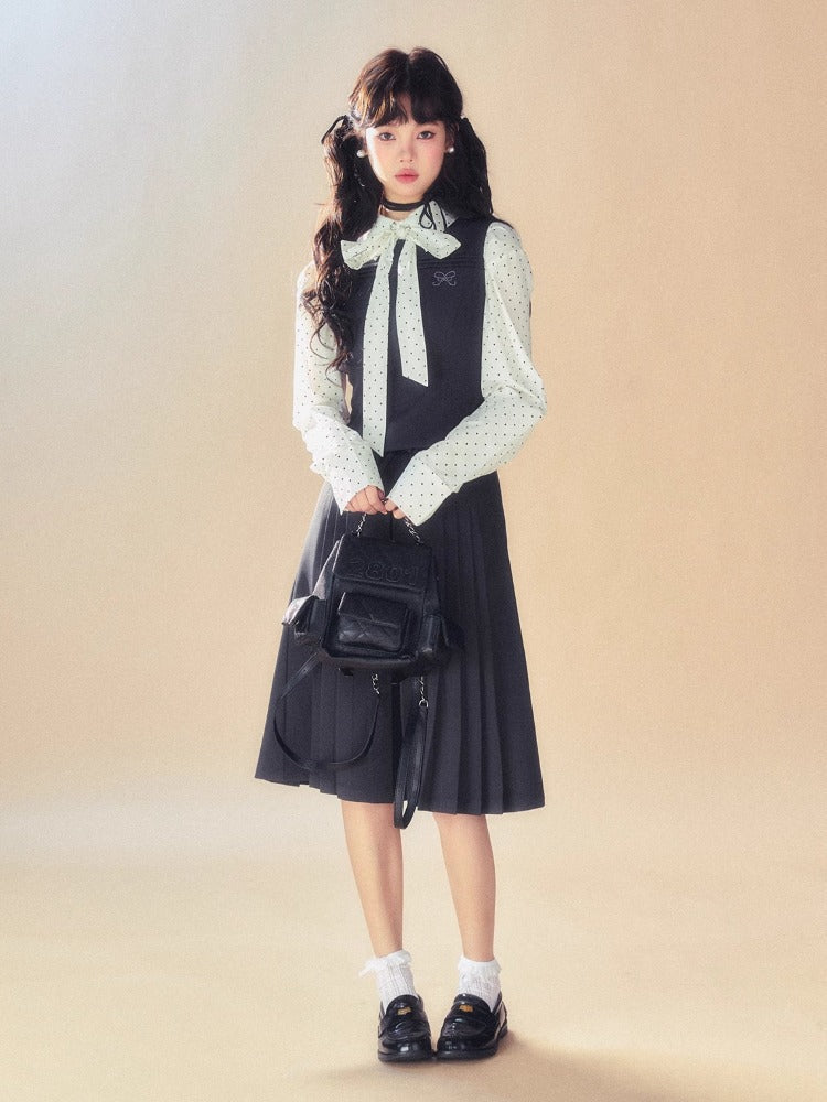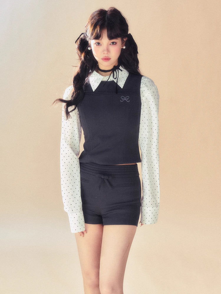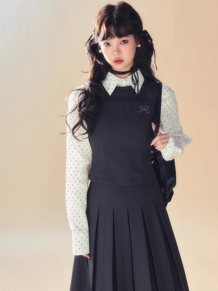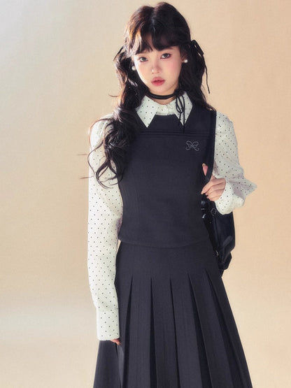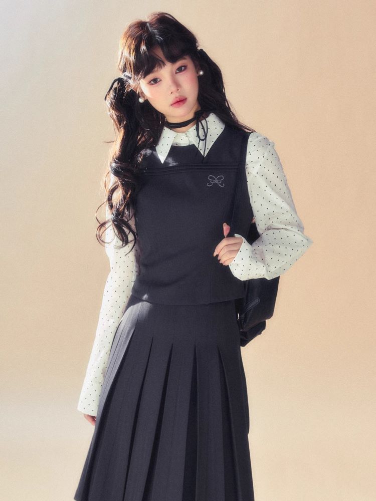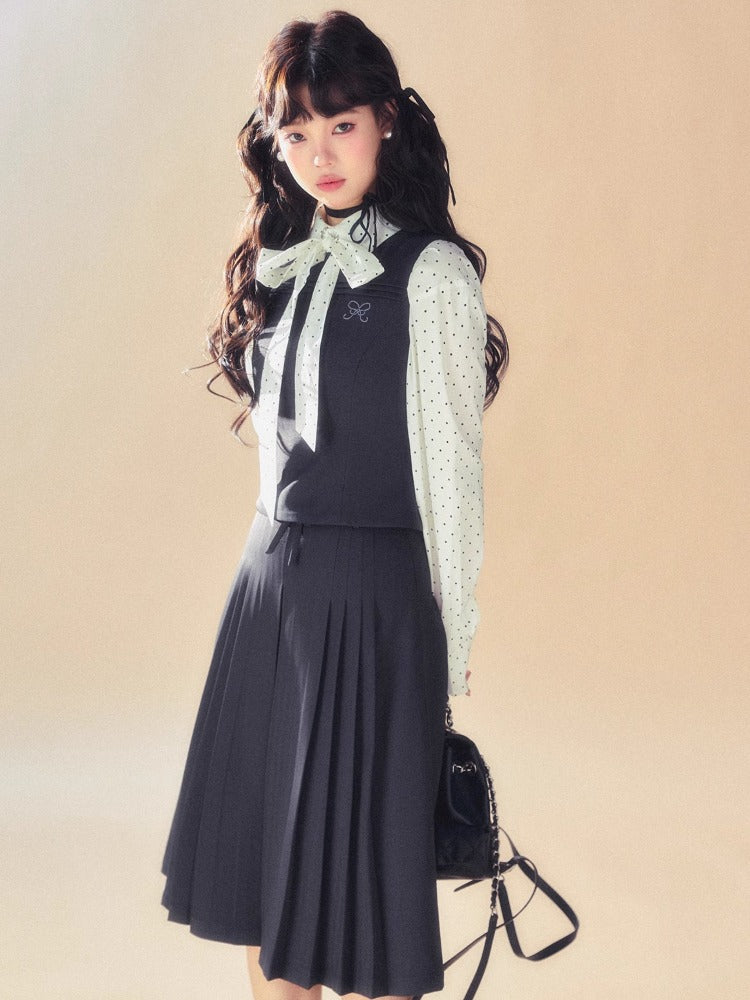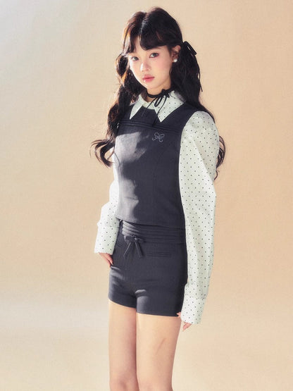 Dark Gray Herringbone Vest Shorts Pleated Skirt