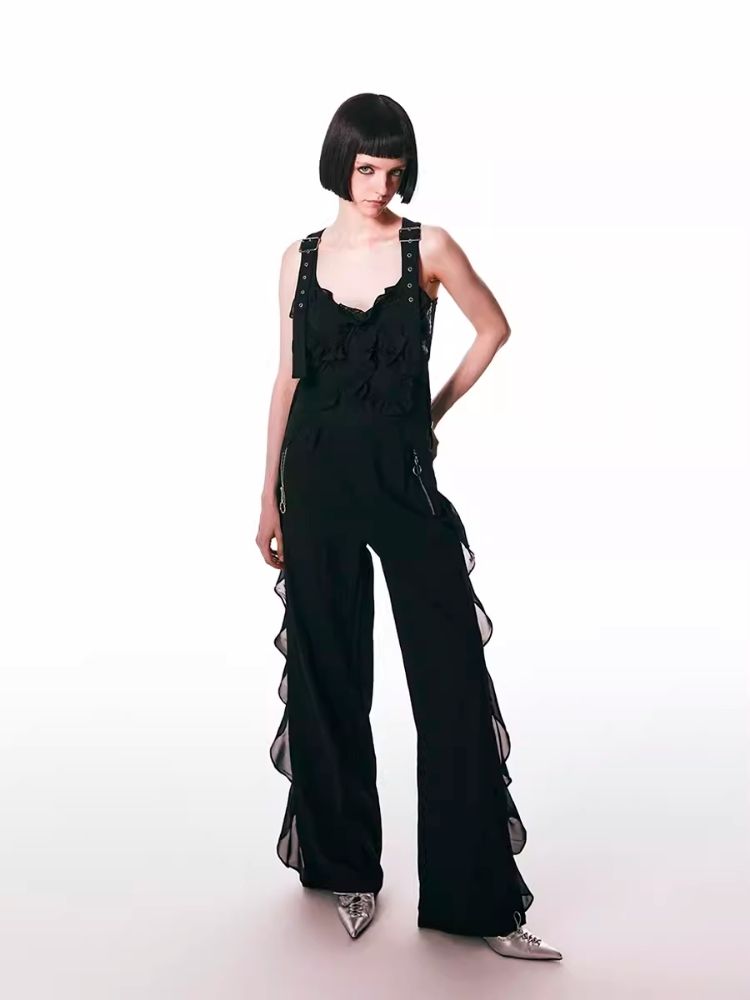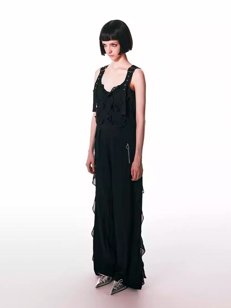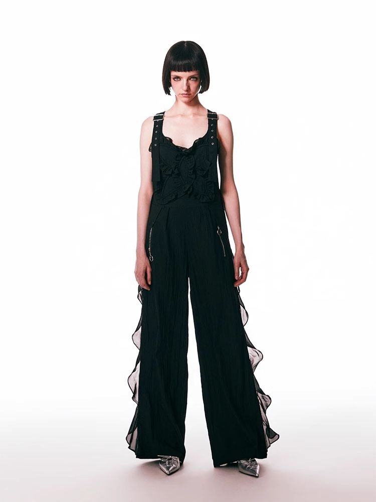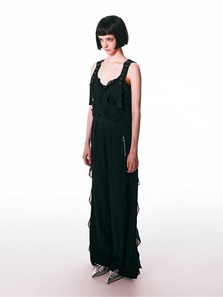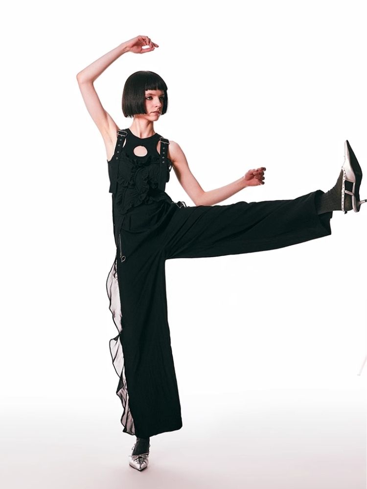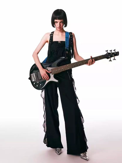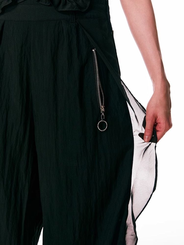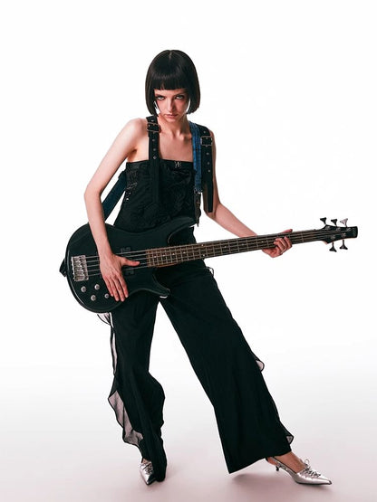 black spliced lace breathable trousers