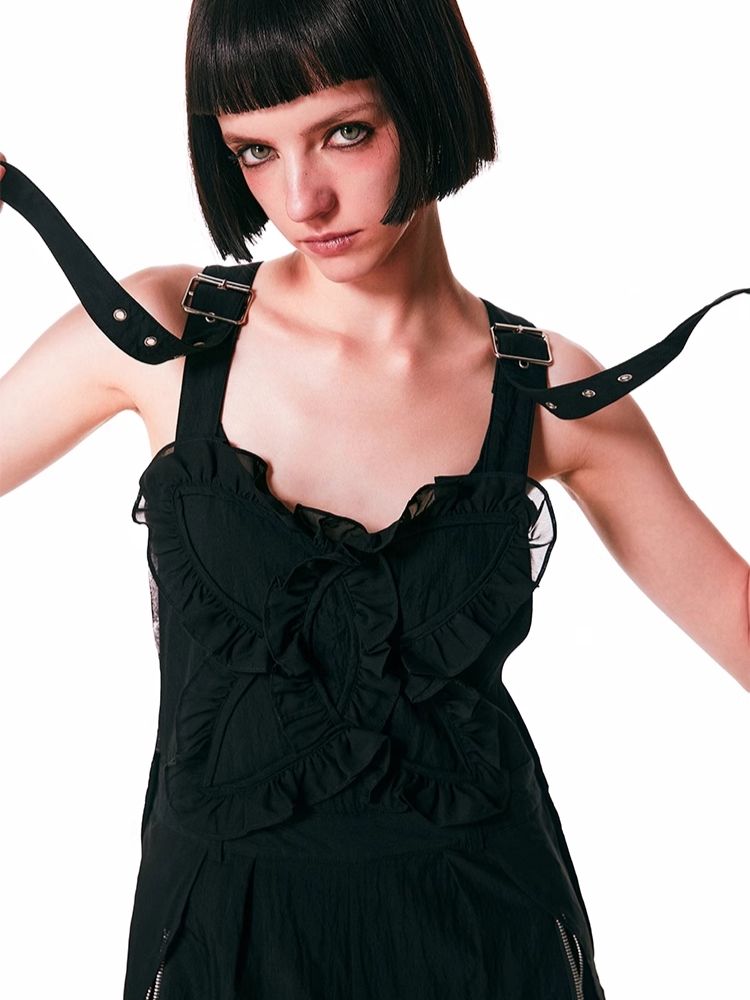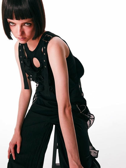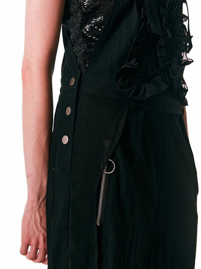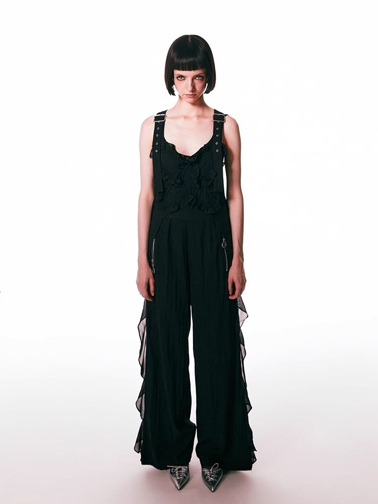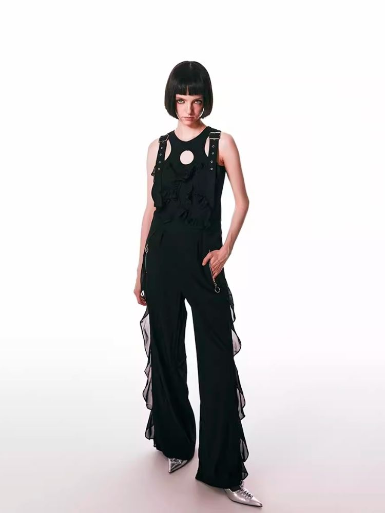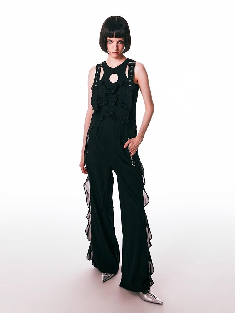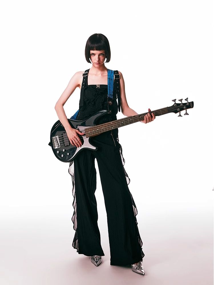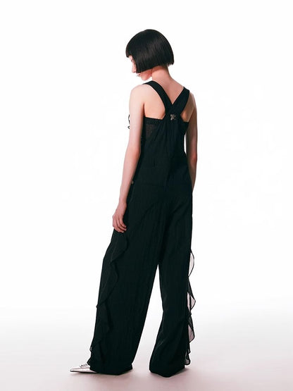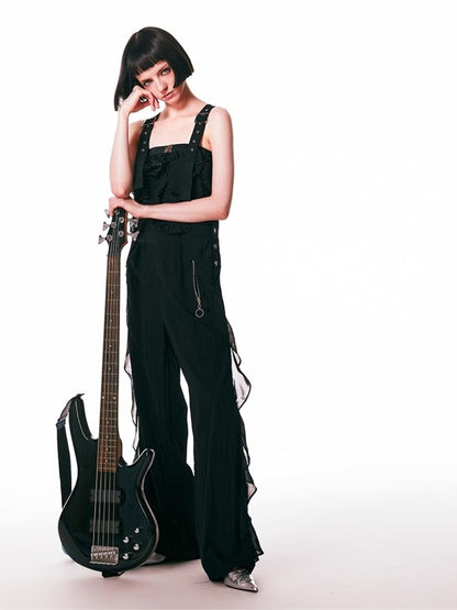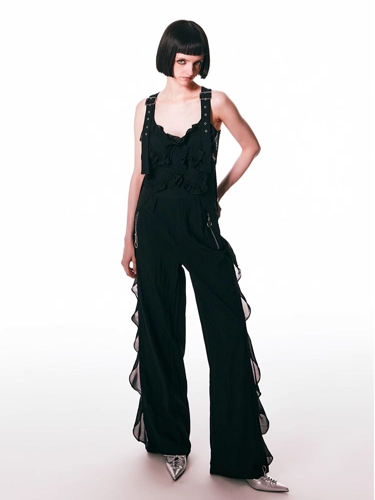 black spliced lace breathable trousers