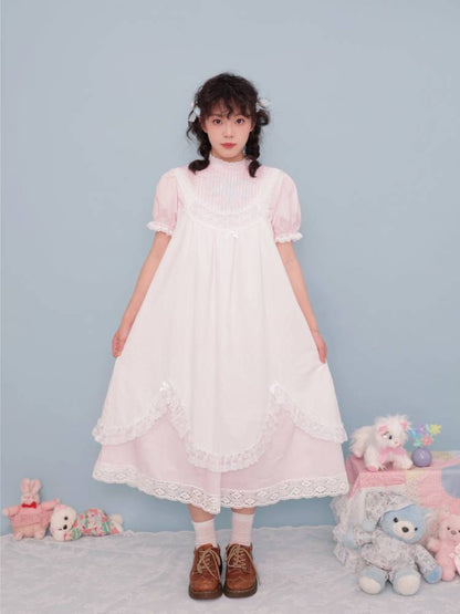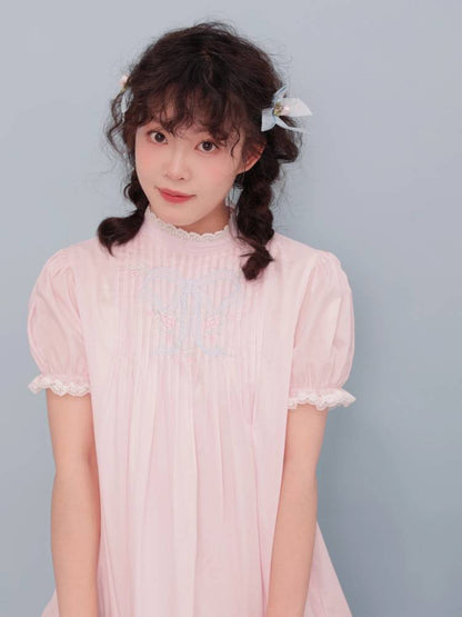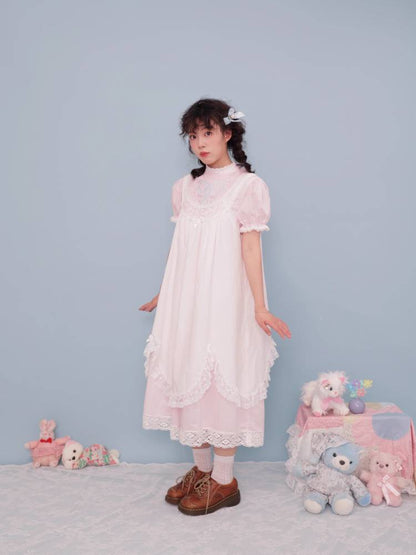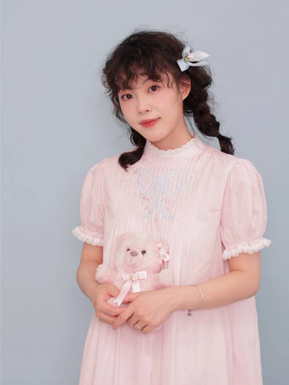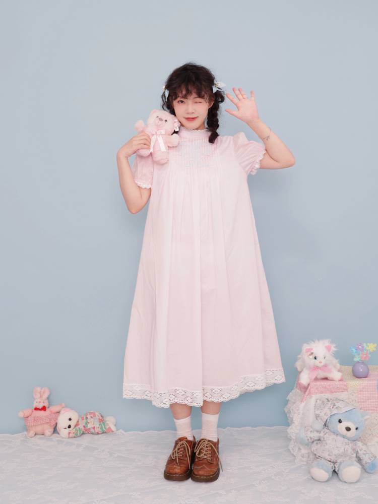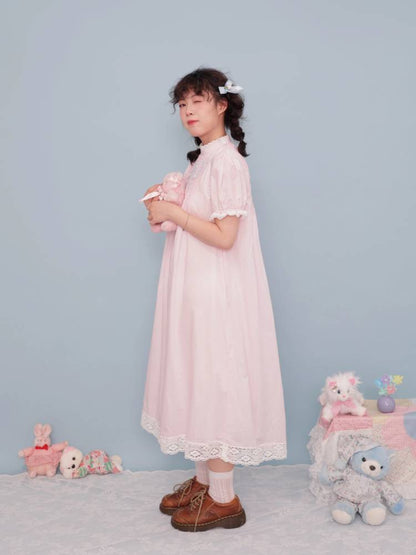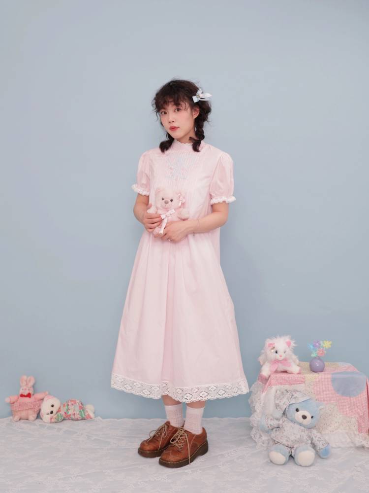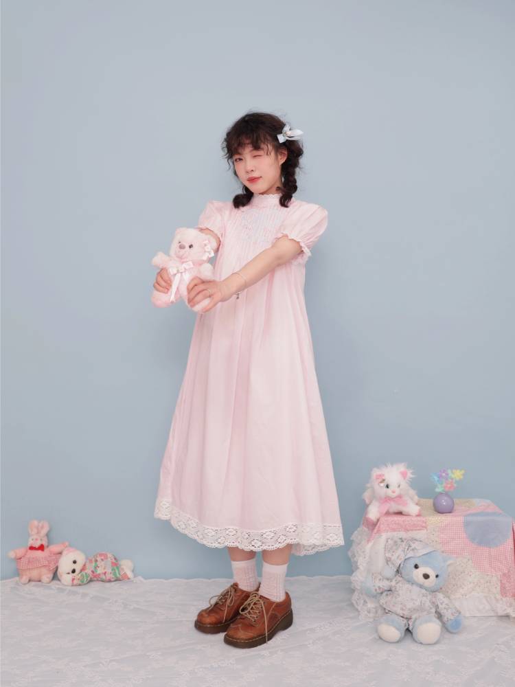 lace stand collar pink dress