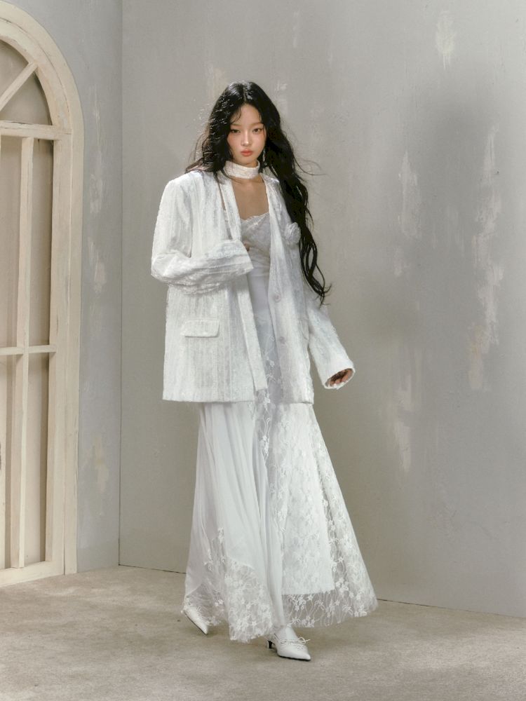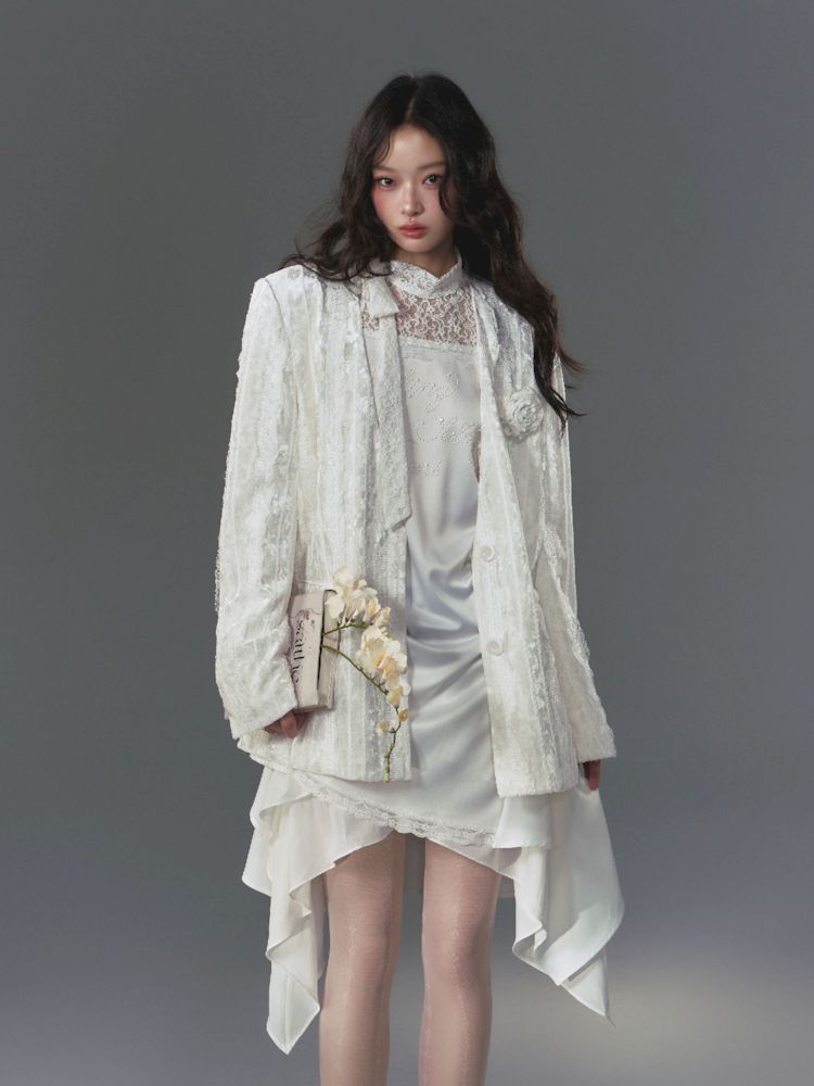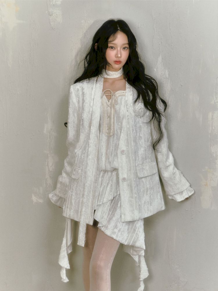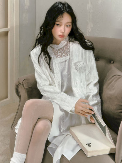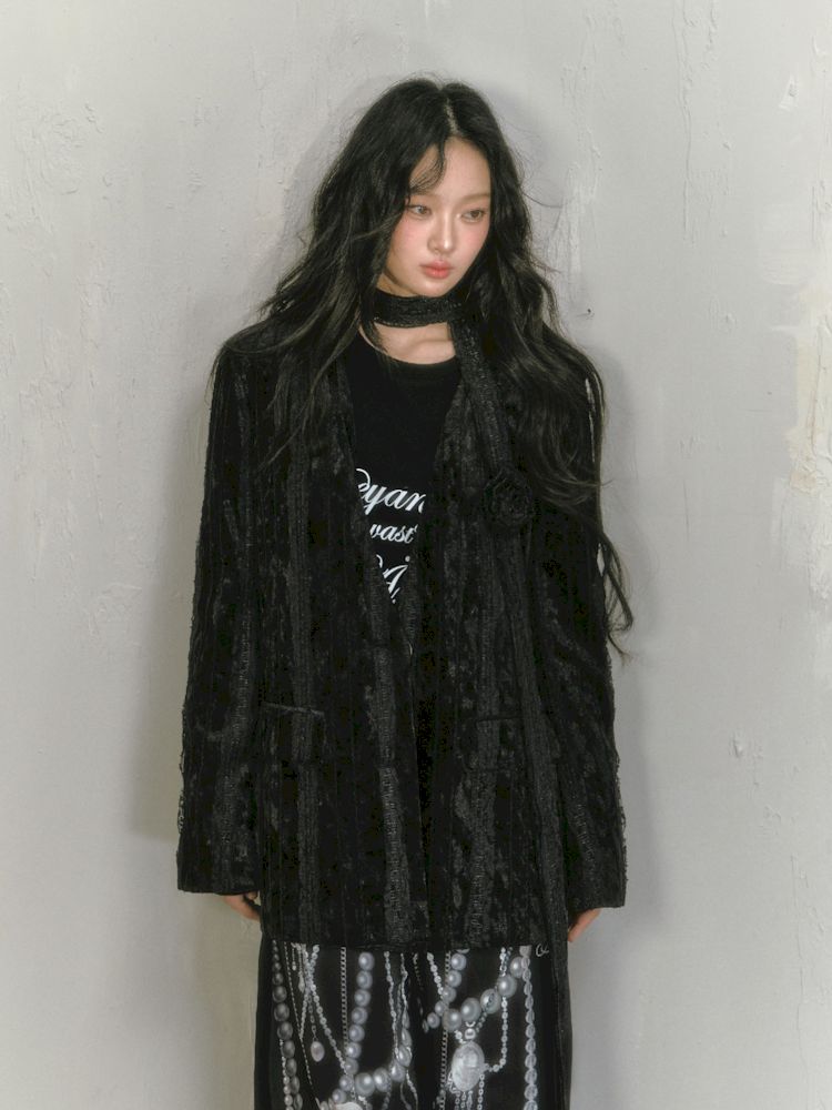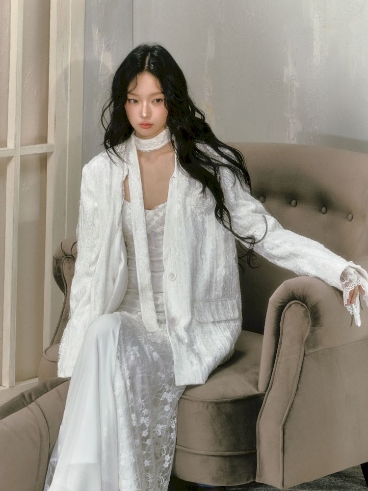 Lace Rose Ribbon Blazer