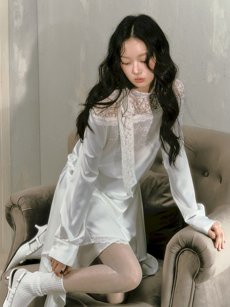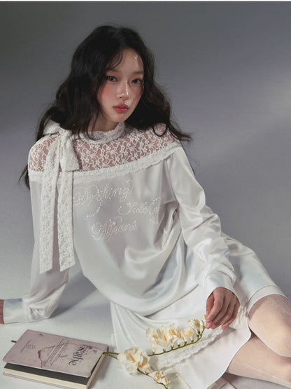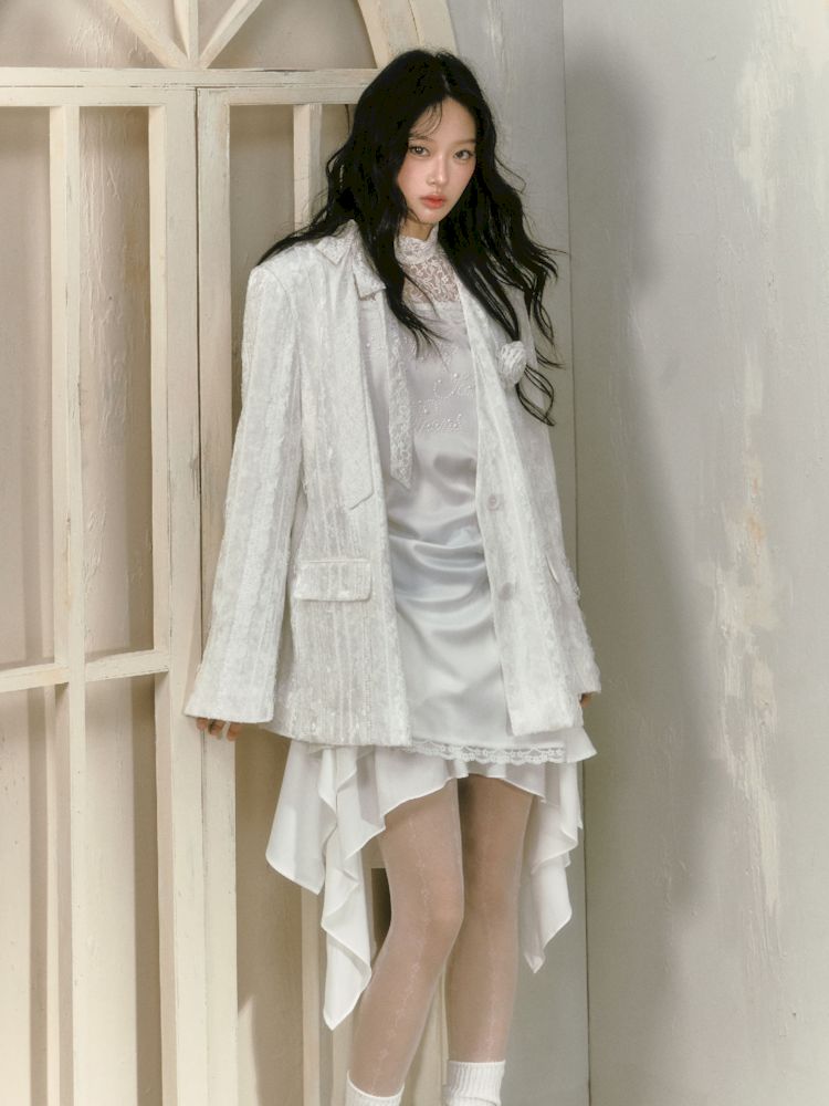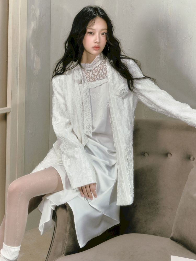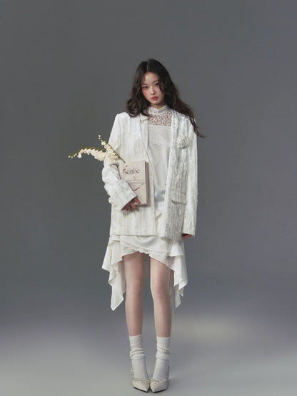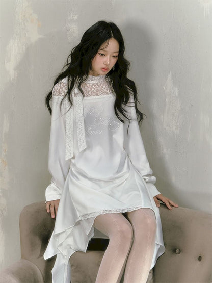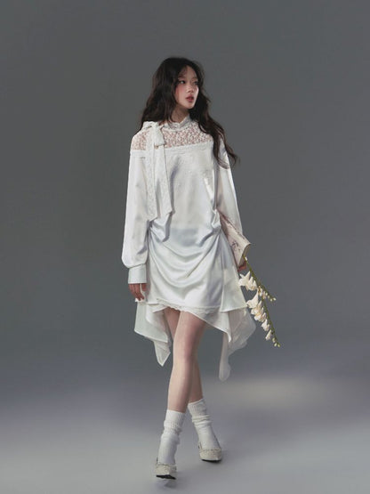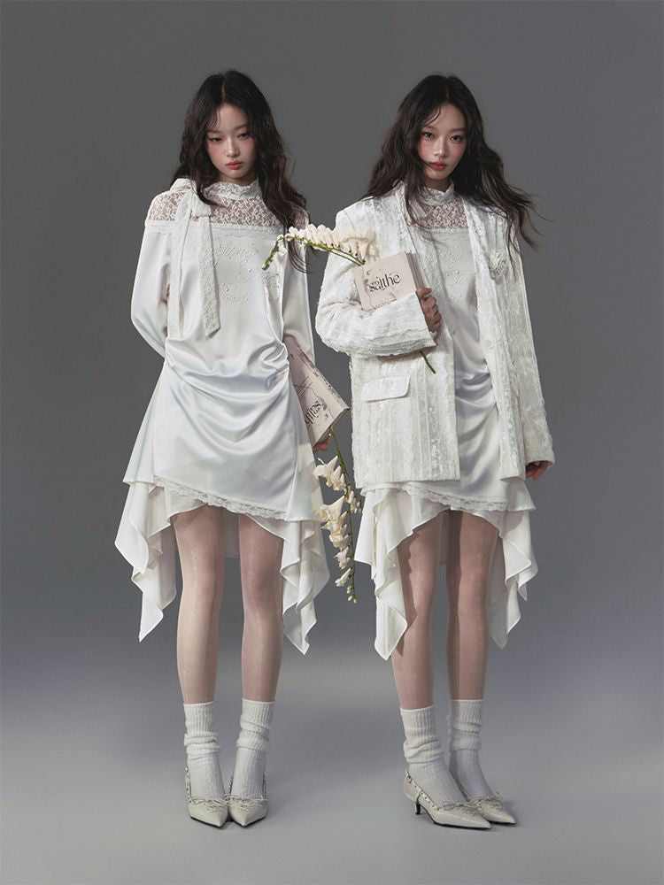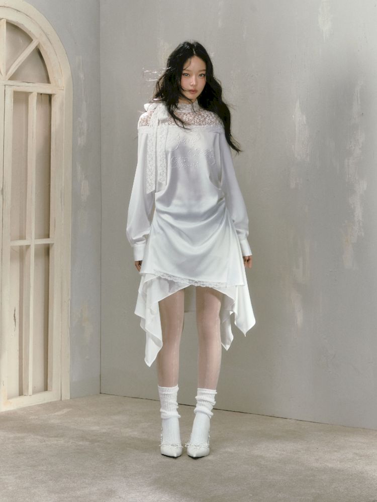 lace floating collar irregular hem dress