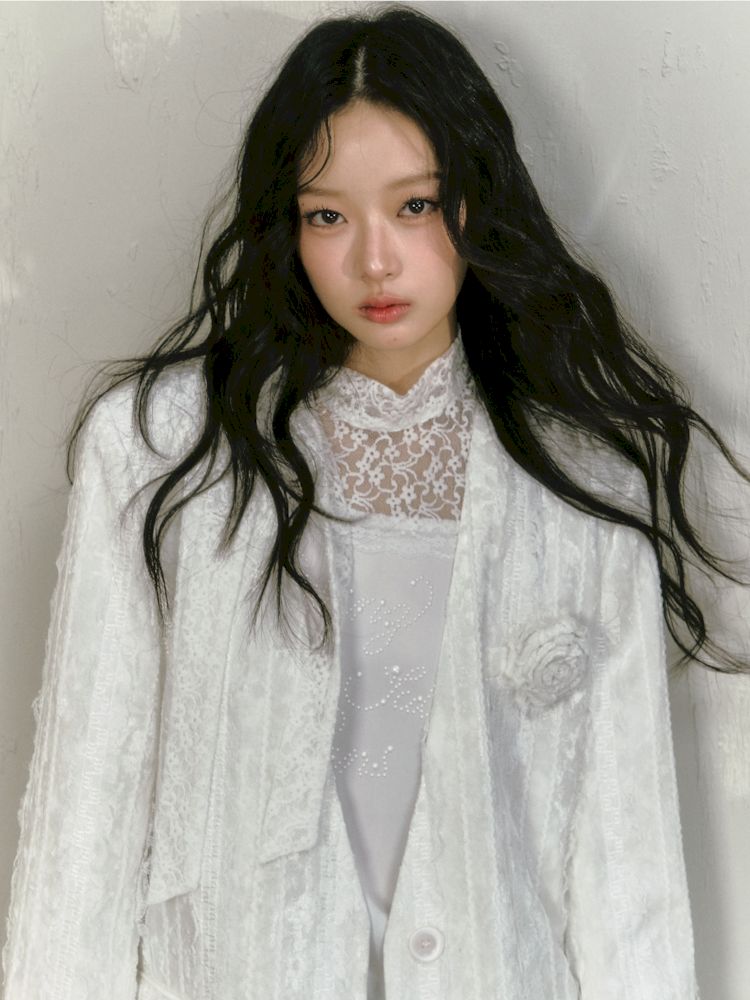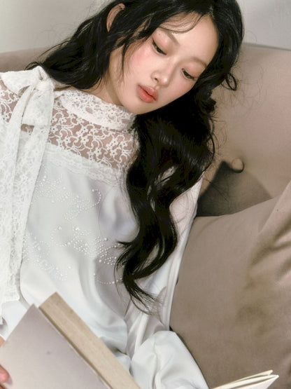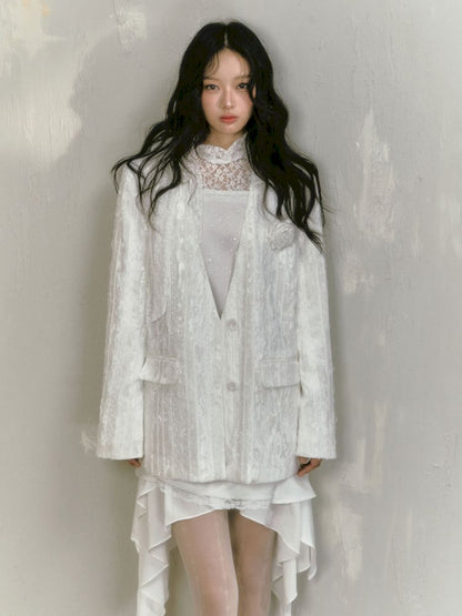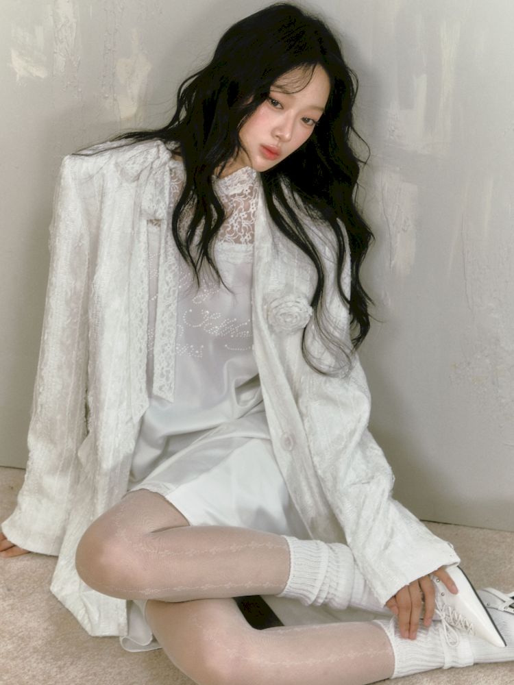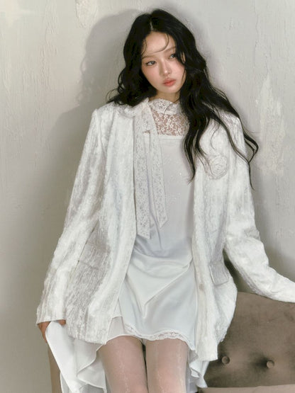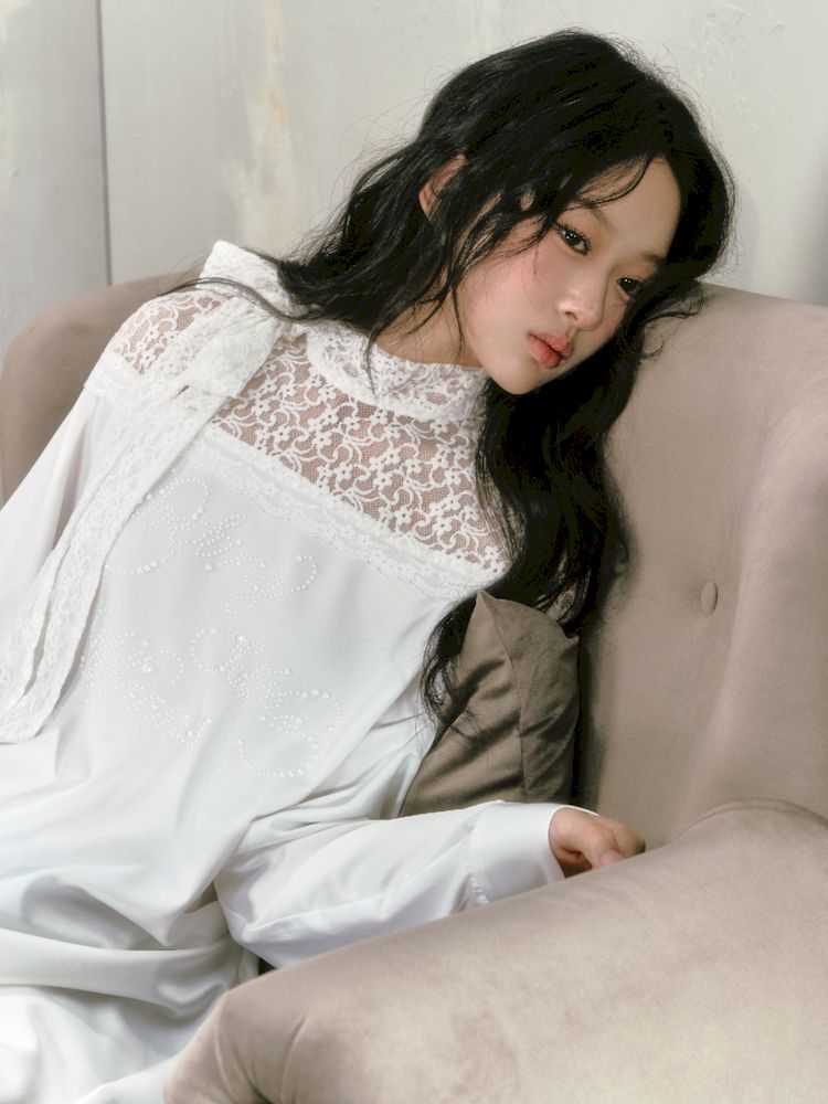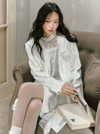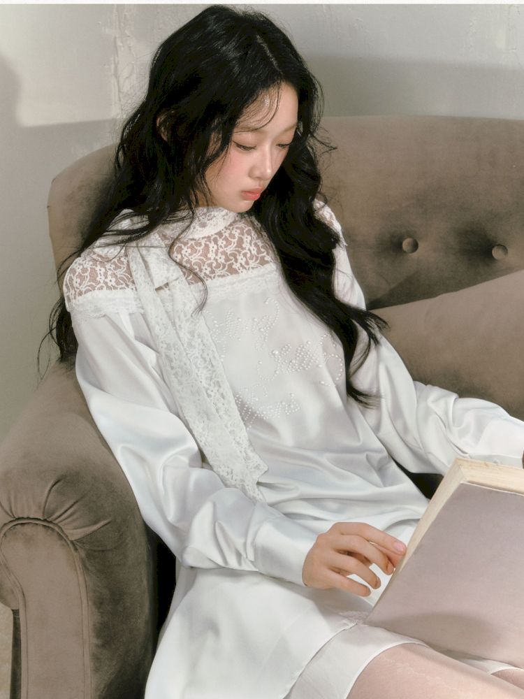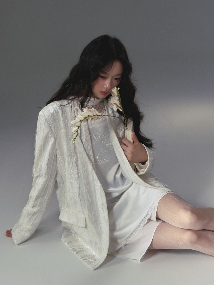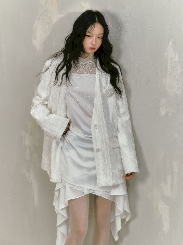 lace floating collar irregular hem dress