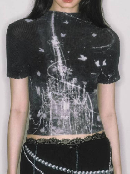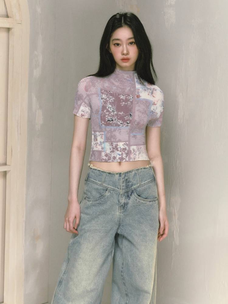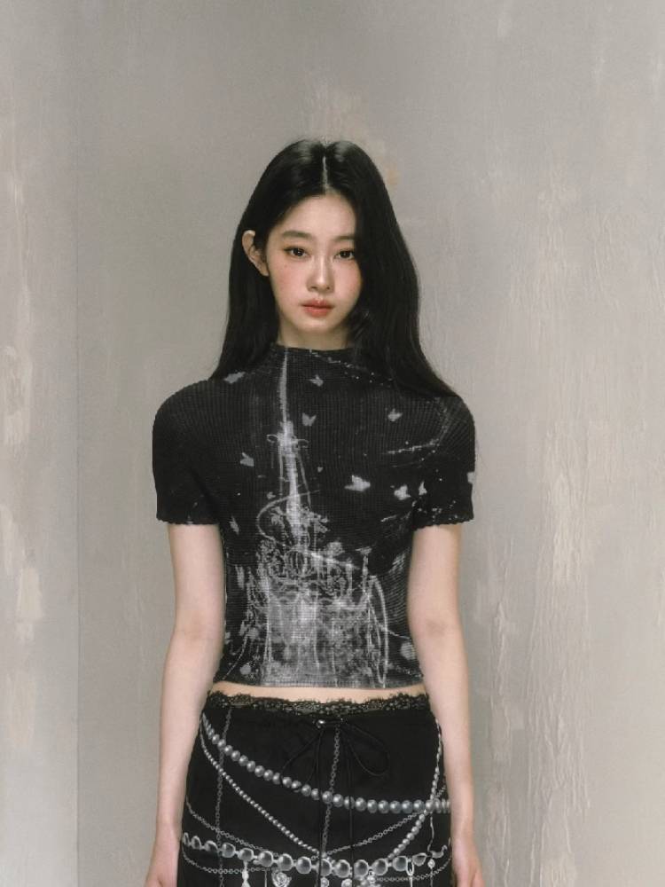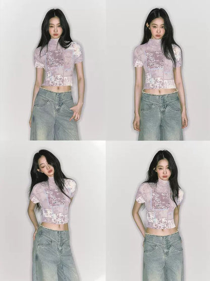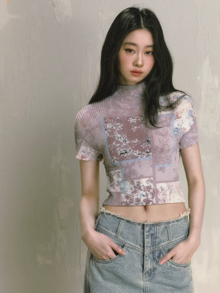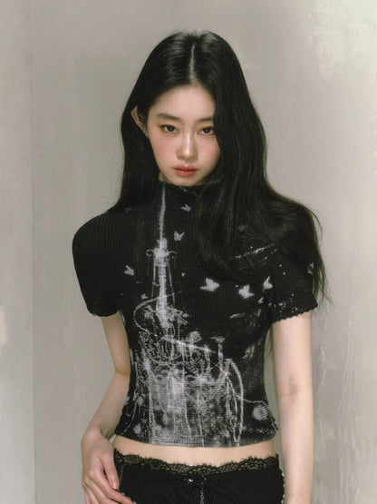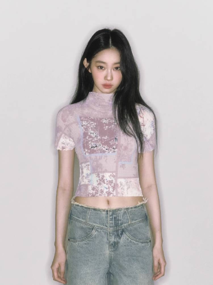 stretch half turtleneck short-sleeved t-shirt