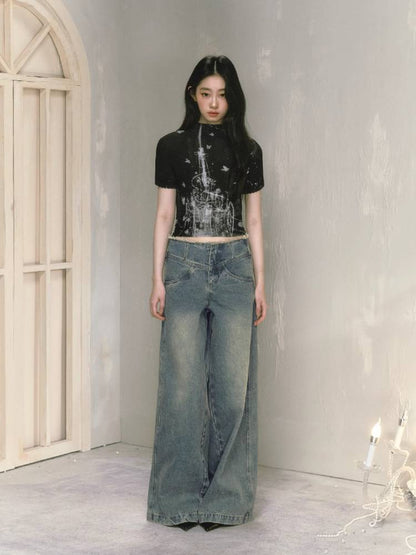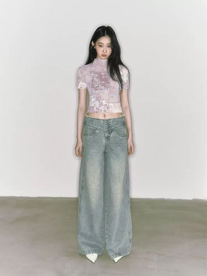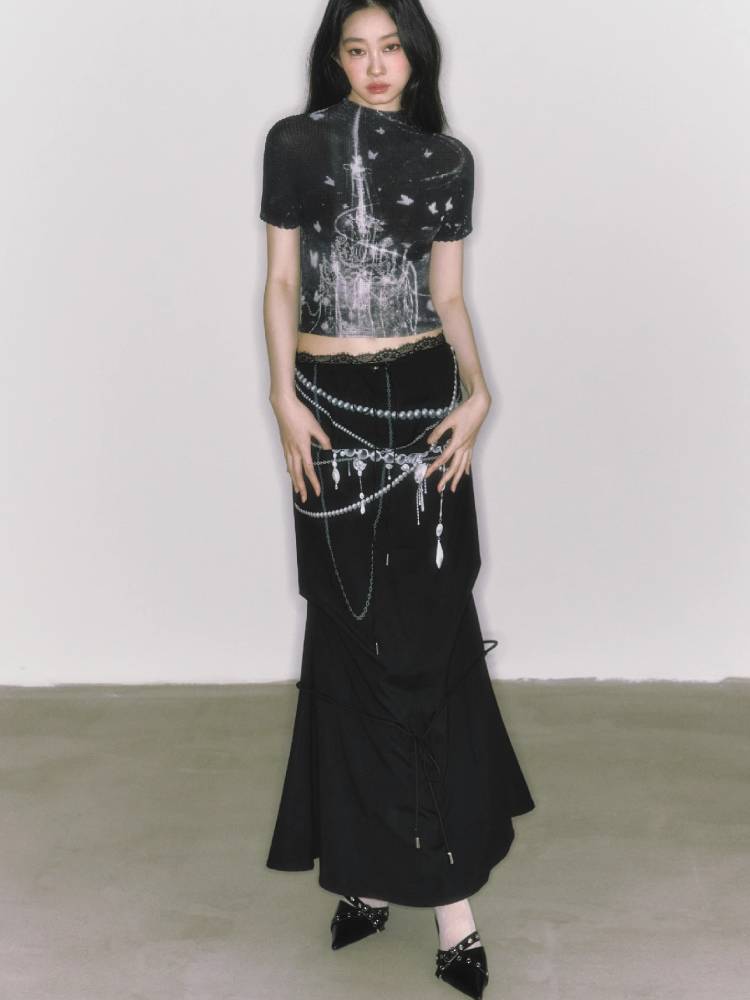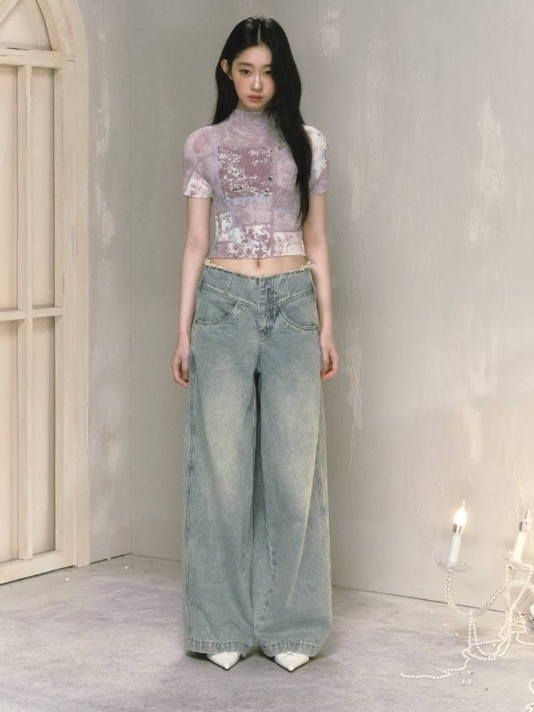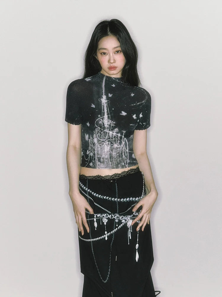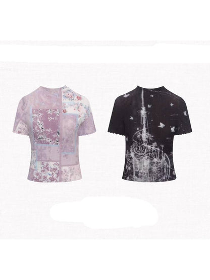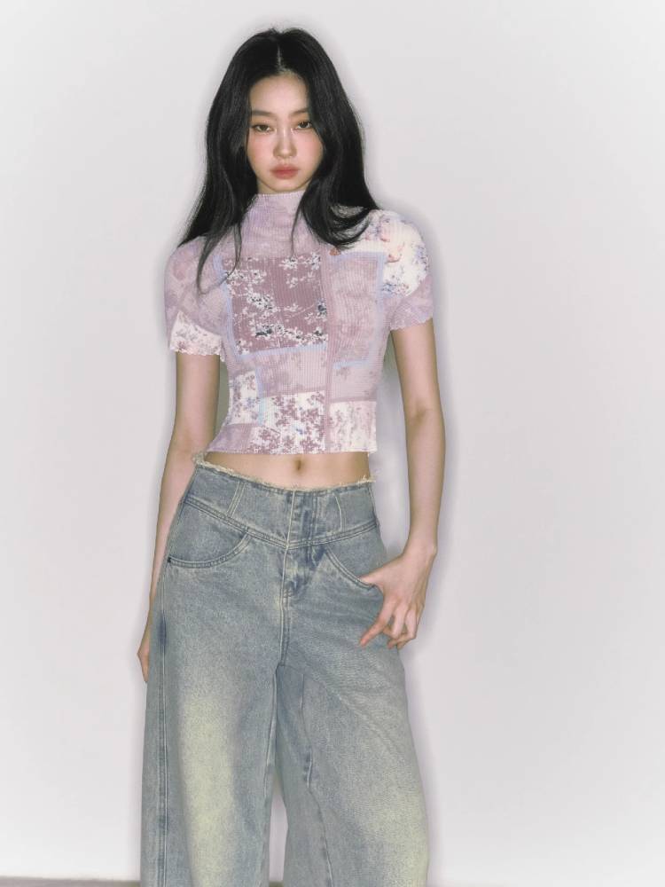 stretch half turtleneck short-sleeved t-shirt