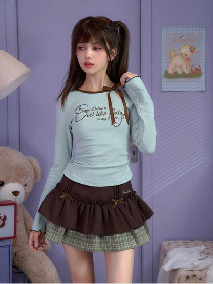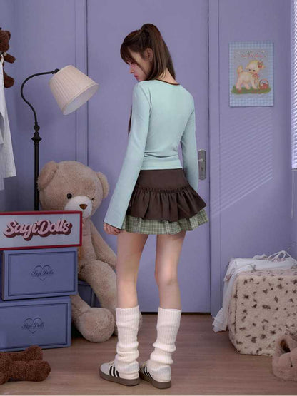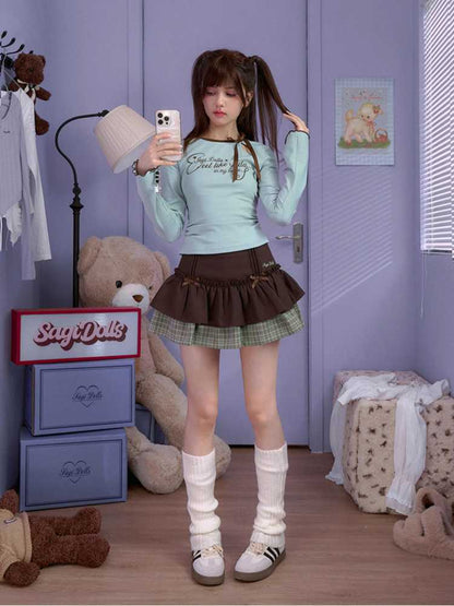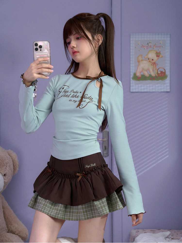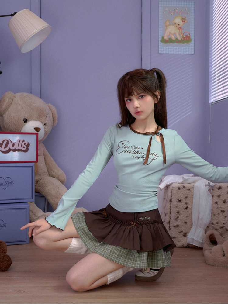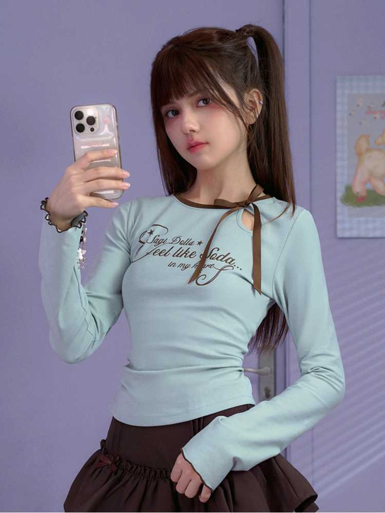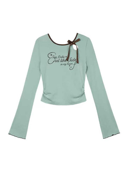 white green long-sleeved T-shirt