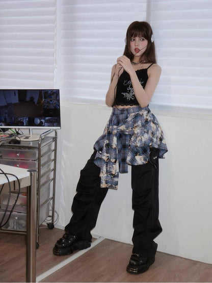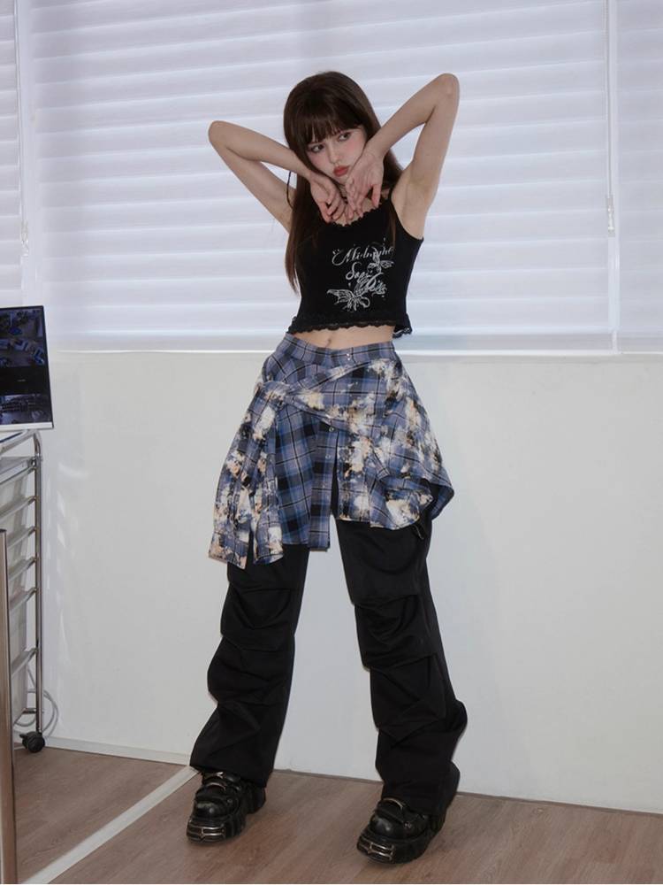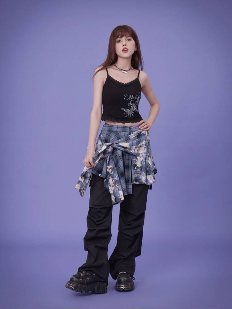 Burnt craft blue plaid shirt skirt