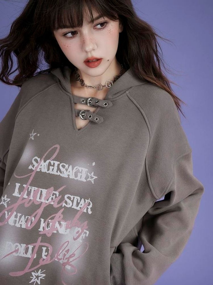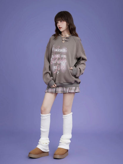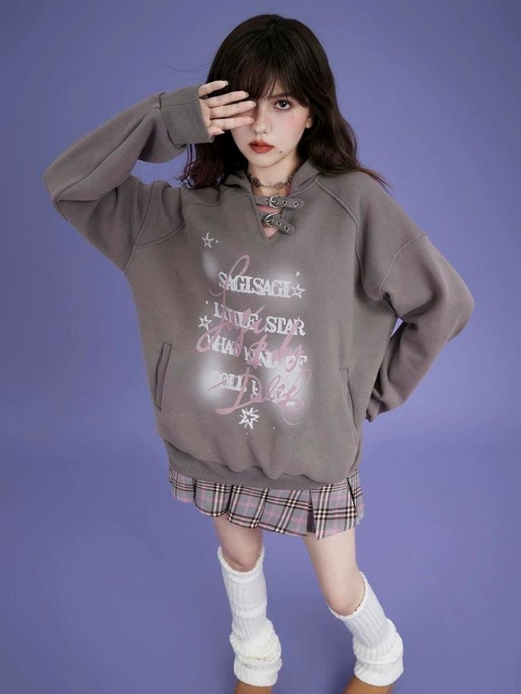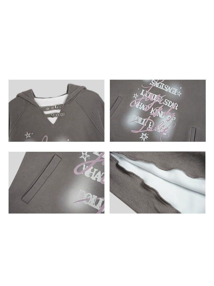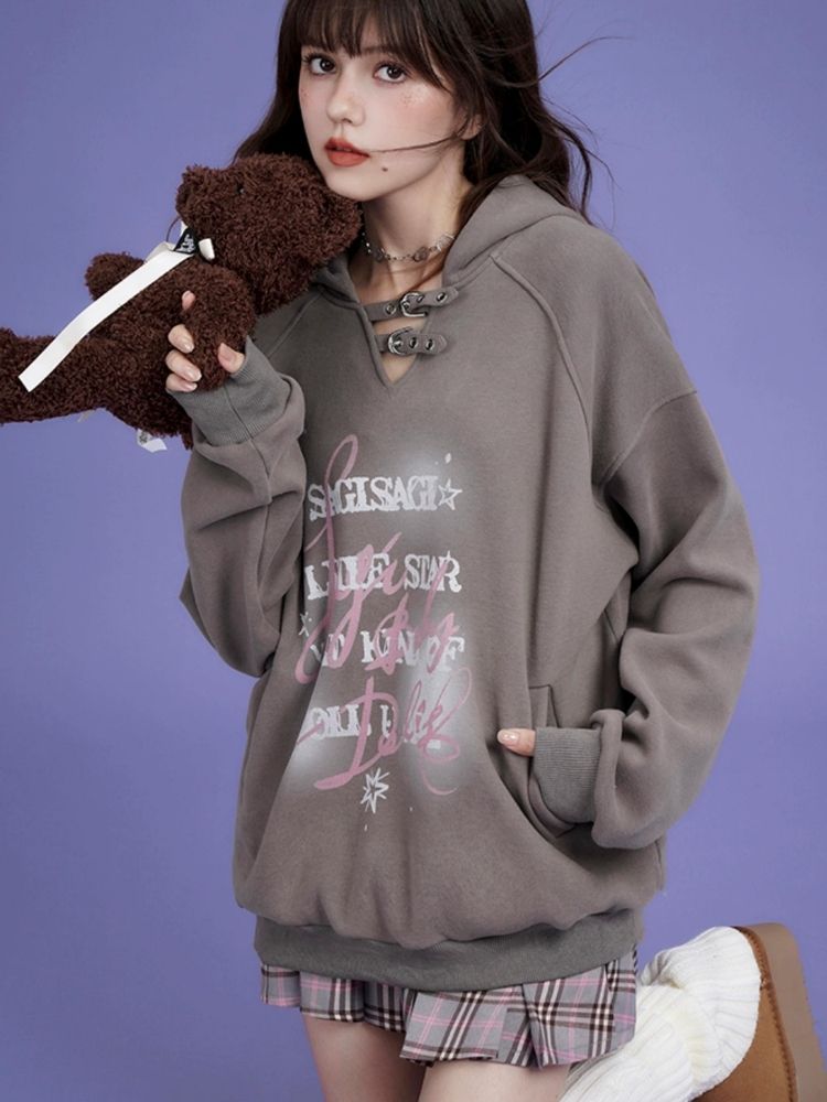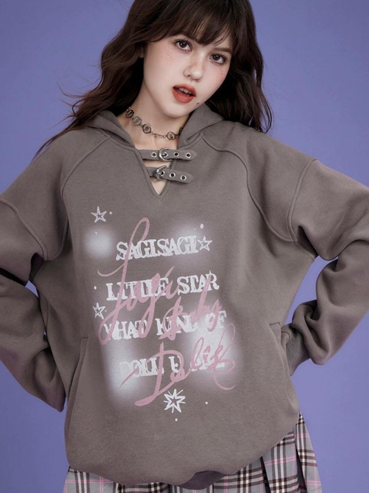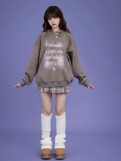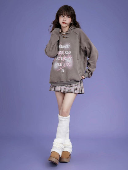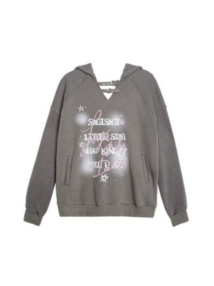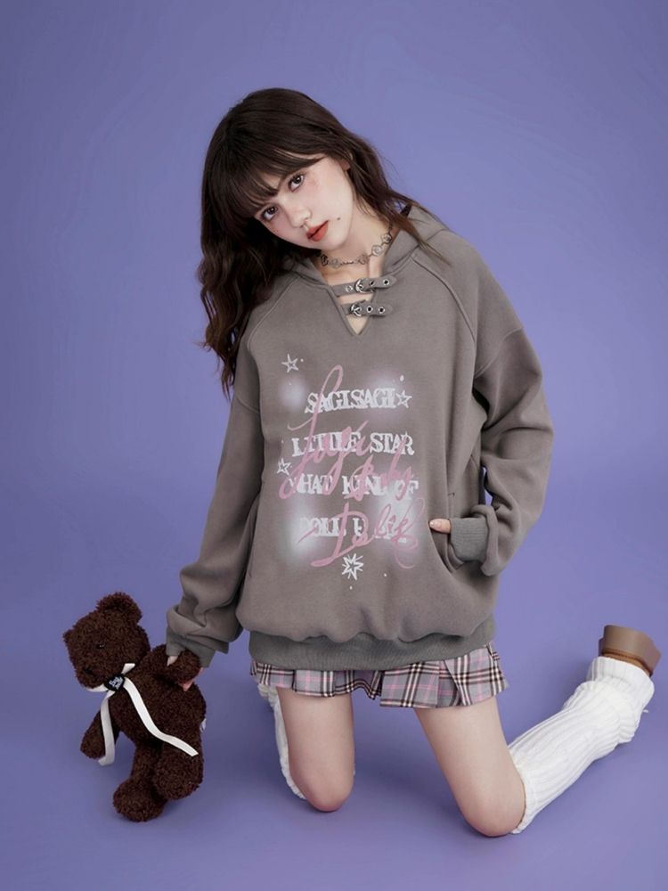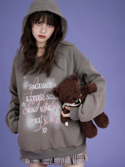 letter print pullover hooded sweatshirt