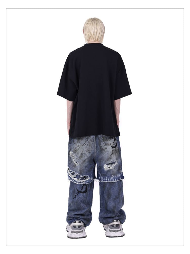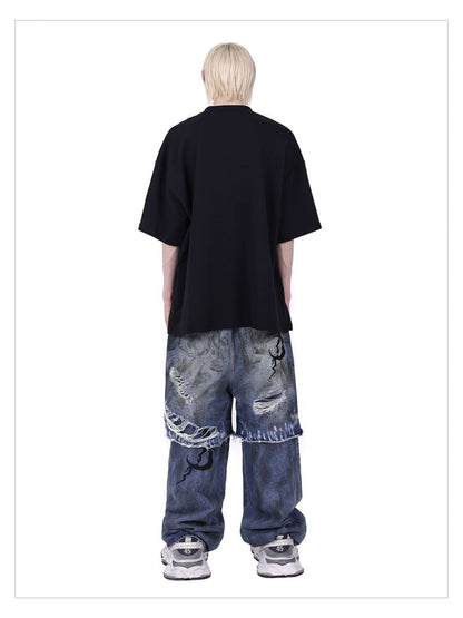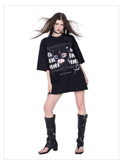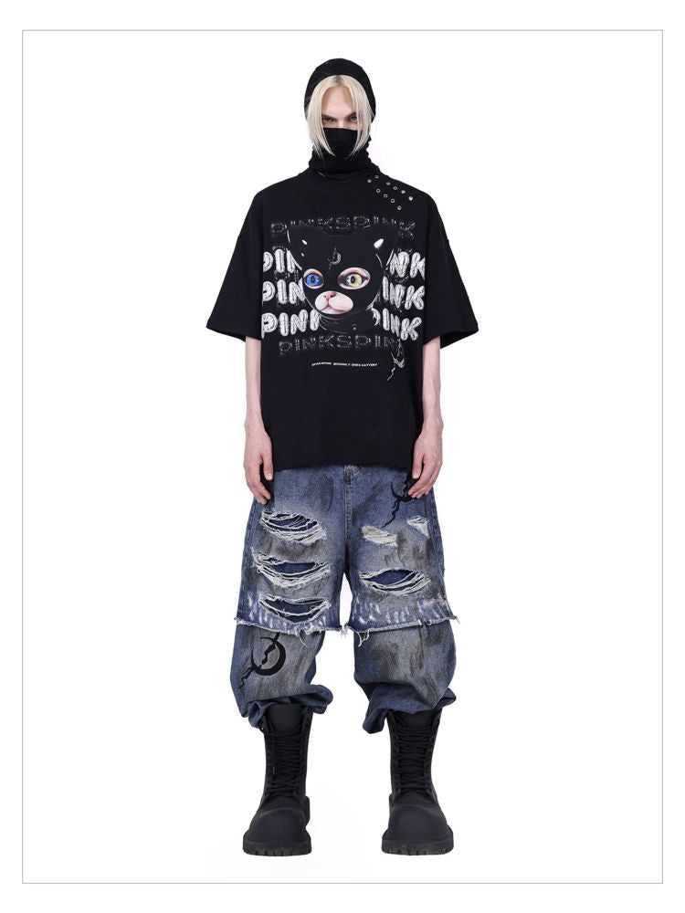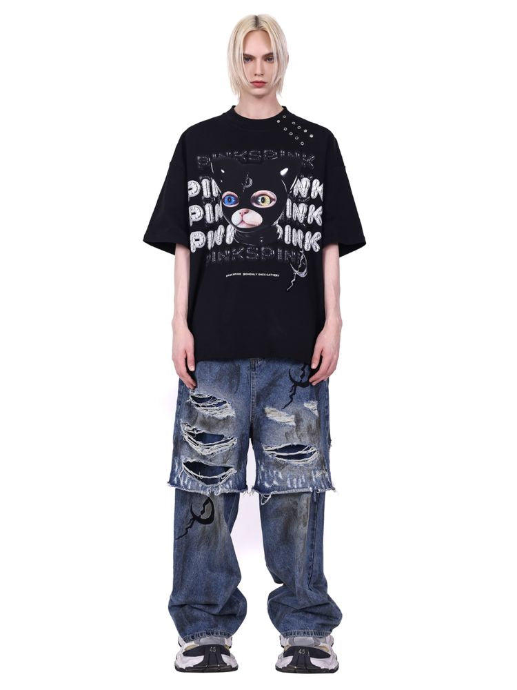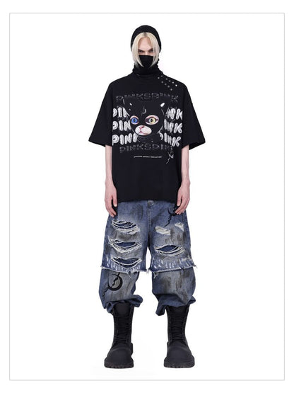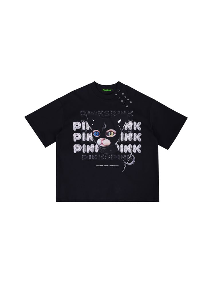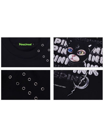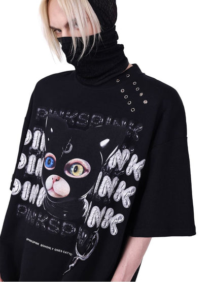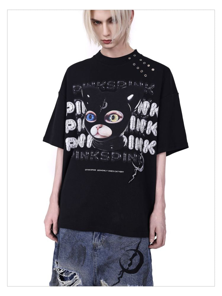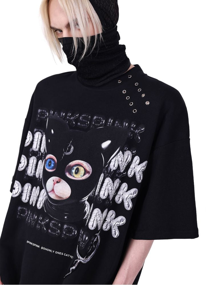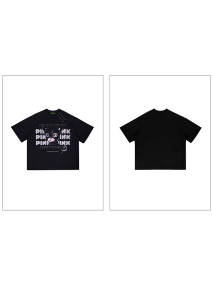 hood print loose genderless short sleeves