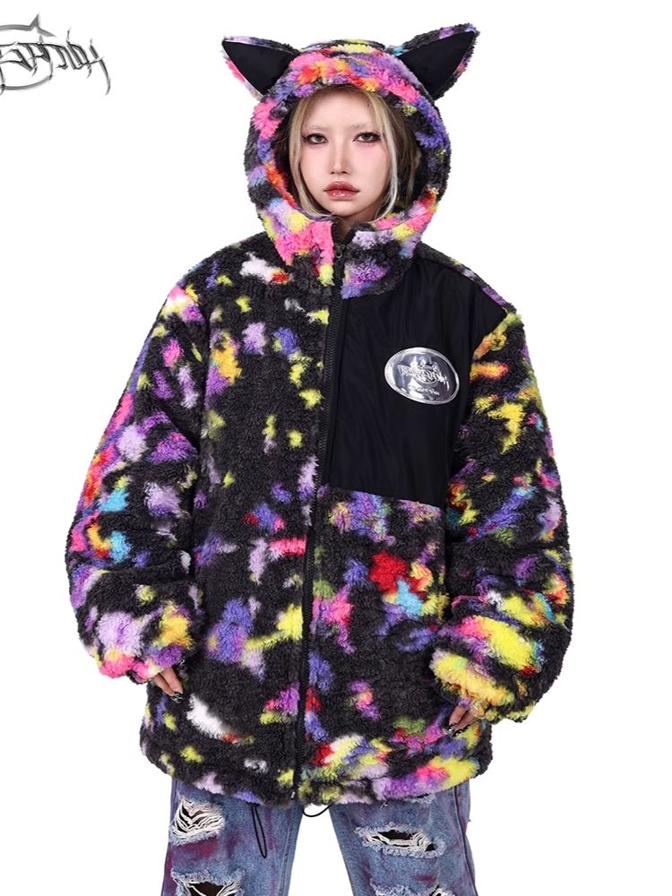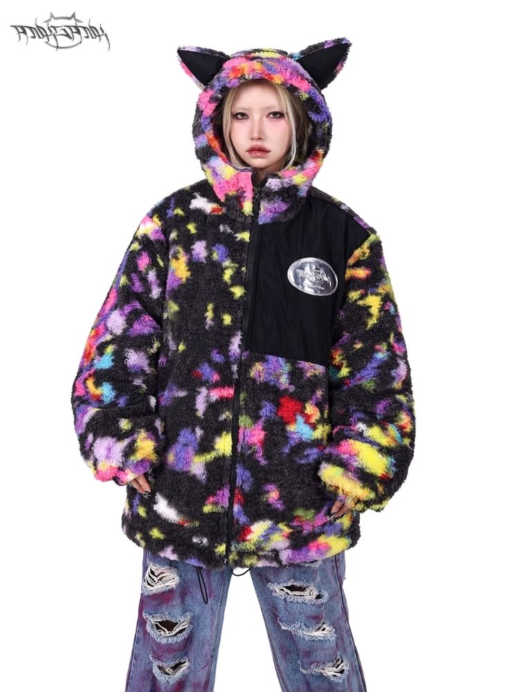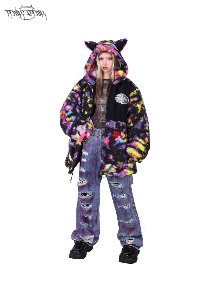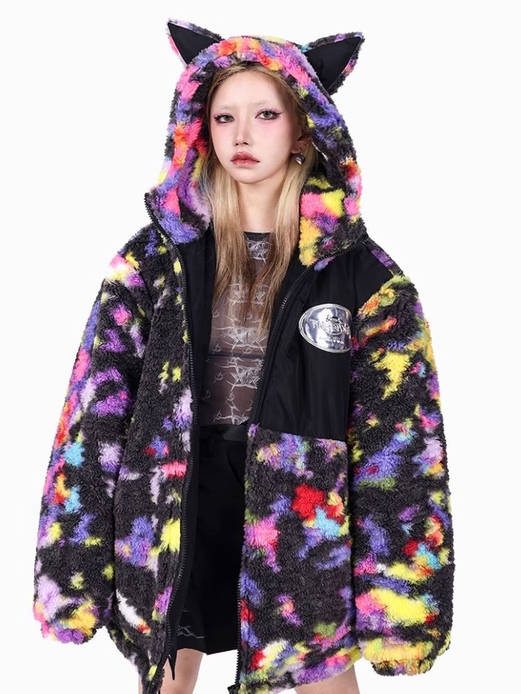 Rainbow Cat Ear Hooded Loose Jacket