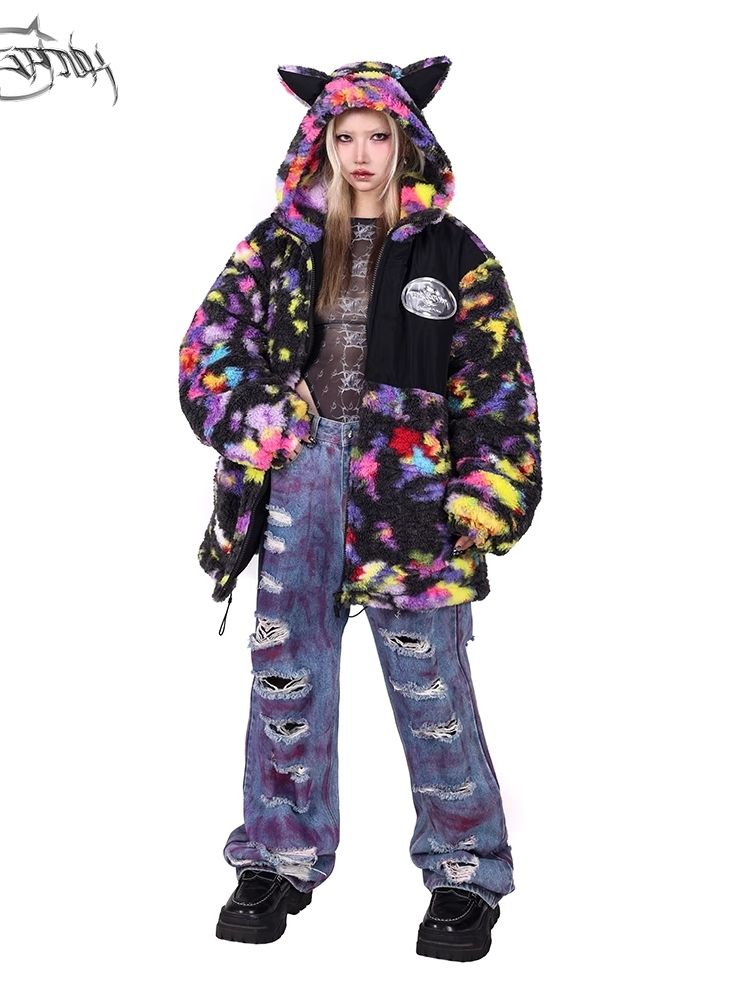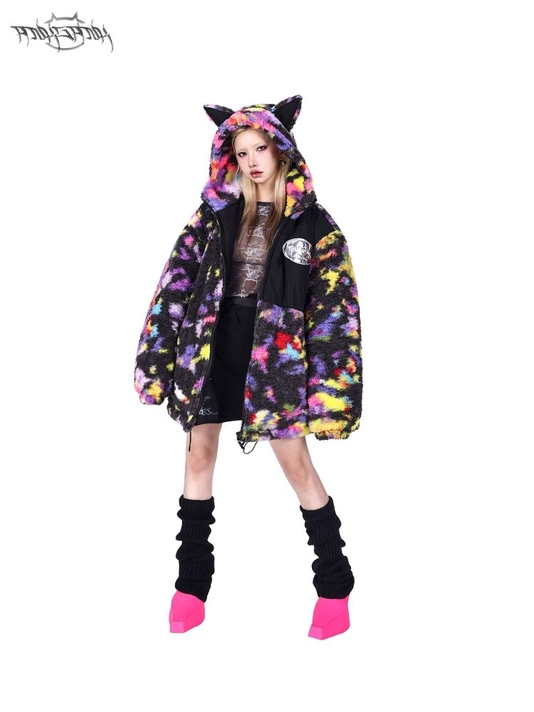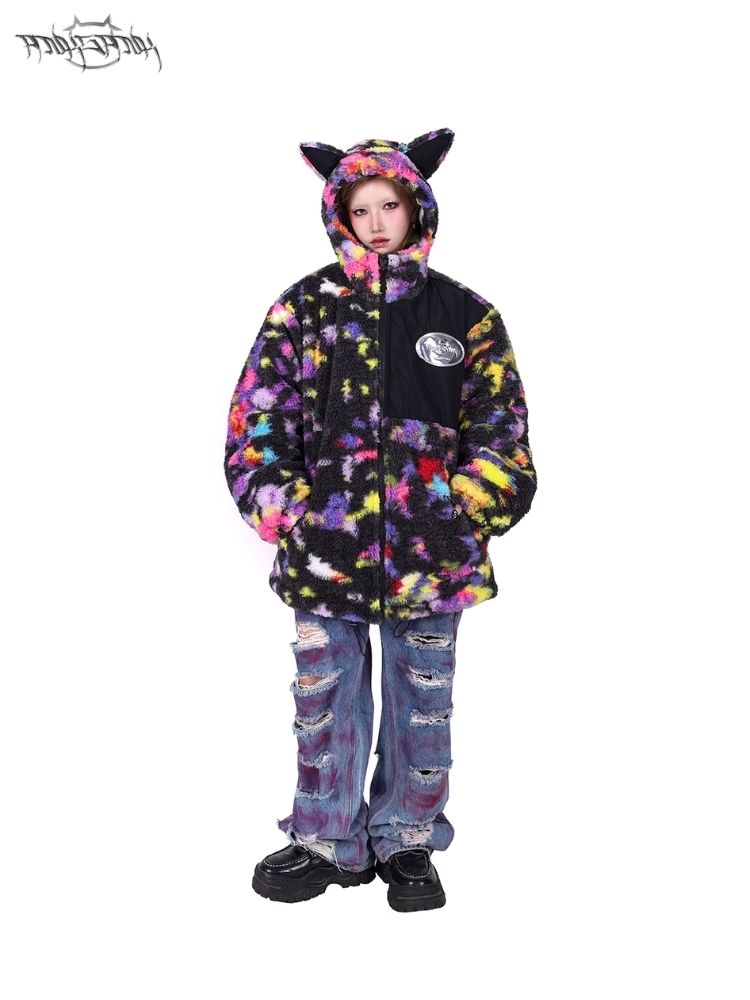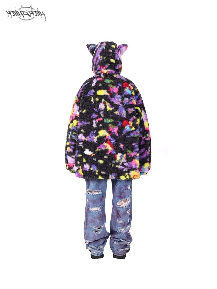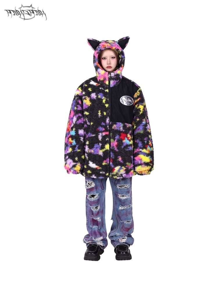 Rainbow Cat Ear Hooded Loose Jacket