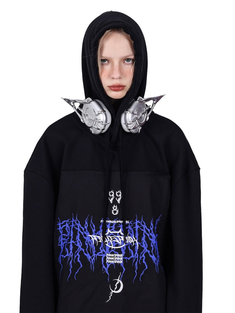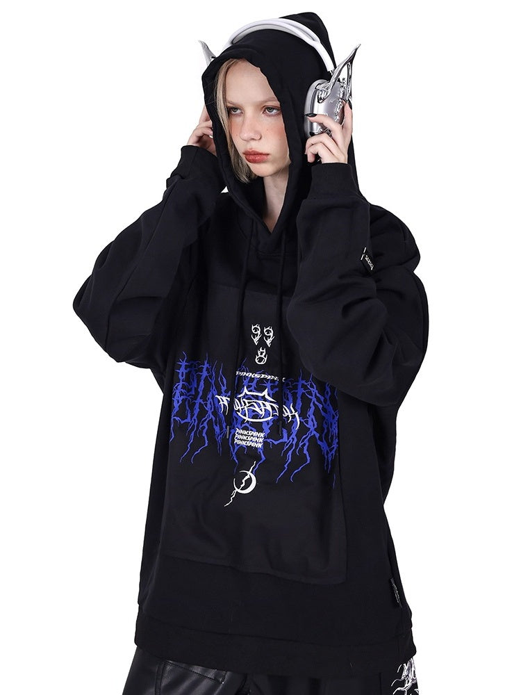 Patch Loose Gender-Free Hooded Jacket