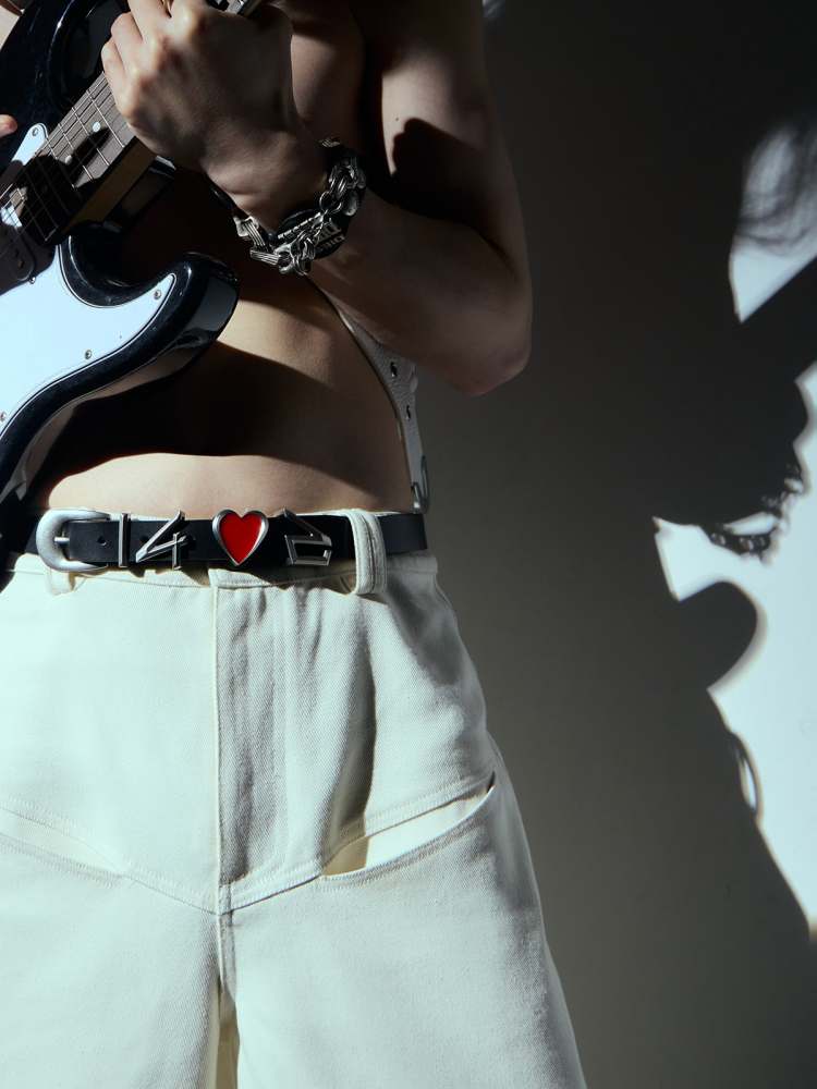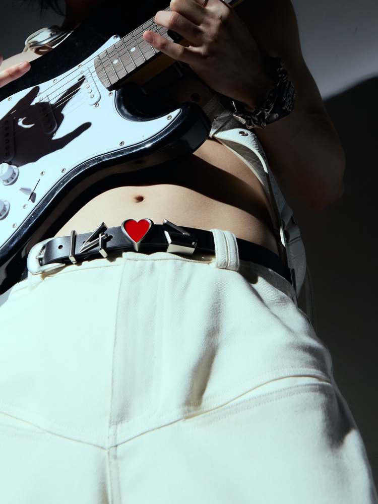Heart-shaped cowhide belt