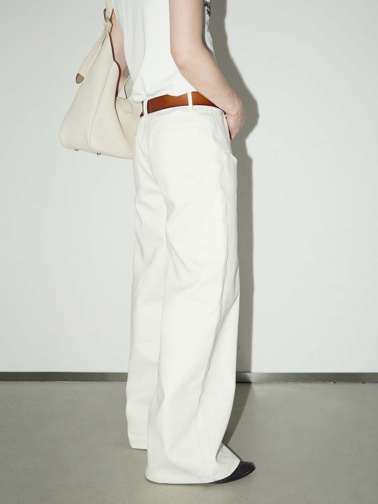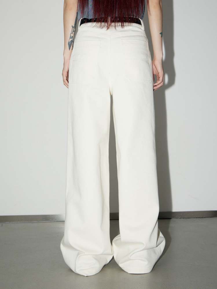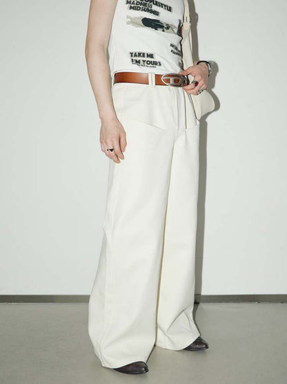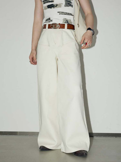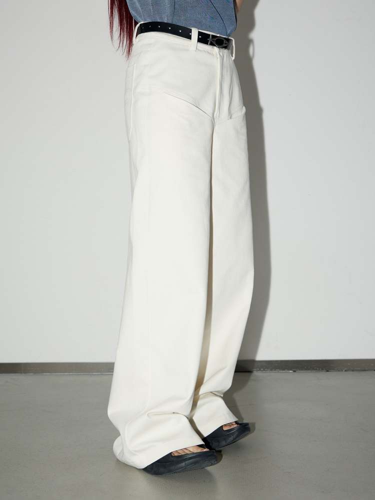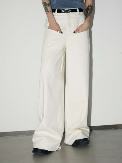front pocket basic white wide-leg pants