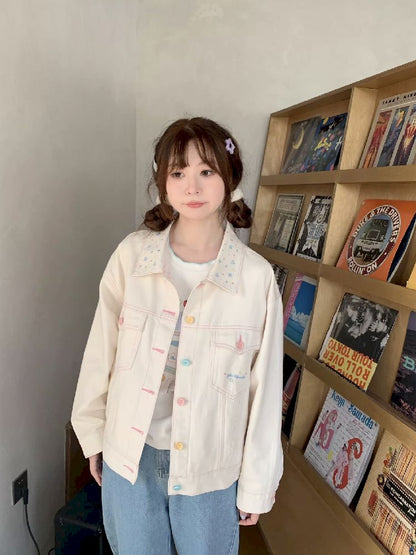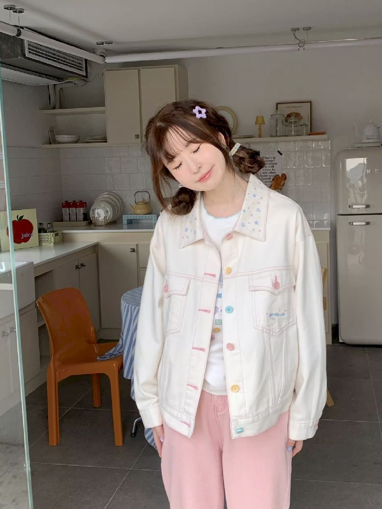 beige versatile girl denim jacket