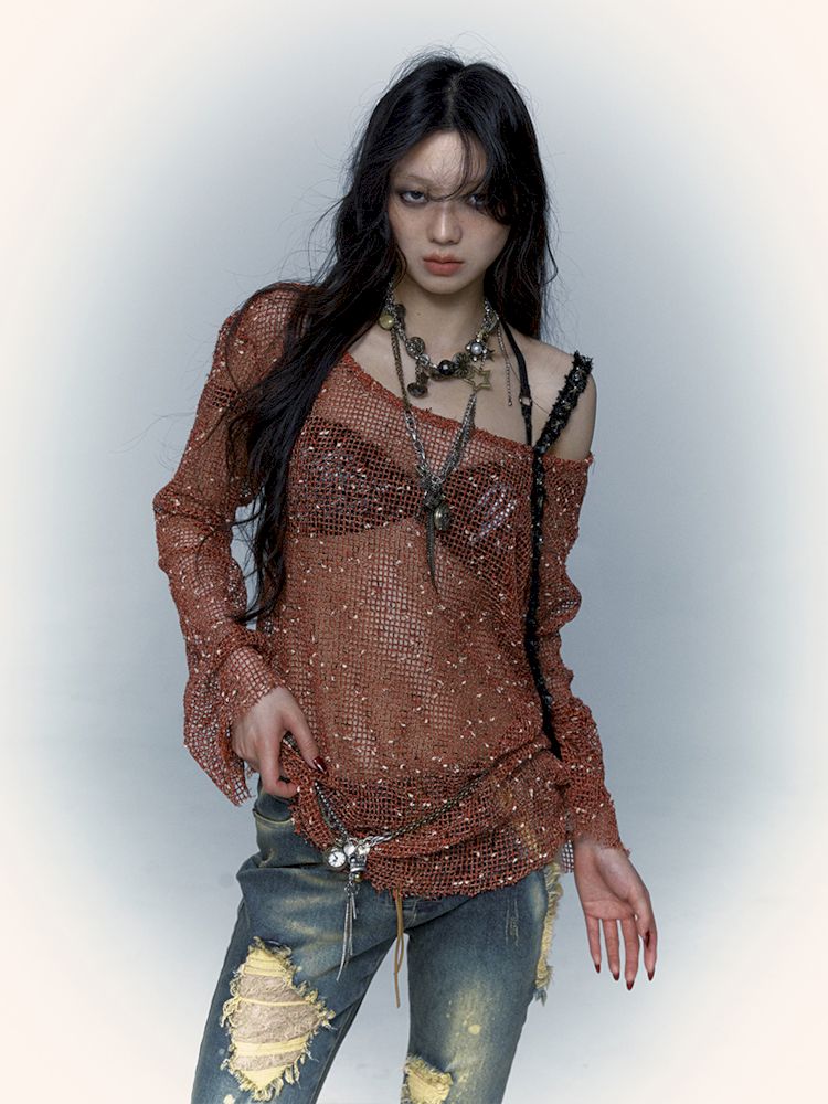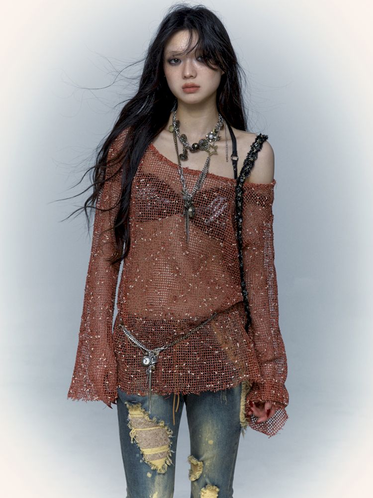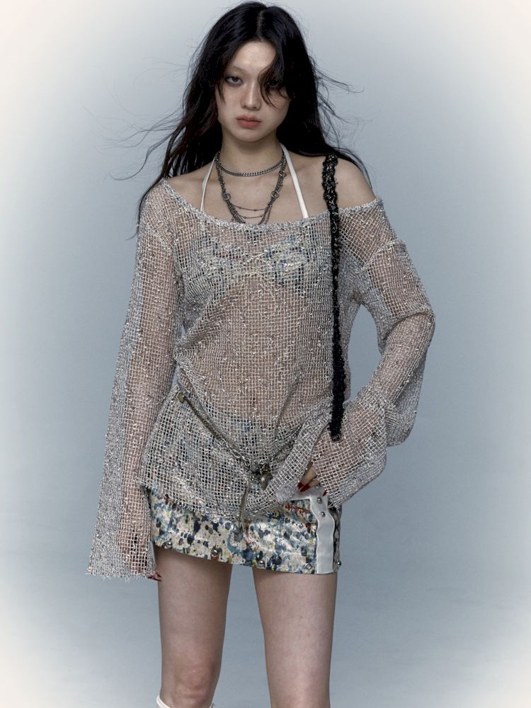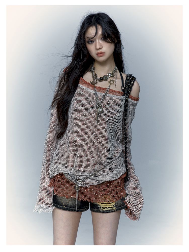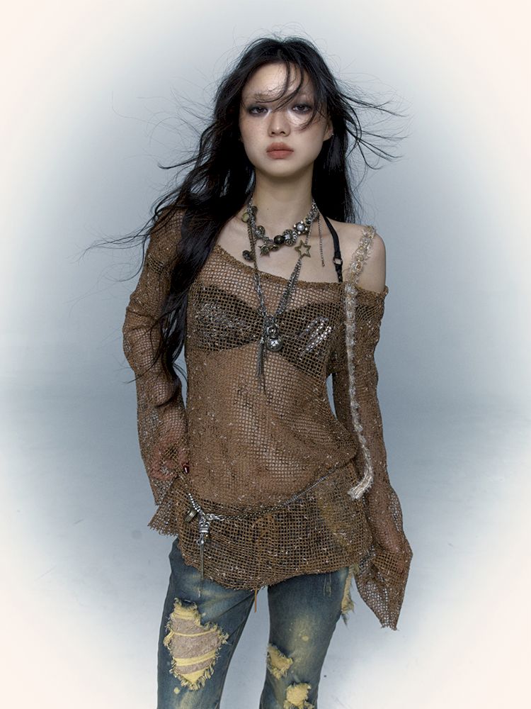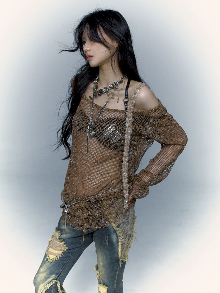 mesh hole hollow long T