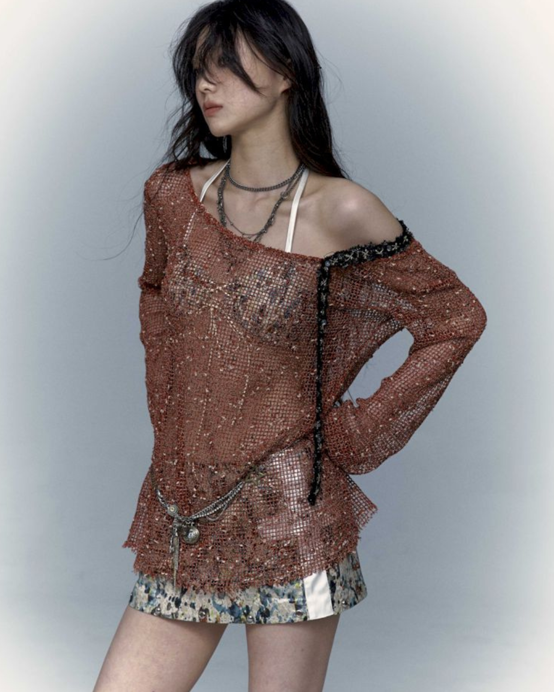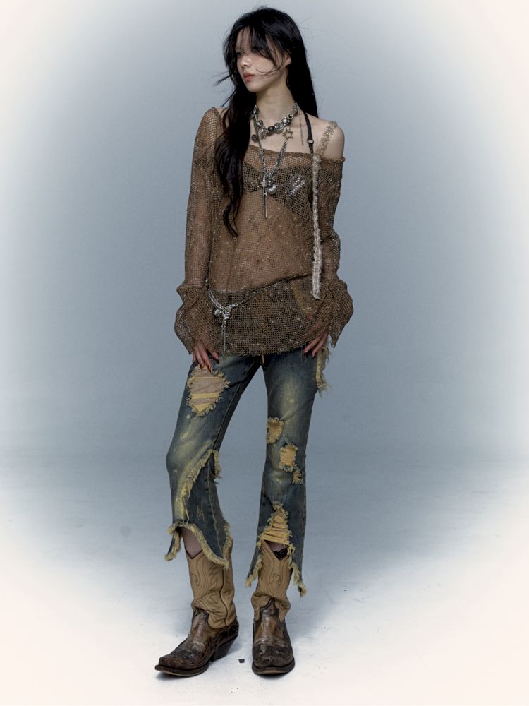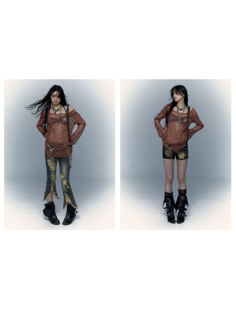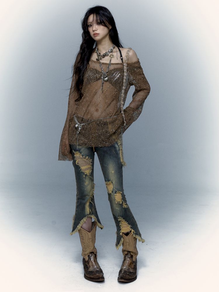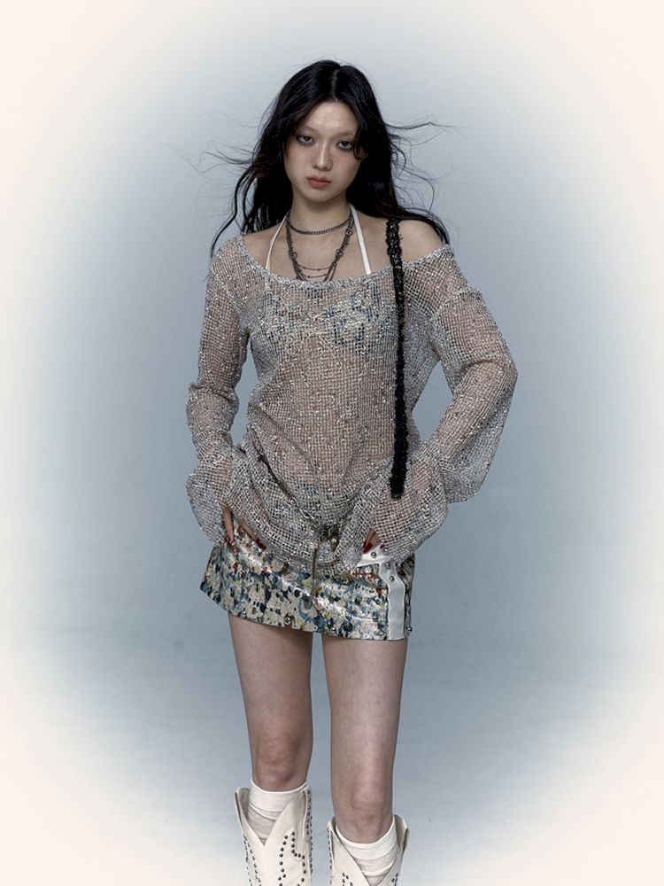mesh hole hollow long T