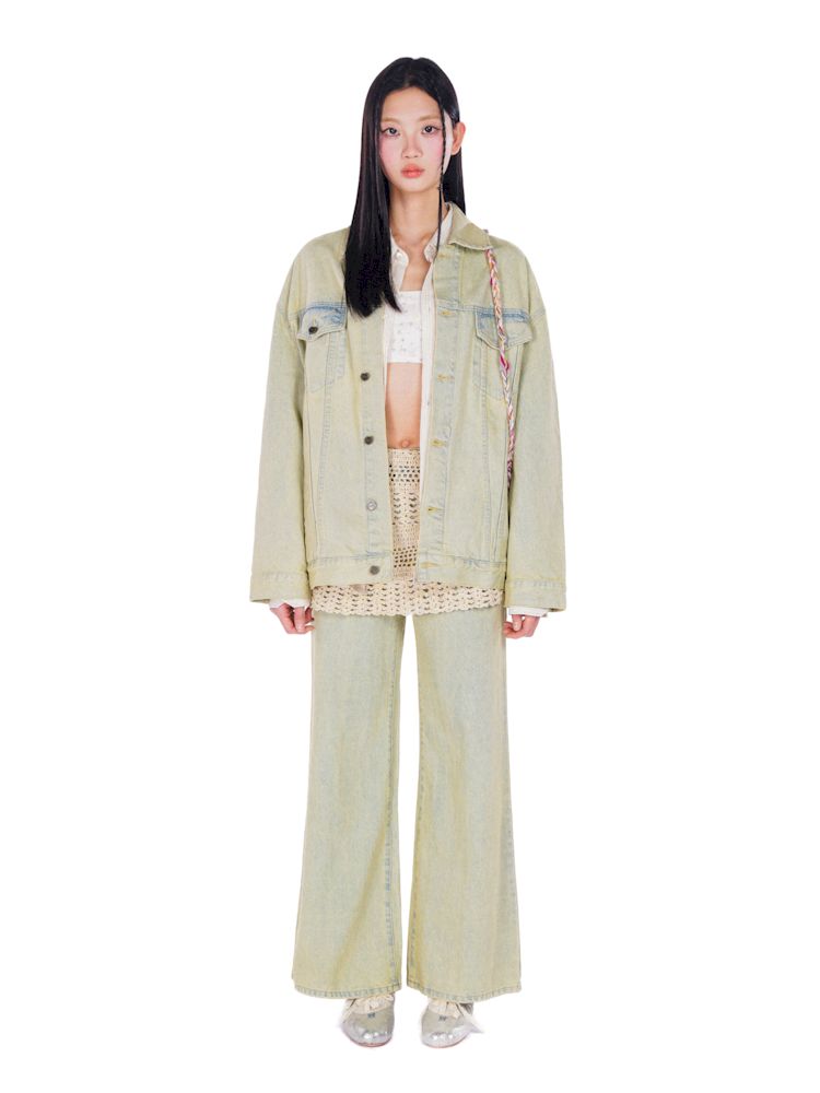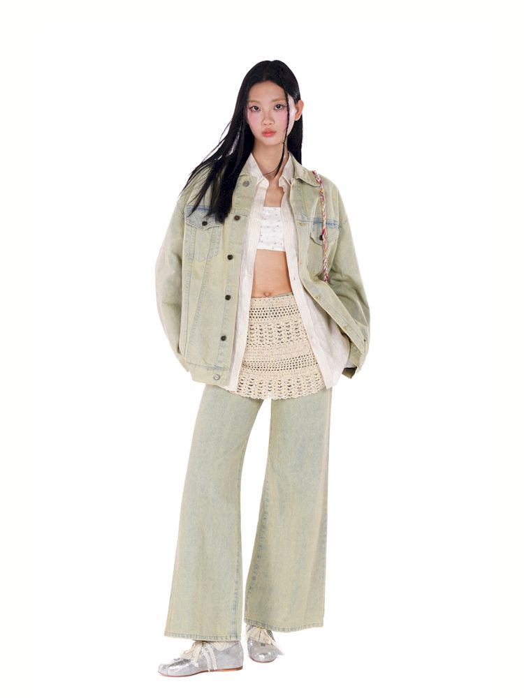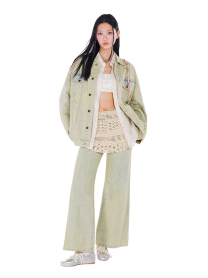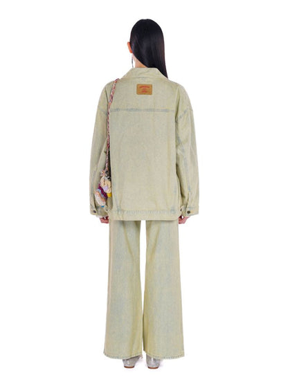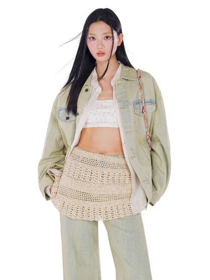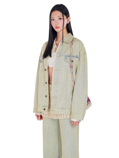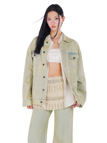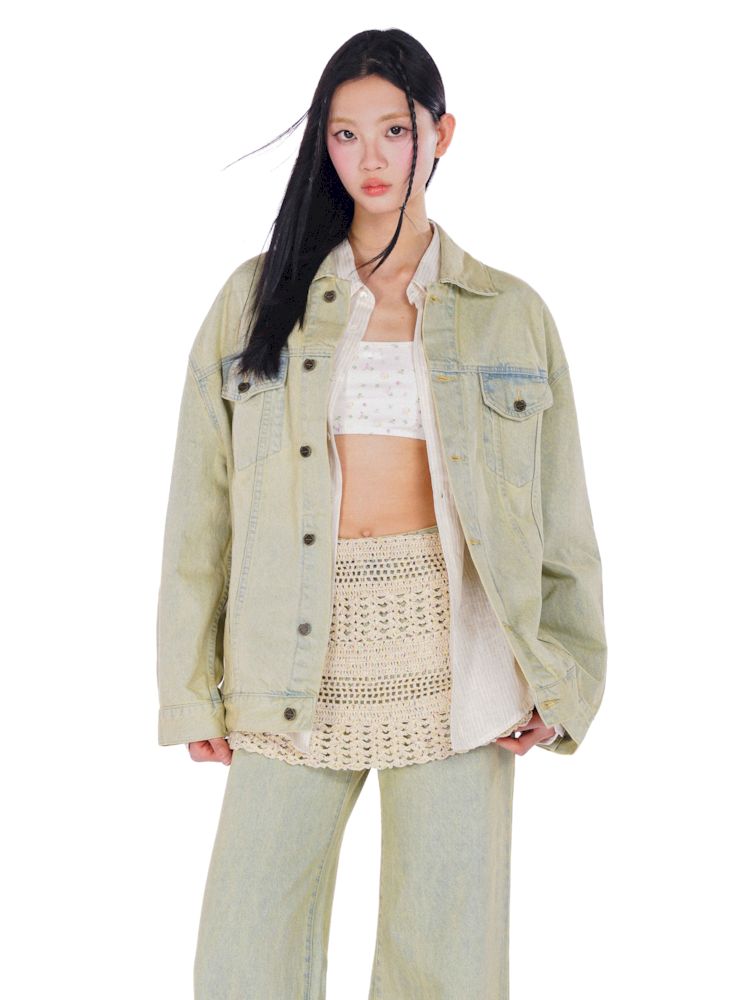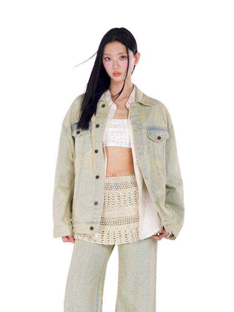 heavy wash carved hardware loose denim jacket