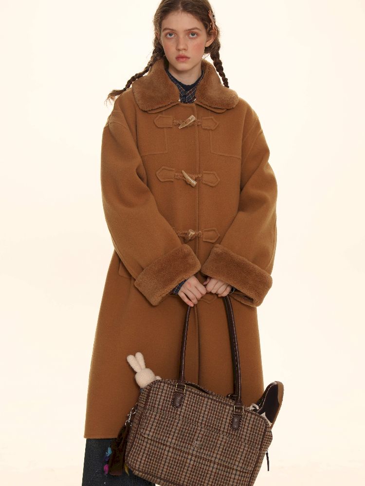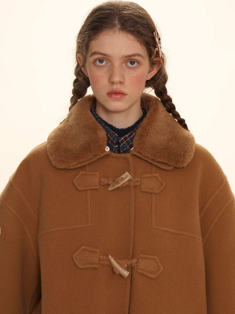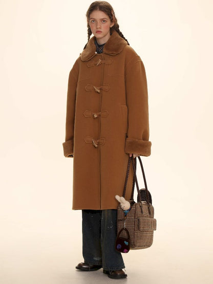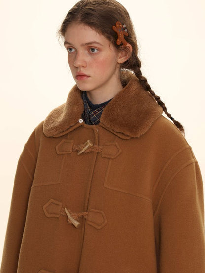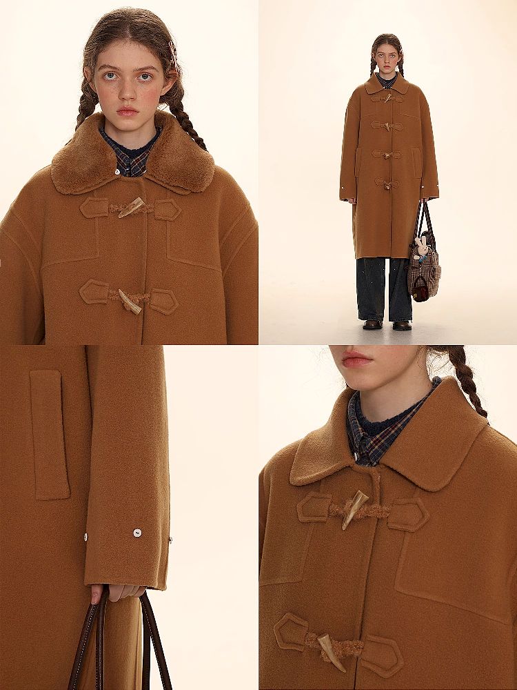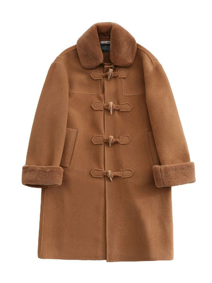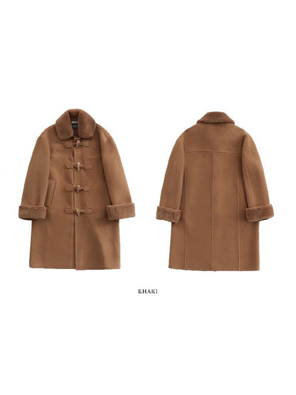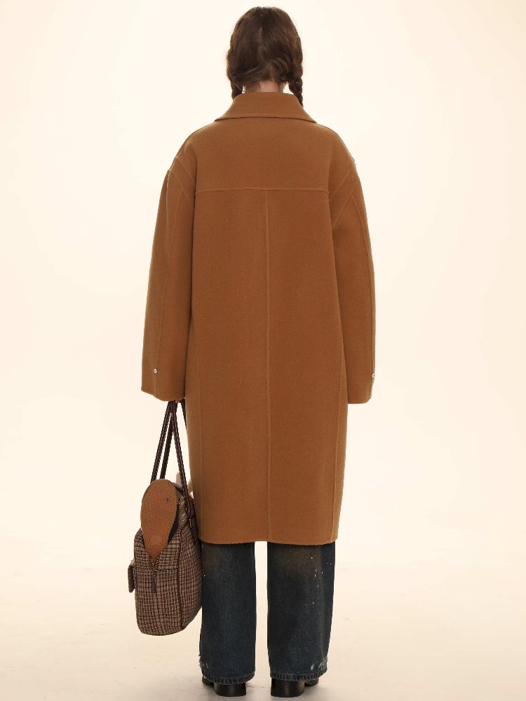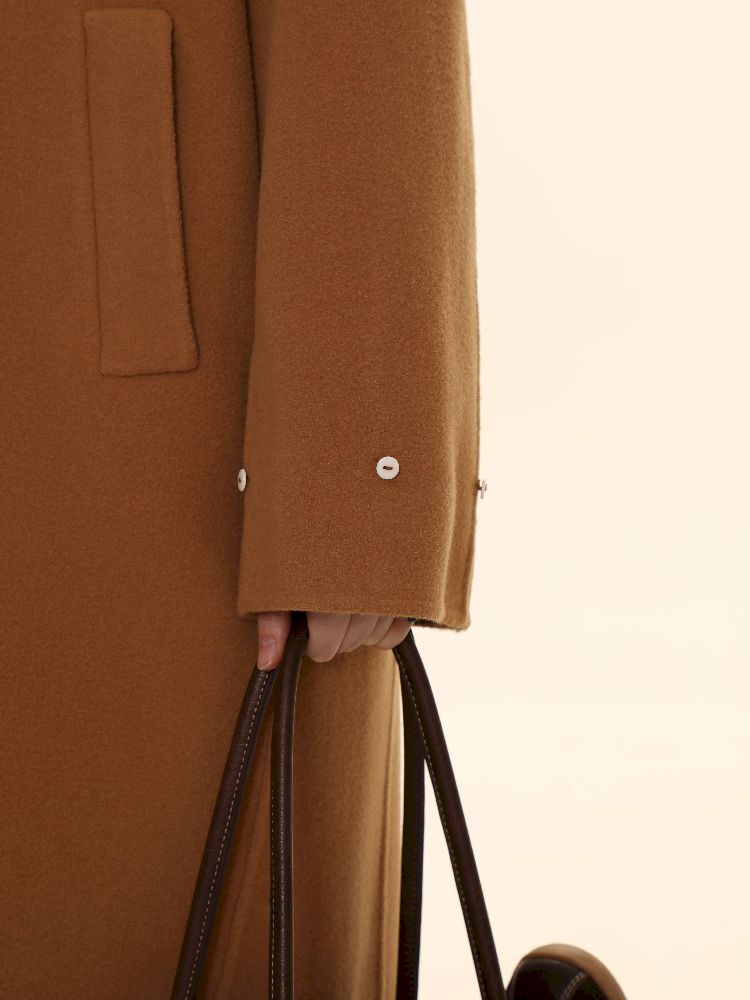 Elegant Brown Removable Lapel Wool Coat