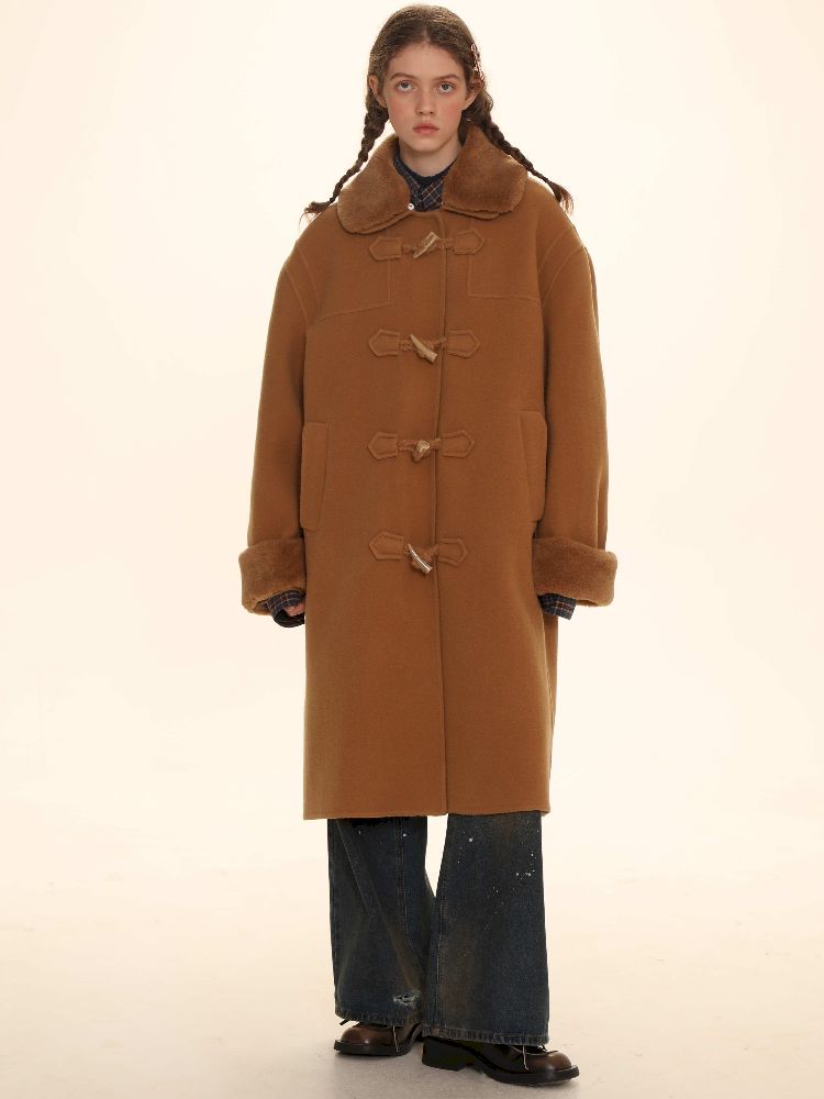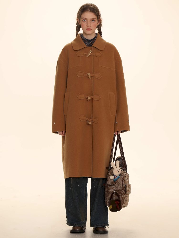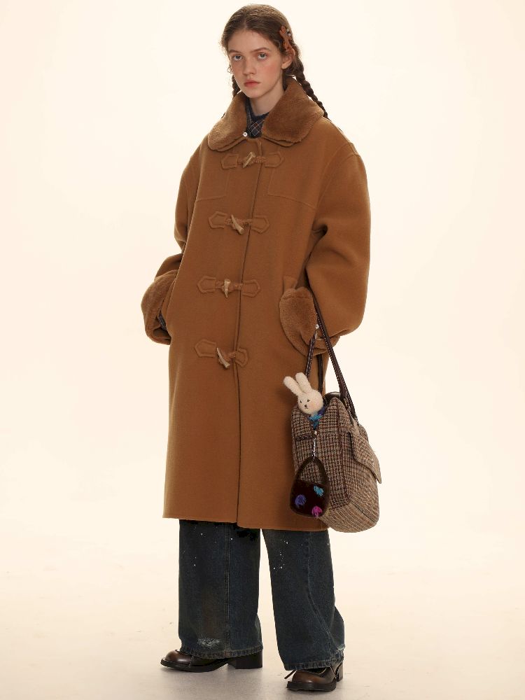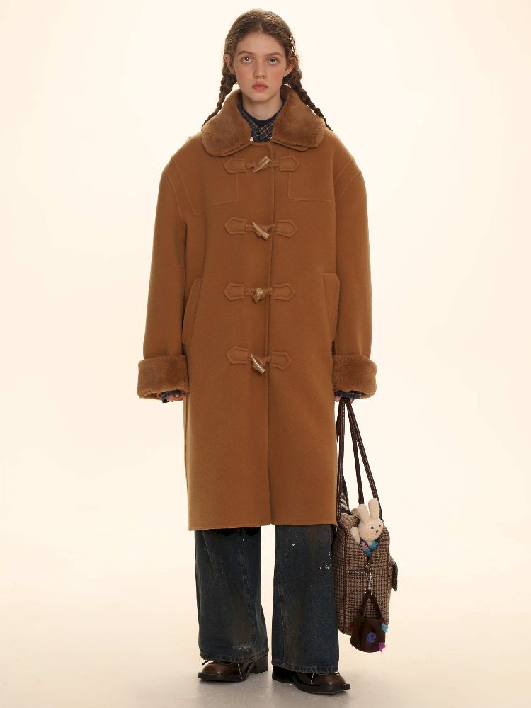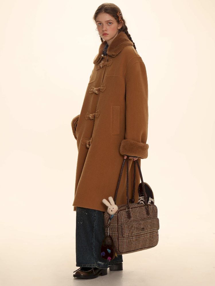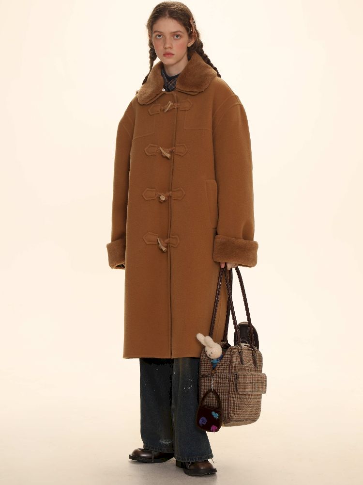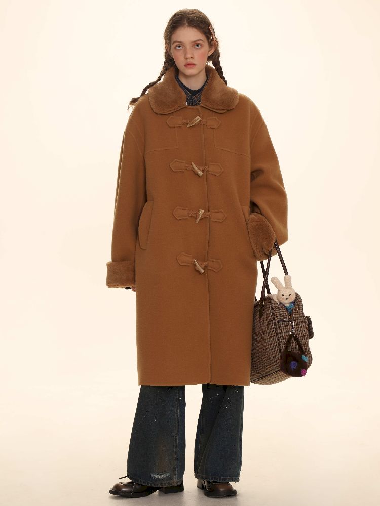 Elegant Brown Removable Lapel Wool Coat